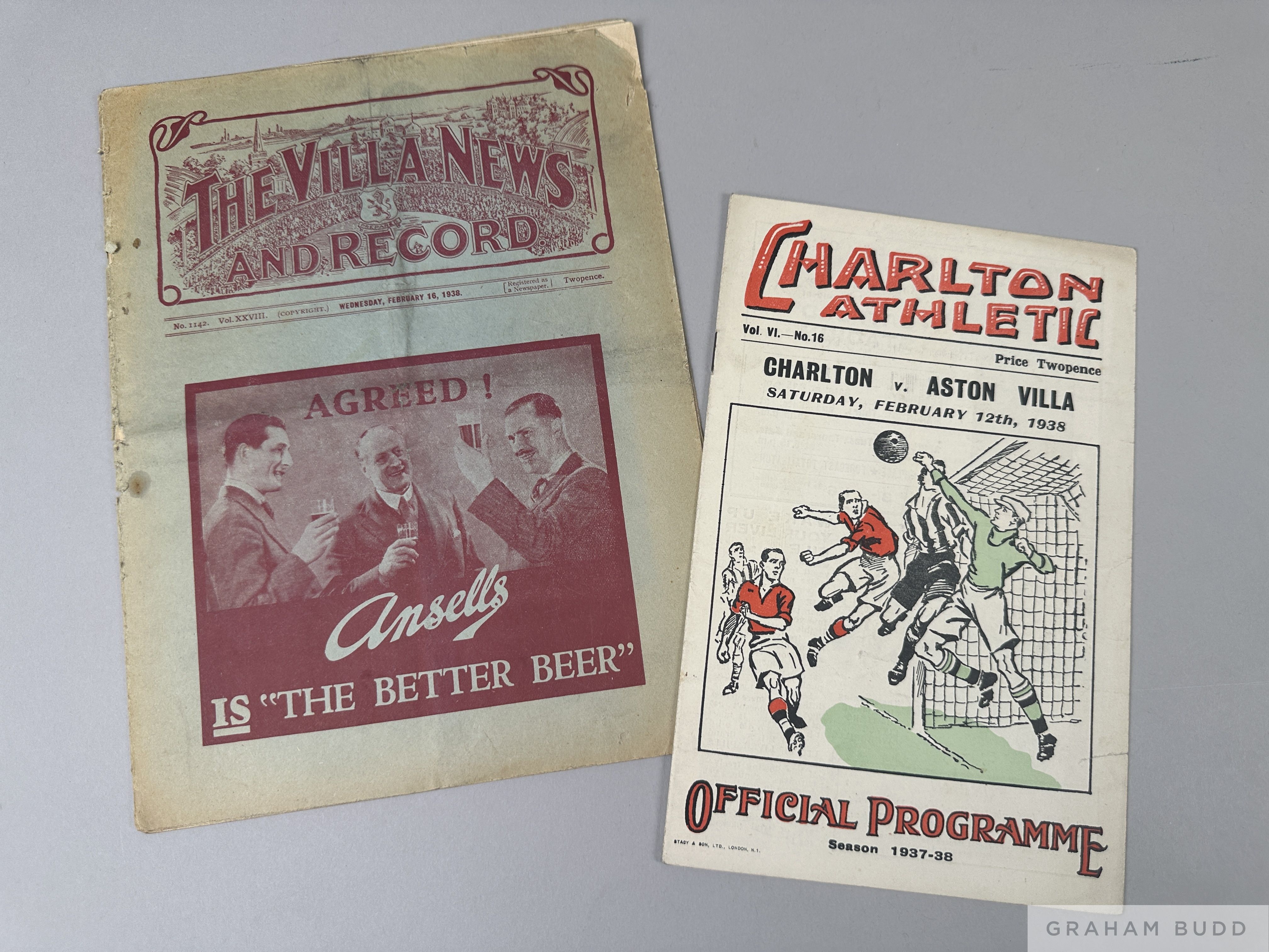 Charlton Athletic v. Aston Villa, F.A.Cup final match programme, 12th February 1938 record gate for Charlton and Aston Villa v. Charlton Athletic F.A. Cup final replay match programmes, 16th February 1938, (2)