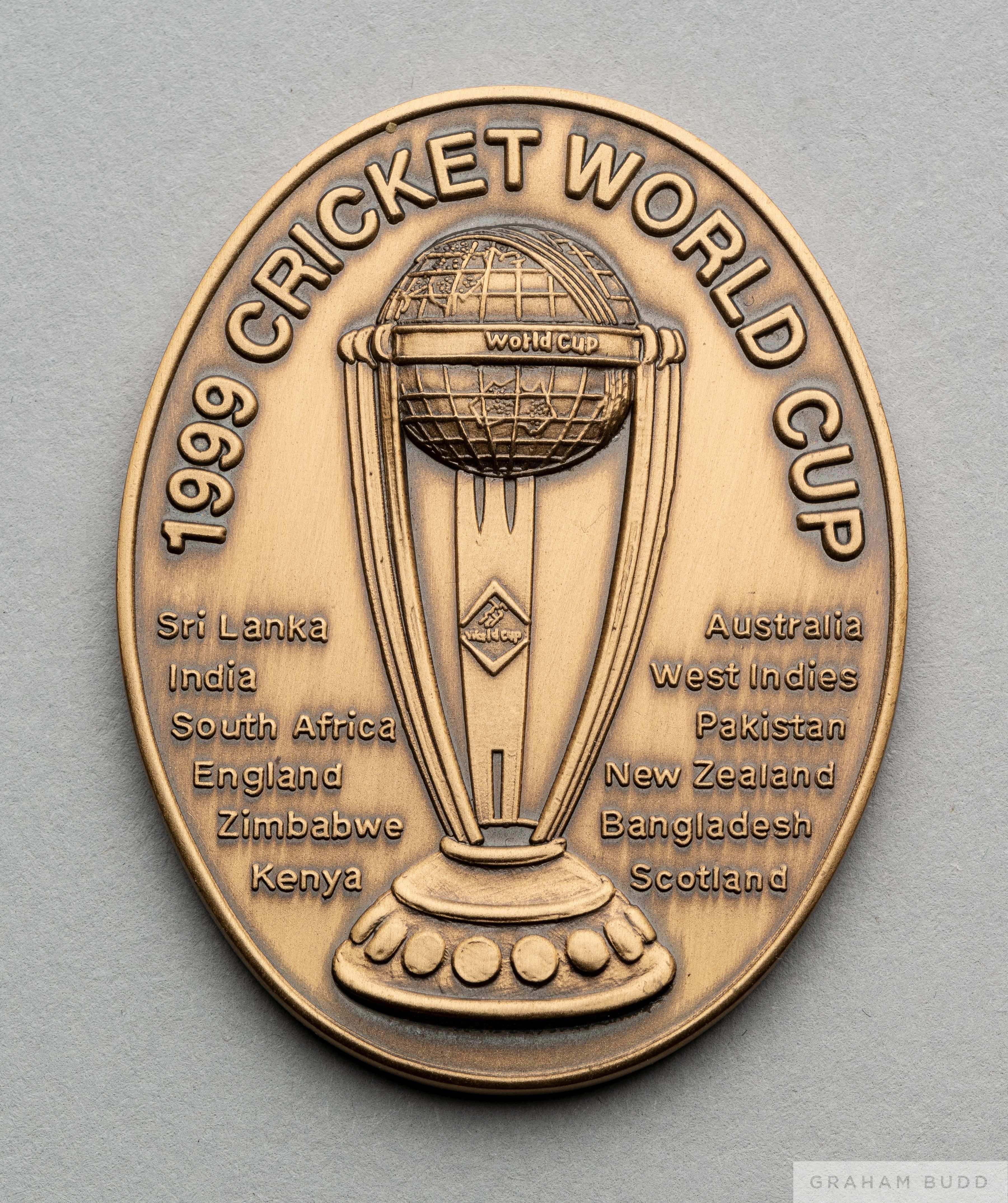 David Lloyd bronze 1999 Cricket World Cup medallion the obverse inscribed 1999 CRICKET WORLD CUP and listing the nations participating, the reverse i