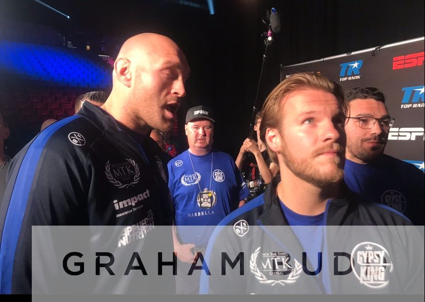 Tyson Fury navy & blue pre-fight tracksuit worn for the Deontay Wilder I fight held at Staples Center, Los Angeles,1st December 2018, Finden Hales tw