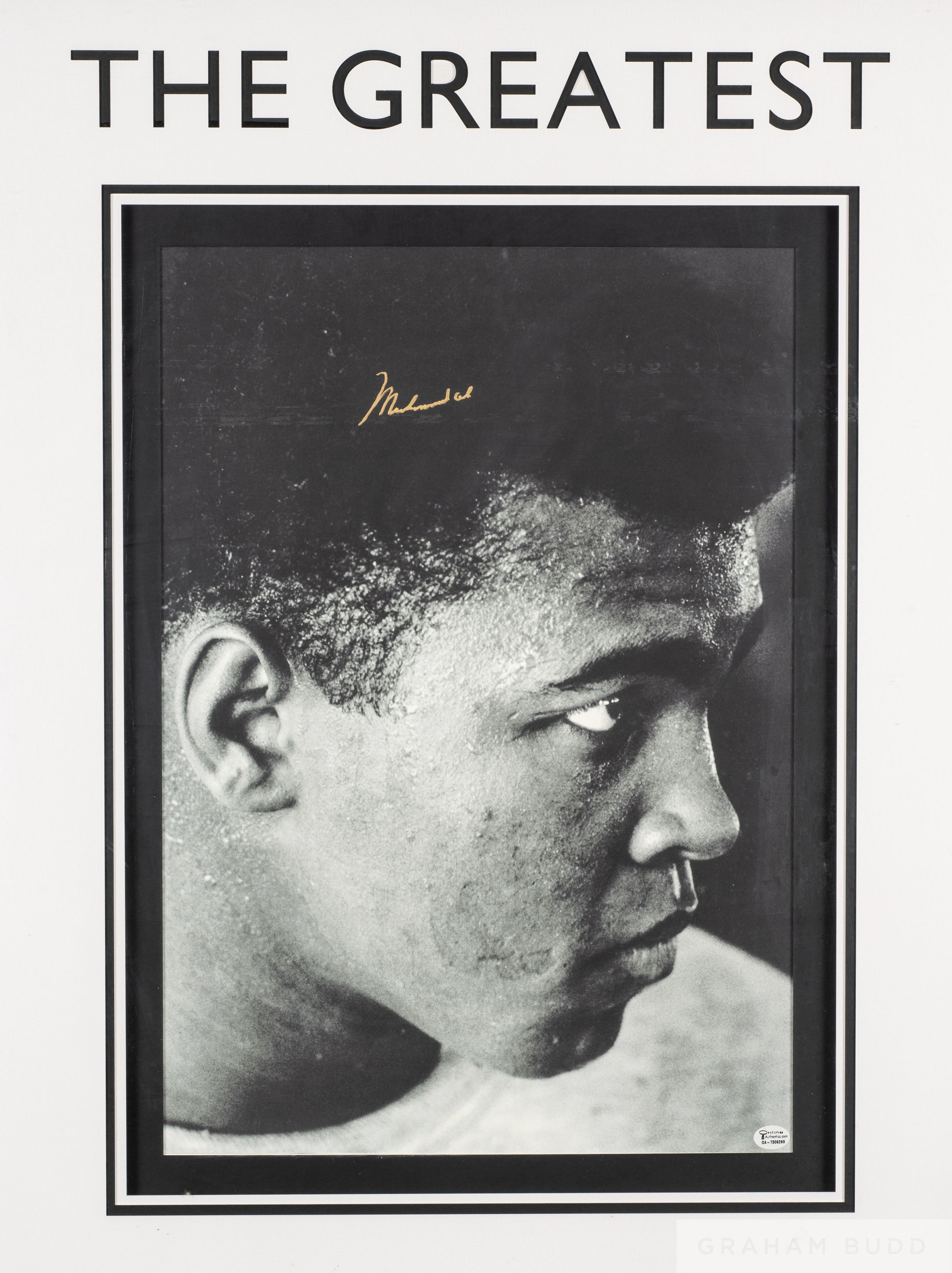 Muhammad Ali “The Greatest” signed print authenticated by Online Authentics.com, OA-7306269, 76 by 61cm., framed and glazed