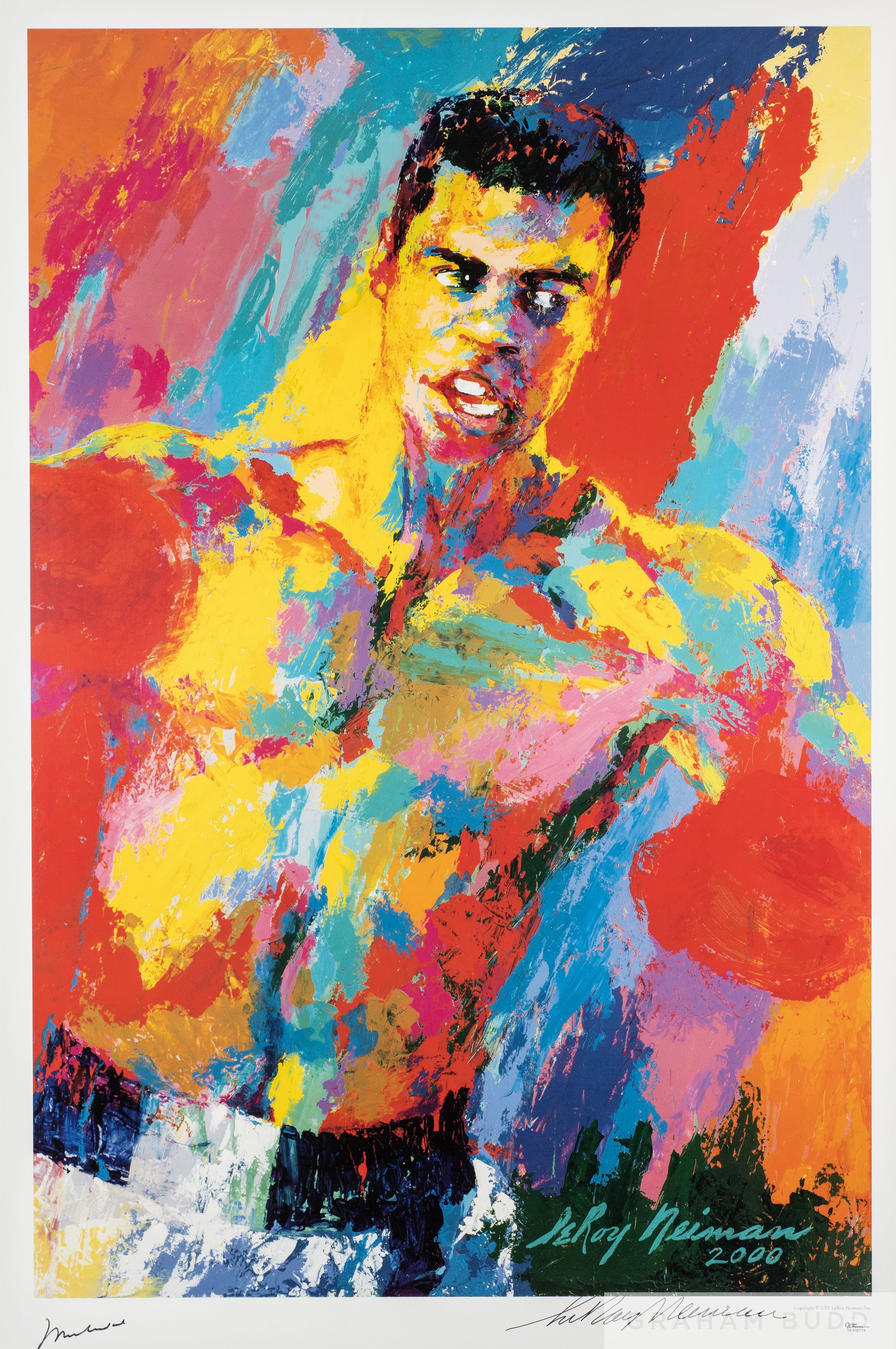 Leroy Neiman portrait of Muhammad Ali colour reproduction the mount autographed by Muhammad Ali and artist Leroy Neiman, authenticated by Online Auth