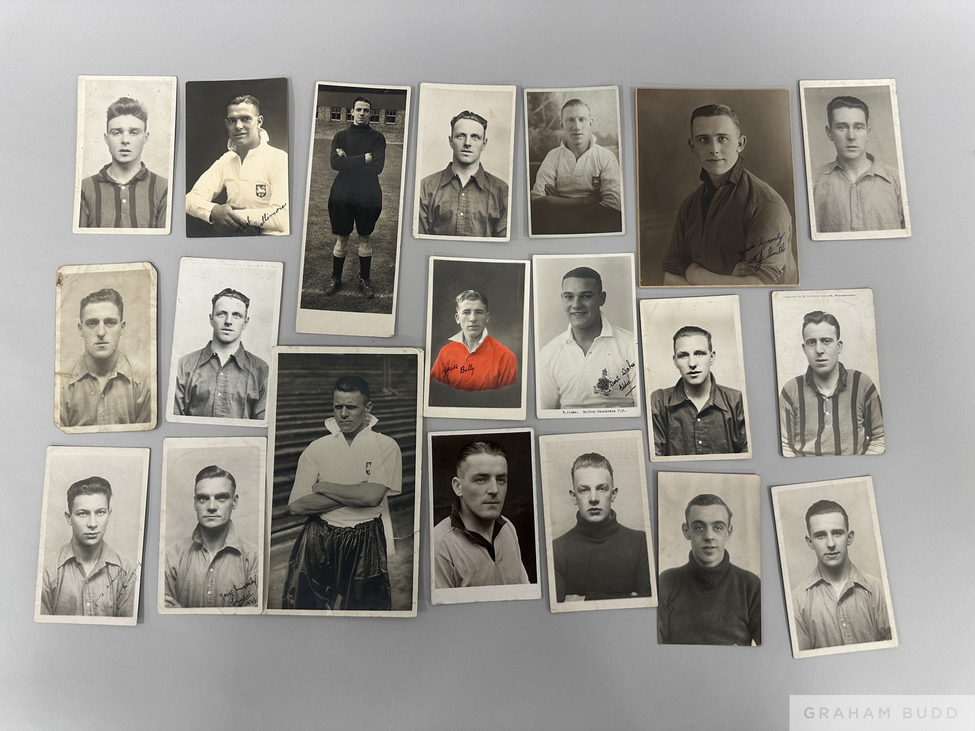 A collection of various pre-war team and player photographs and postcards mainly relating to Preston North End and Wolves including player team pictures, action shots and player portraits, some of which are signed, 57 items (a lot)