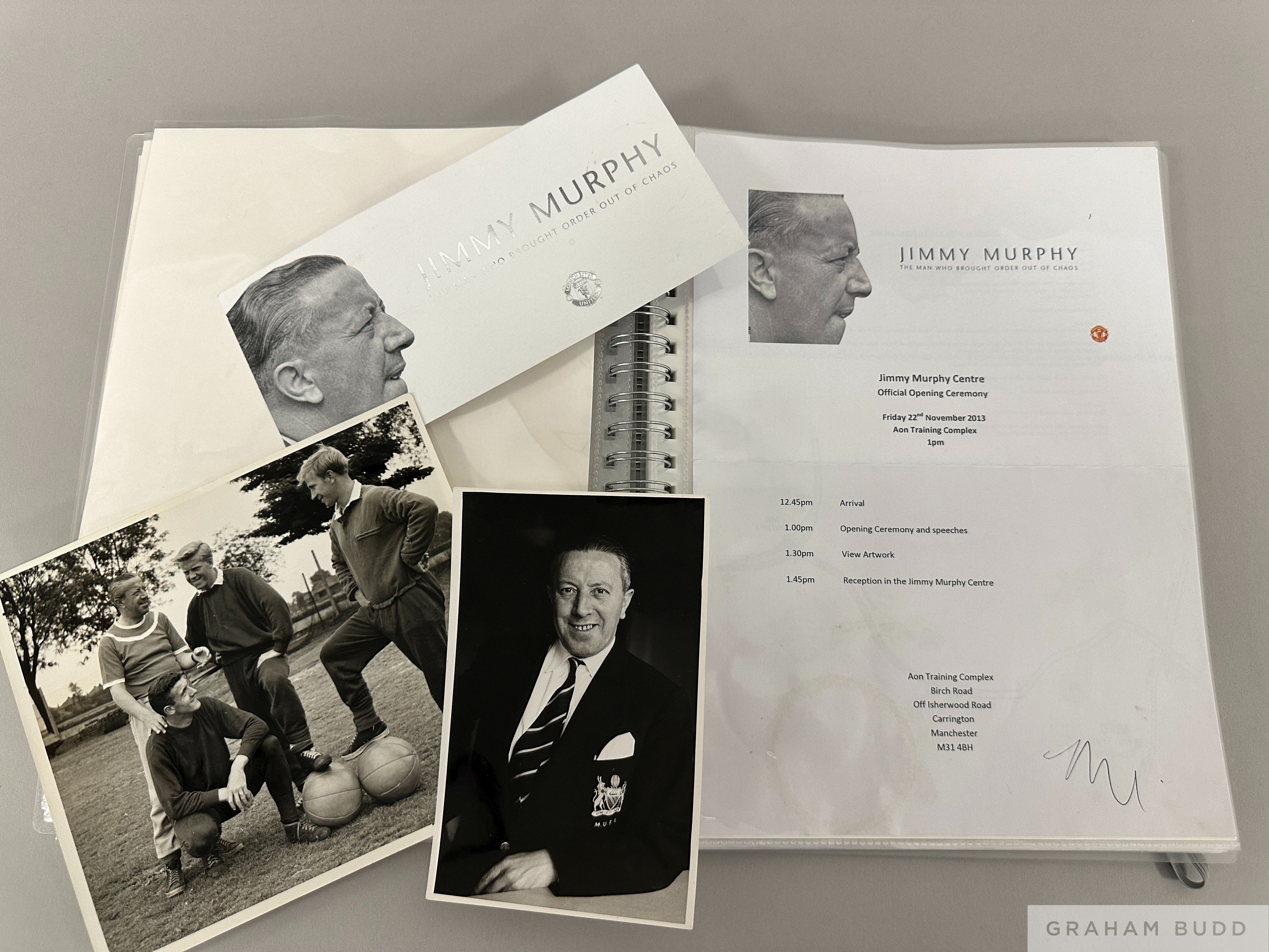 Photographs and ephemera relating to Manchester United coach Jimmy Murphy, b&w press photographs (one bearing signature to the reverse), signed Christmas Cards and ephemera relating to the Opening of the Jimmy Murphy Centre, (qty)