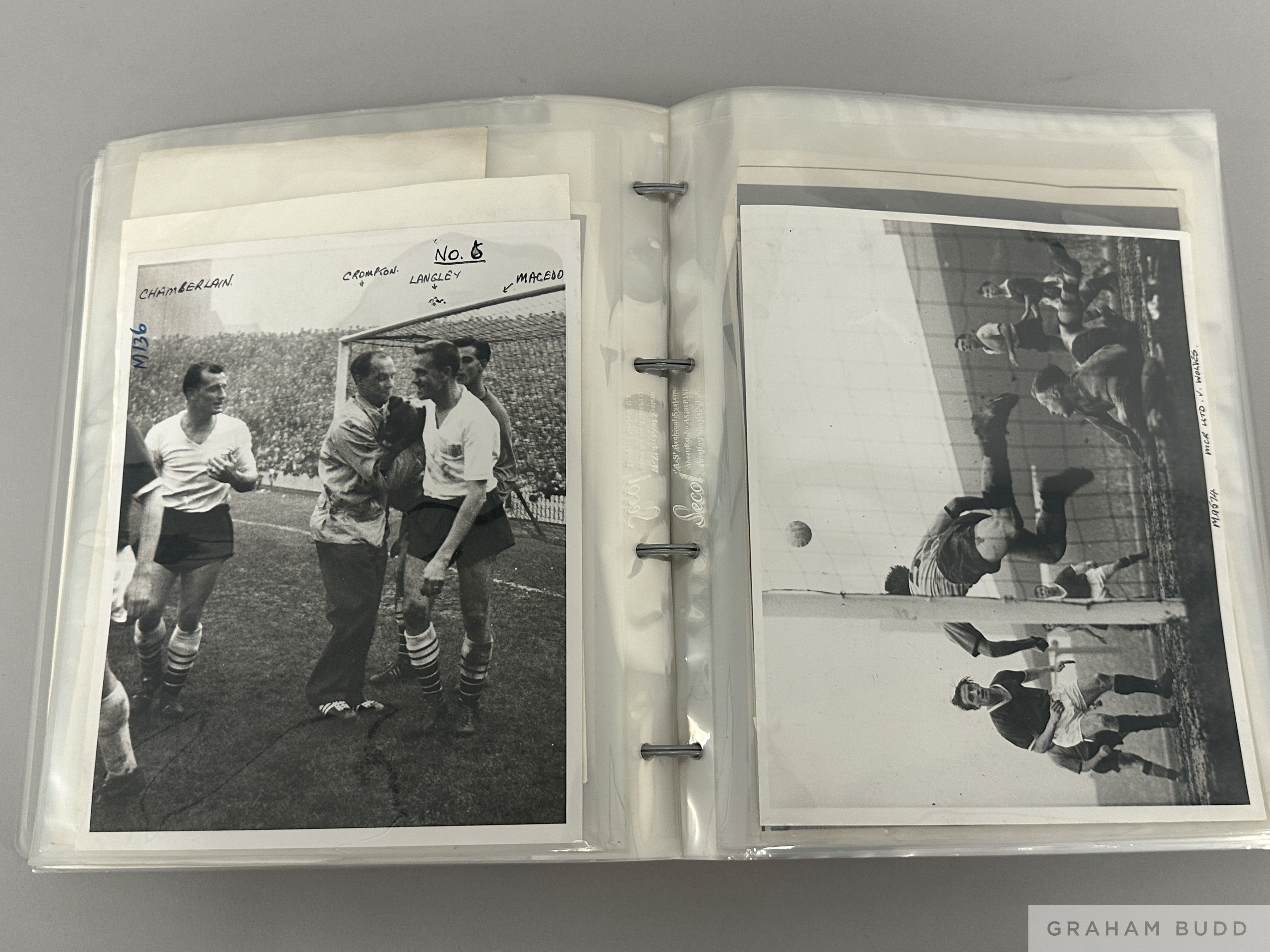 Collection of 38 Manchester United 1950s press photographs, b&w, various sizes, mostly match action, some player portraits and other subjects, more u