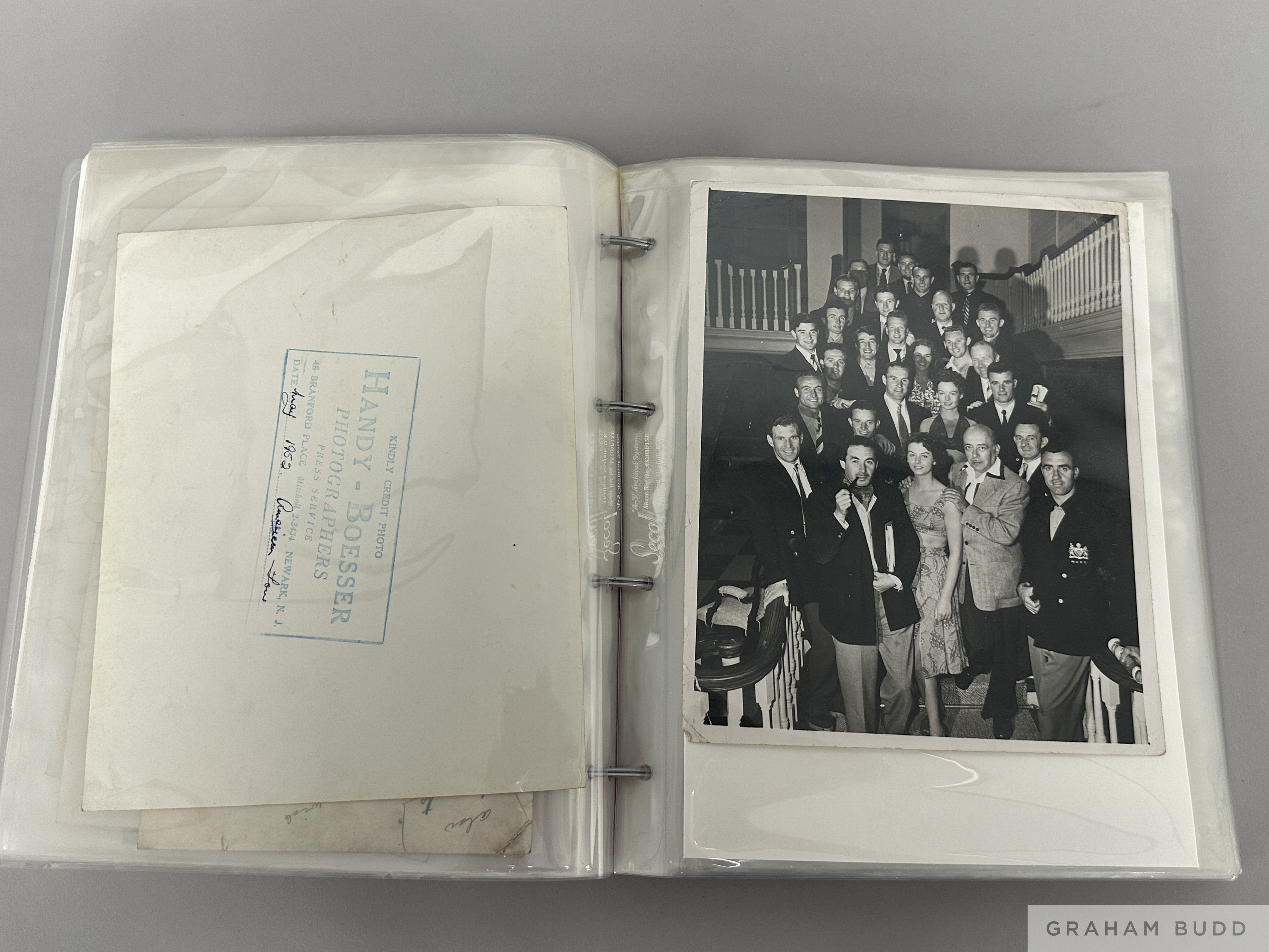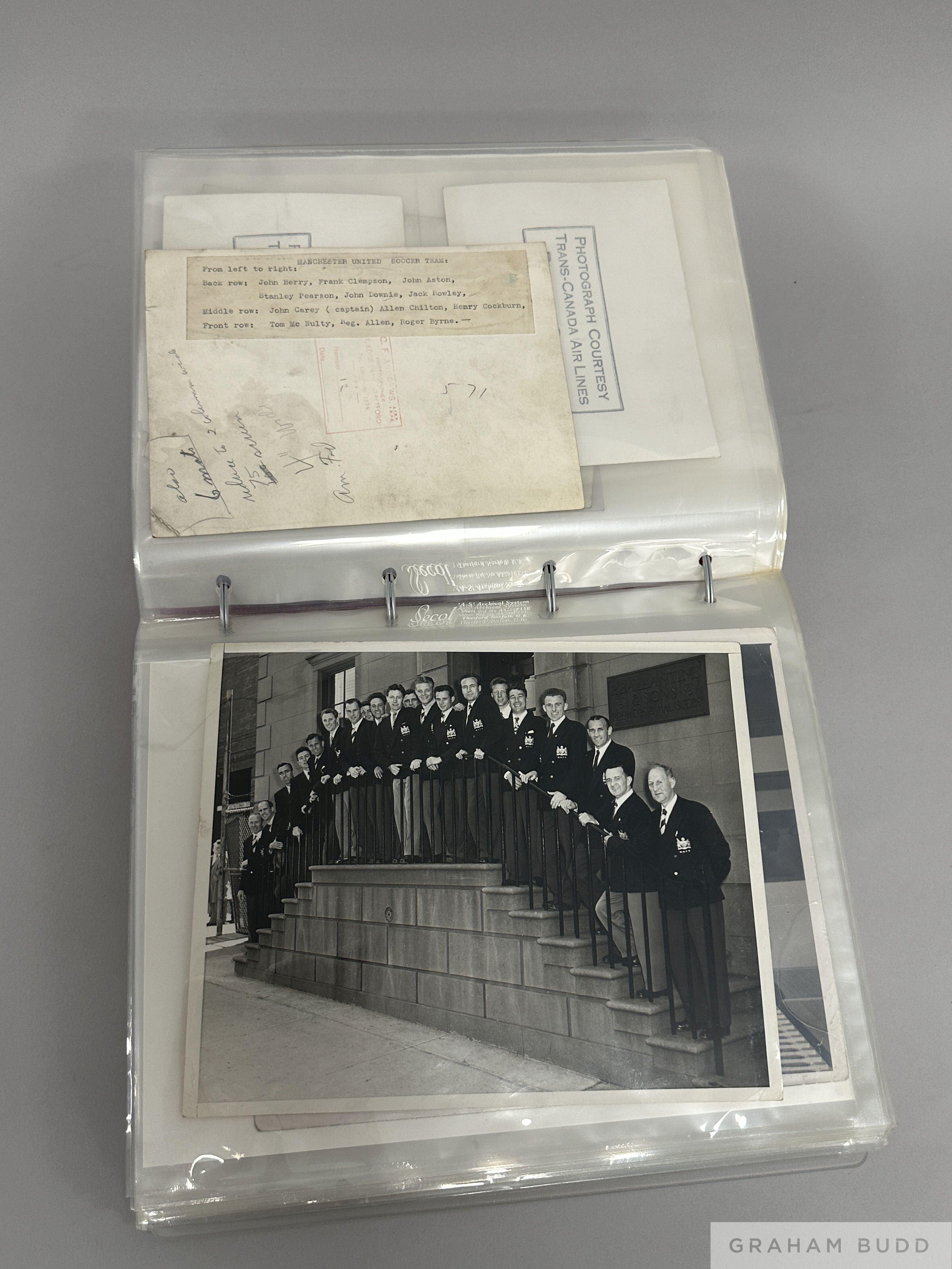 Collection of press photographs originally owned by the Manchester United footballer Johnny Carey late 1940s/early 50s, b&w, various sizes, subjects including match action, Manchester Tour to the USA in 1950, team-groups etc., (27)