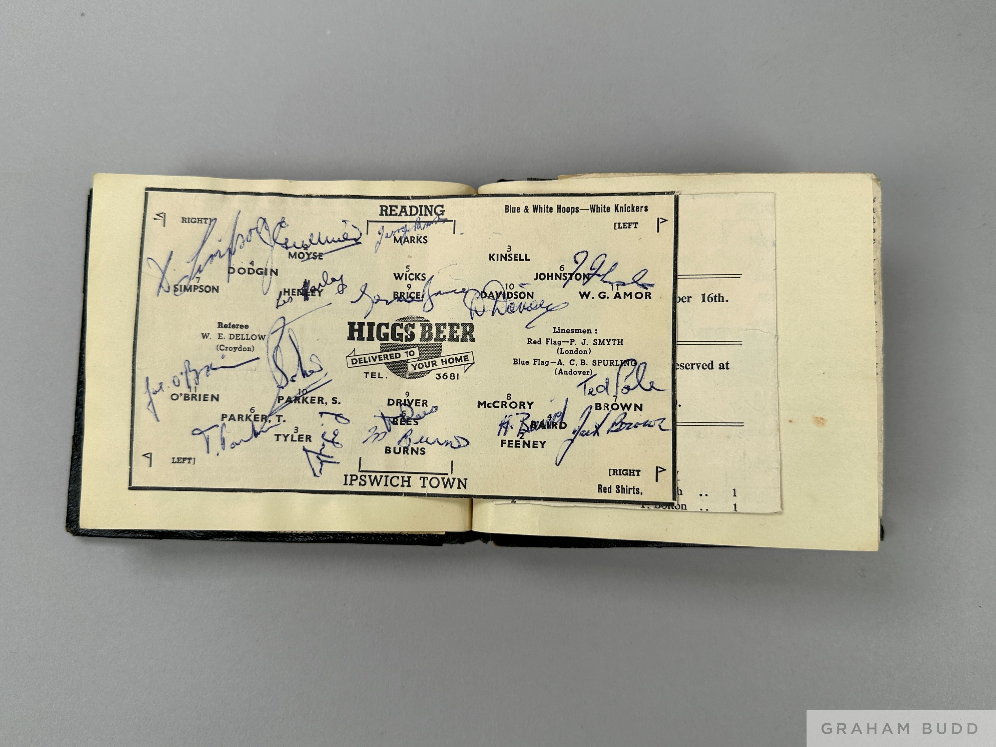 Autographed original album, 1950-51 with both team and individual cut-outs, include Reading interest v Doncaster FAC 7/1/1950 on individual cut-outs Reading (II), Doncaster (II), also on individual cut-outs Portsmouth (11), Charlton (11), on team line-ups cut from programmes v Ipswich, Reading (7), Ipswich (9), v Torquay, Reading (6), Torquay (5), also FAC Cheltenham (9), Dartford (10) on team photographs Plymouth (11), Newport County (11), Tottenham Hotspur excellent photograph signed (11) includes Ramsey; also (38) individual cut-outs include Milburn, Finney, Hannah, Burgess, (qty)
