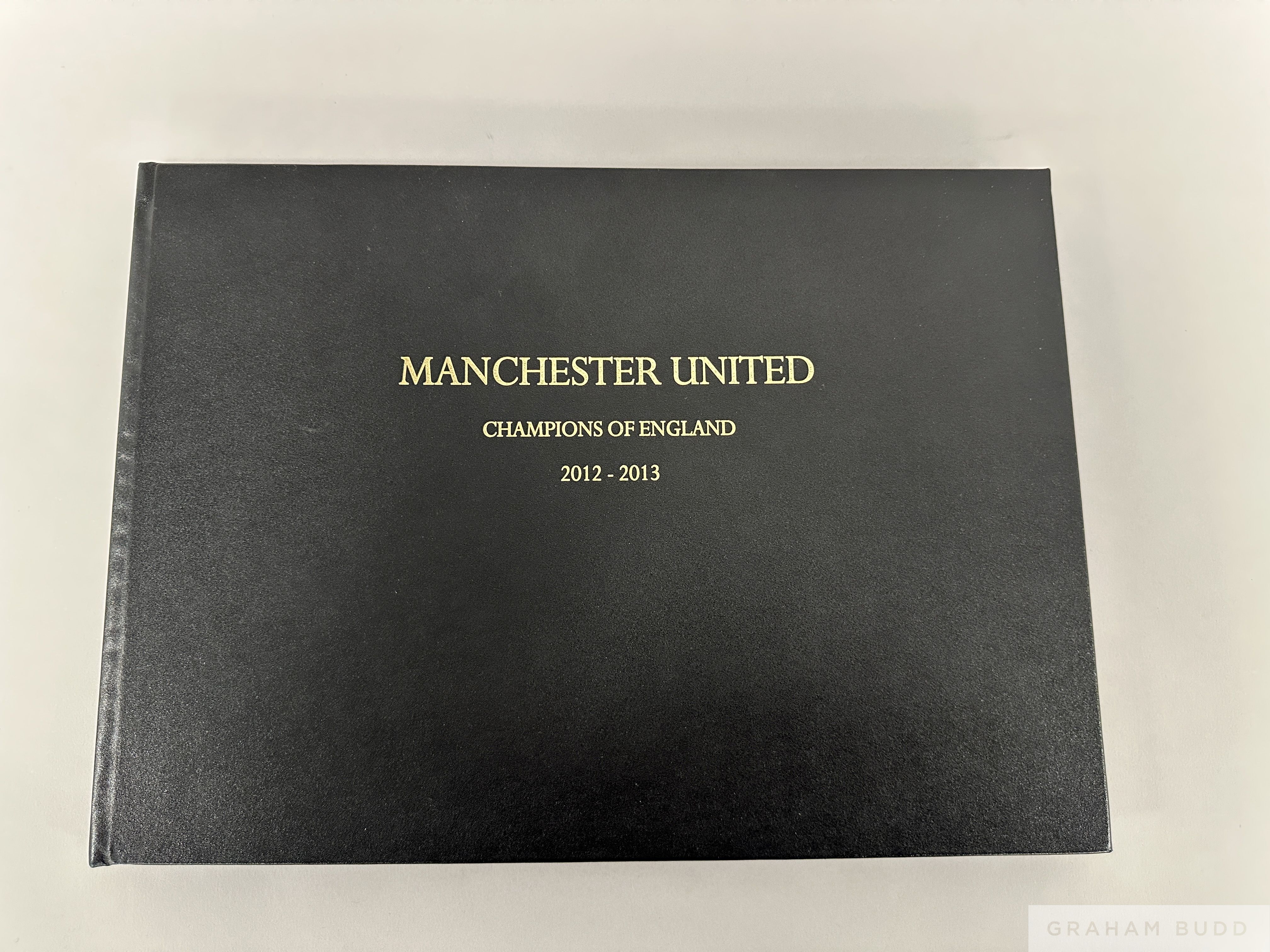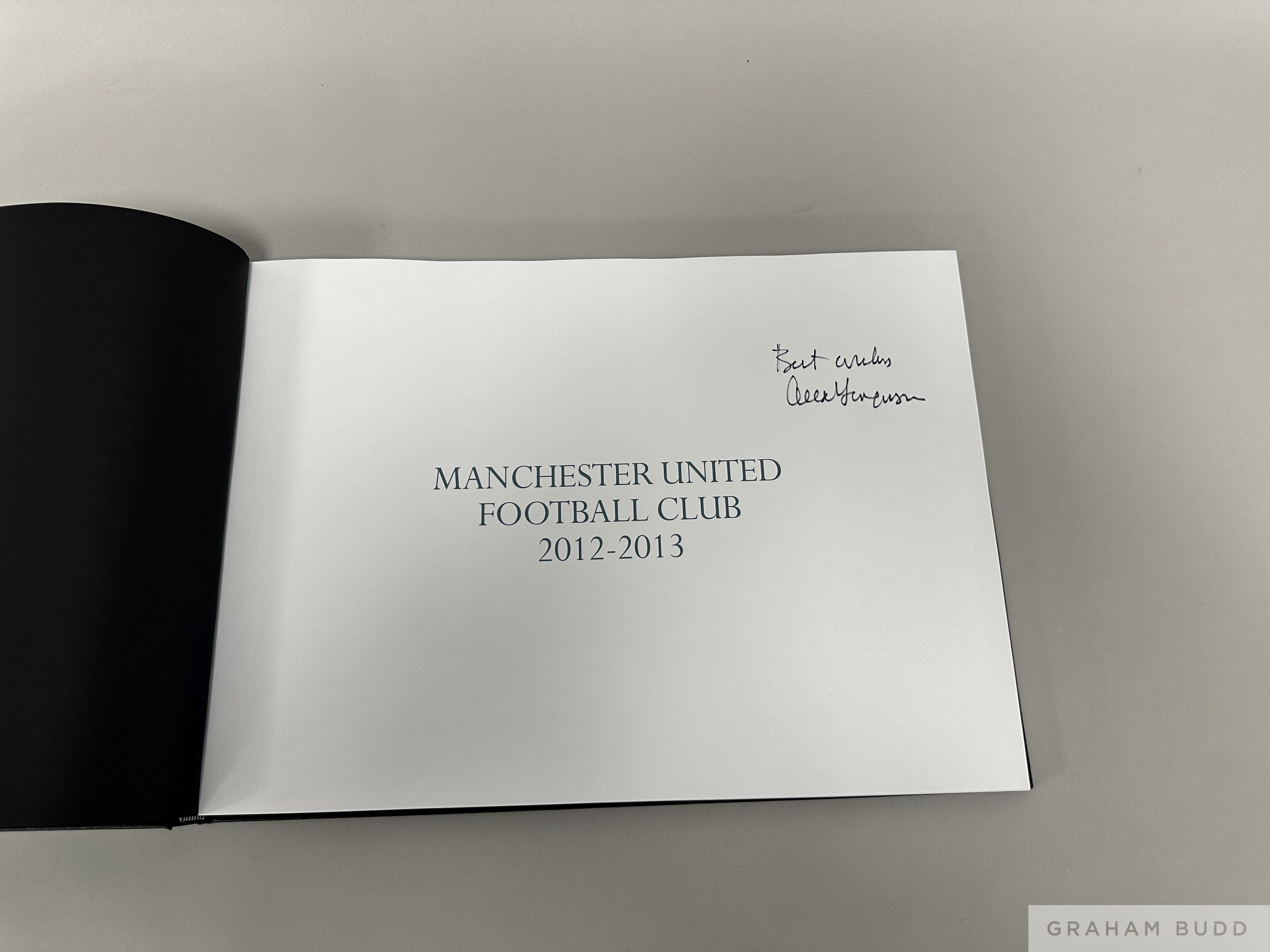 Manchester United Champions of England, 2012-2013, season review book autographed by Alex Ferguson containing 174 pages of colour photographs relating to the League Winning Season, the cover with gilt-tooled text MANCHESTER UNITED CHAMPIONS OF ENGLAND, 2012-13