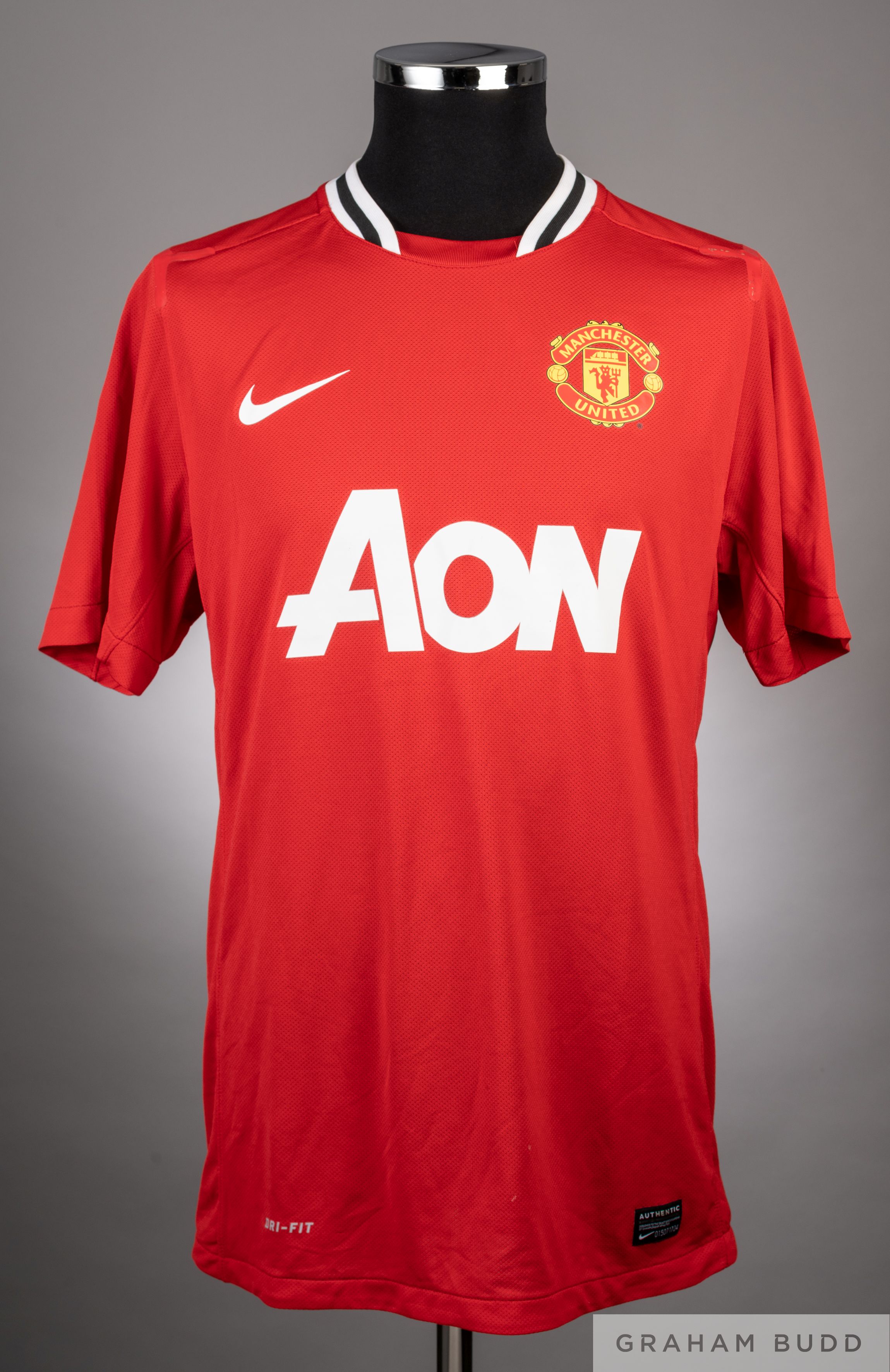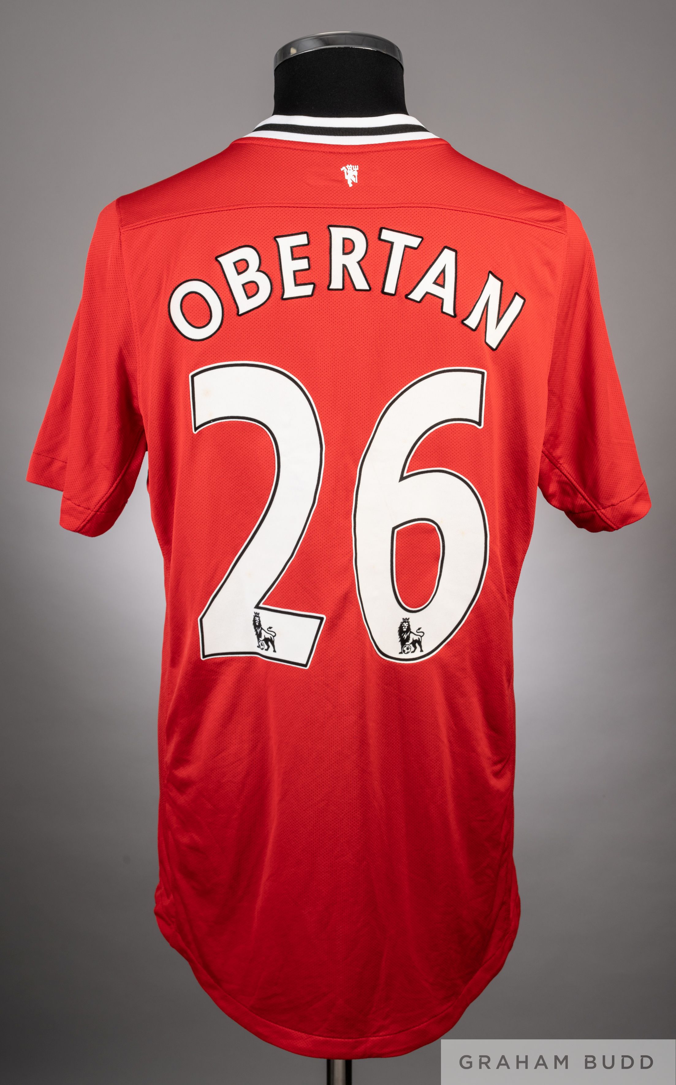 Gabriel Obertan red No.26 Manchester United short-sleeved shirt, with crew-neck collar and printed badge, the reverse lettered OBERTAN