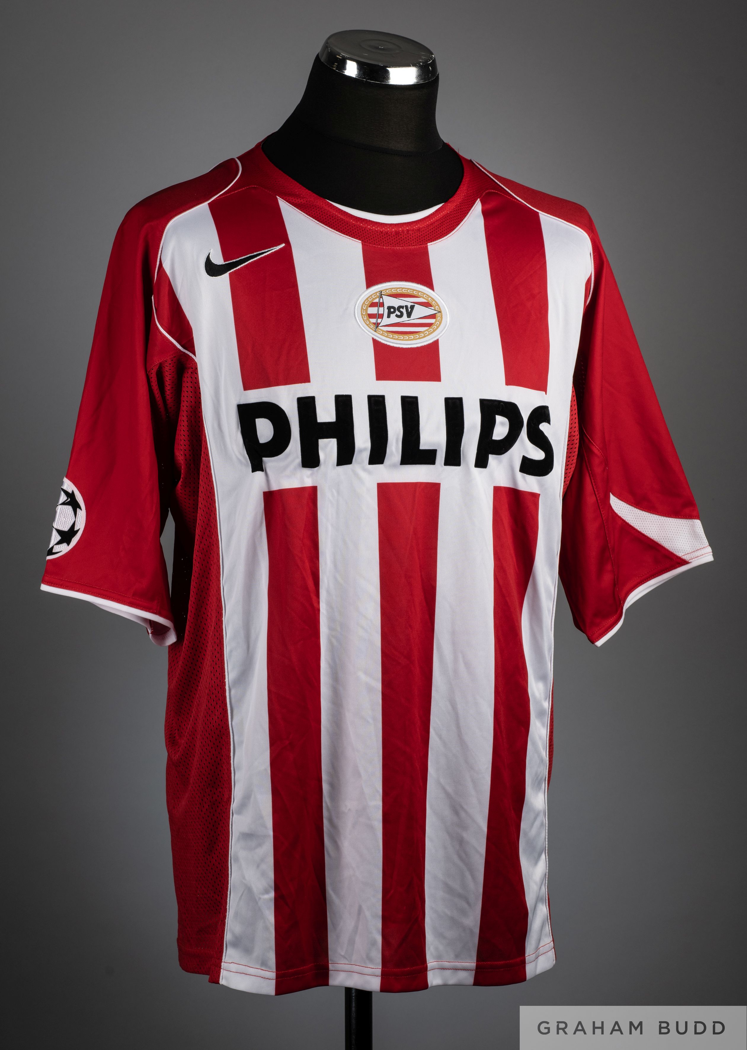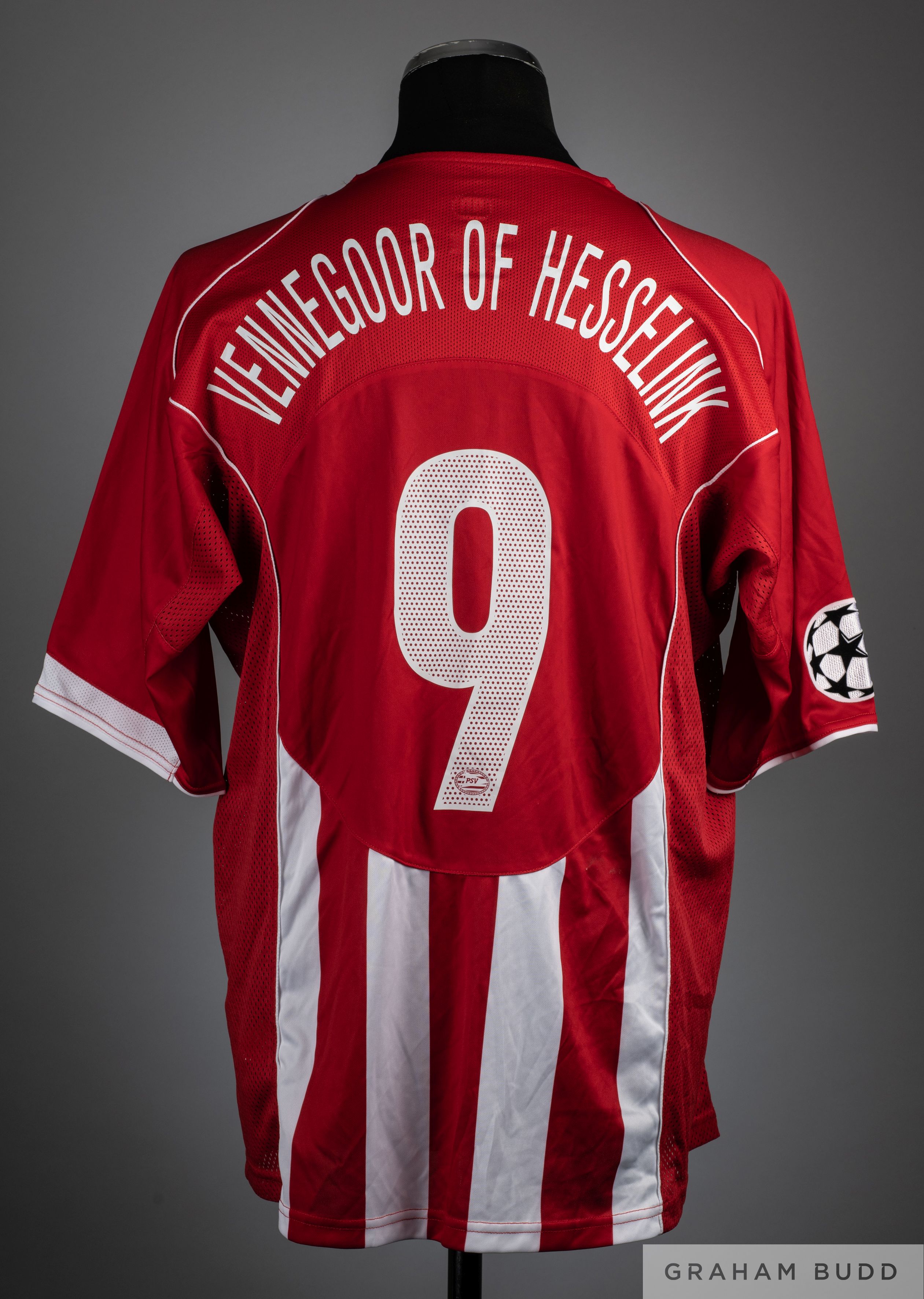 Vennegoor of Hesselink red No.9 PSV Eindhoven short sleeved shirt 2004-05, Nike, size XL, crew neck, embroidered Club badge, back lettered VENNEGOR OF HESSELINK, Champions League flash on left sleeve.