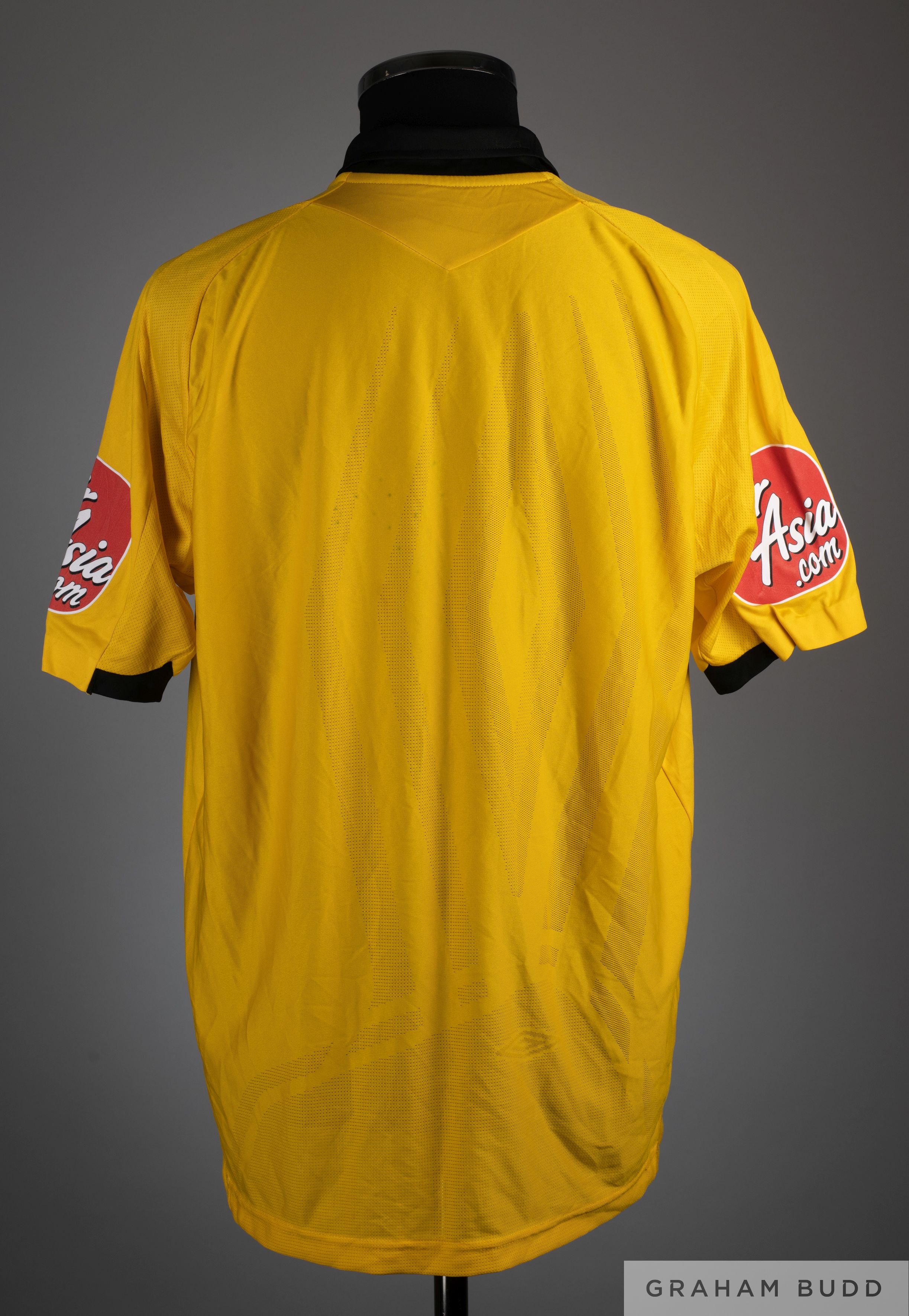 Peter Walton signed yellow Referee short sleeved shirt, Umbro, size L, crew neck, printed Premier League badge, signed on front in black marker pen, Air Asia .com flash on right sleeve.
