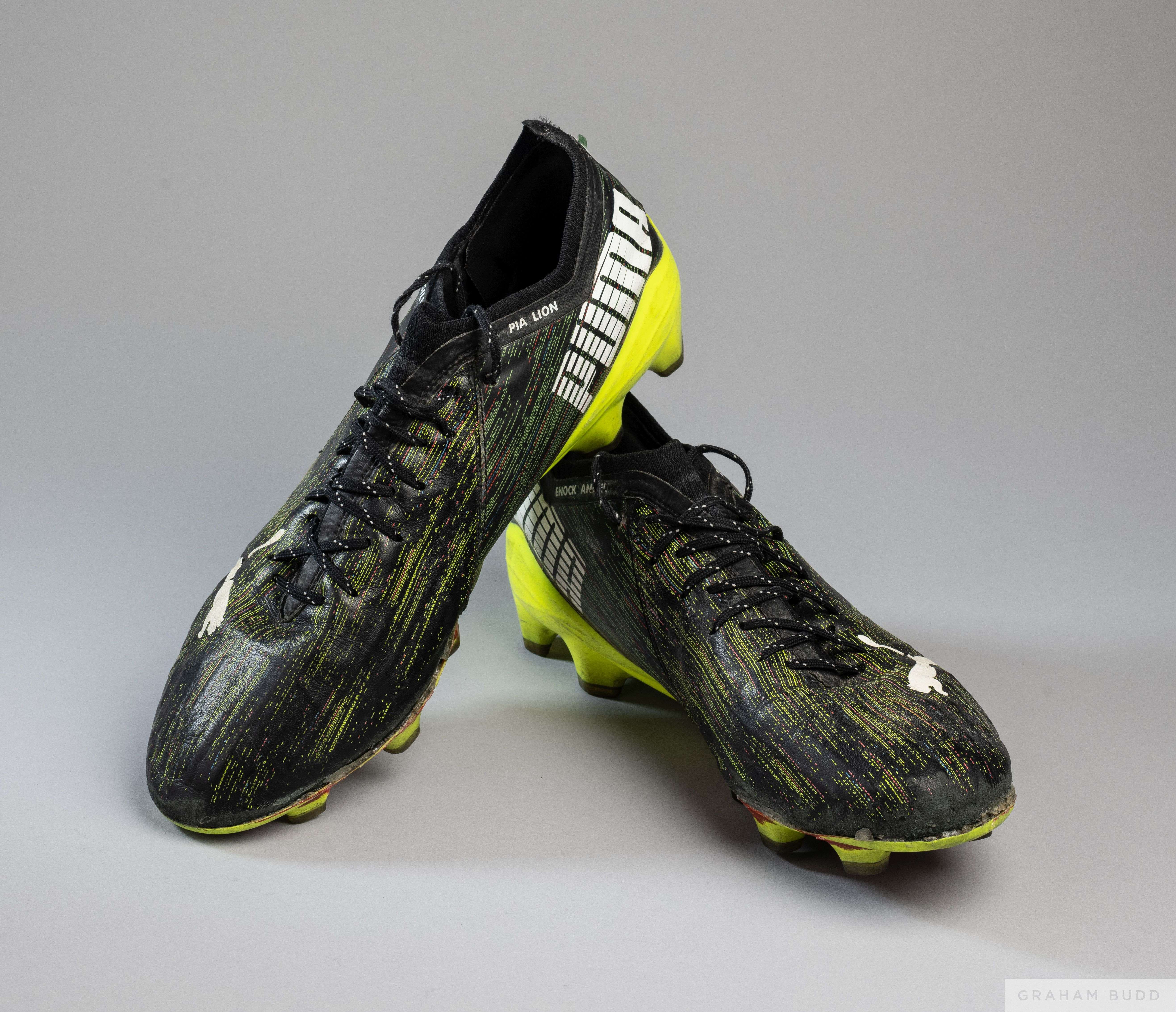 Pair of black and yellow match worn Mario Balotelli Puma Ultra football boots, 2021-22 each boot personalised, each in used condition, with COA from
