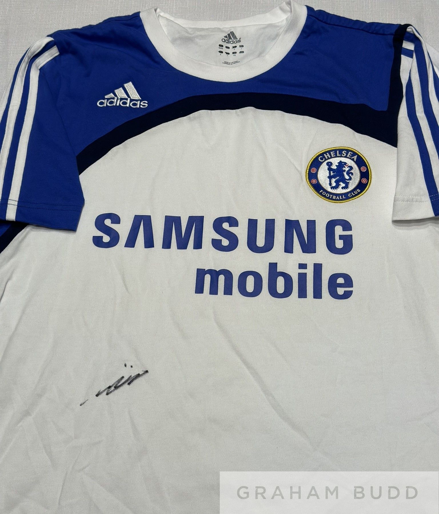 Chelsea: John Terry signed Chelsea FC shirt, Terry played 492 games for Chelsea from 1998 – 2017. White away shirt. Brand new with tags still on. Size 42/44 Comes with Certificate of Authenticity and photo proof of signing, (2)