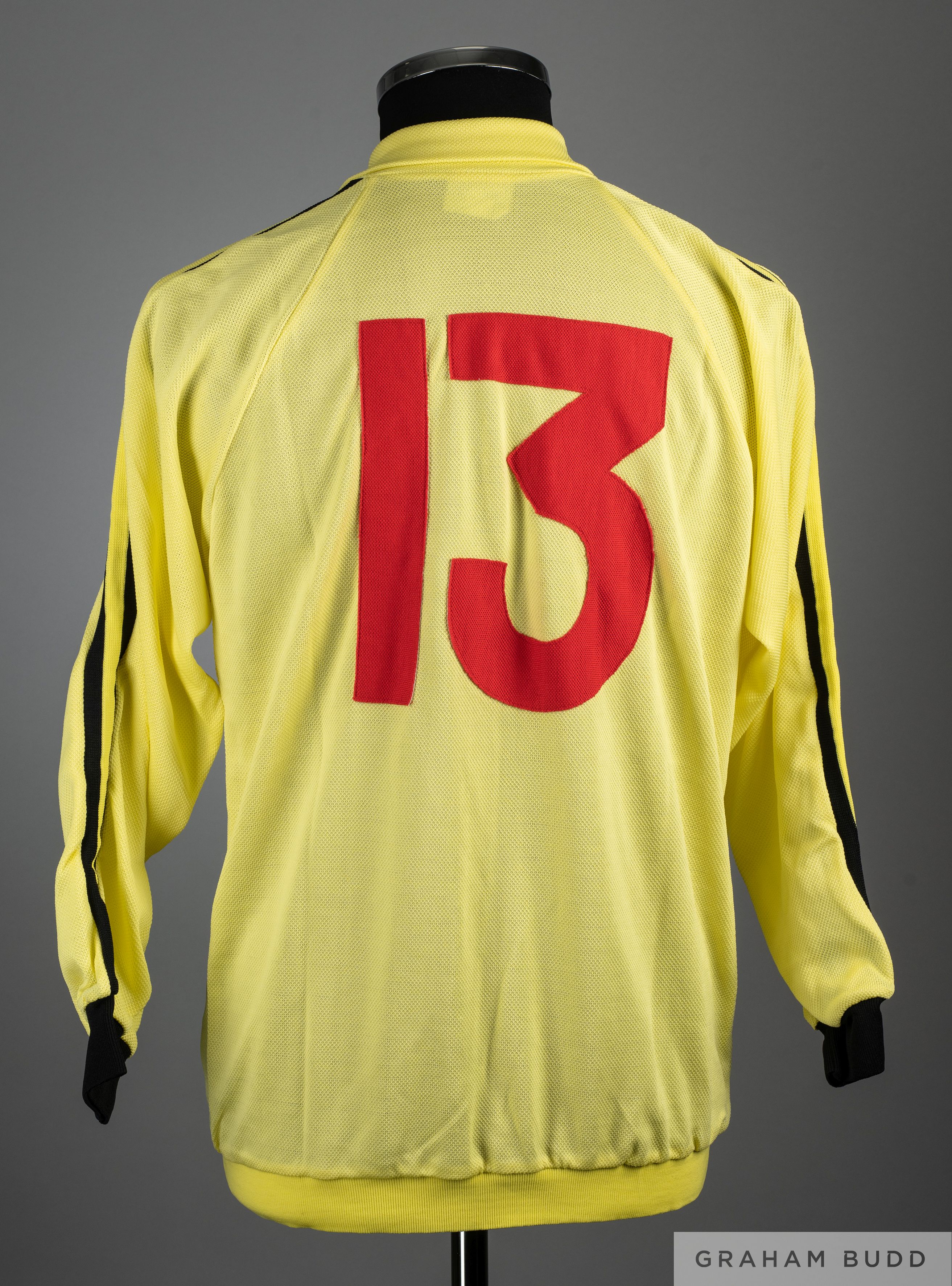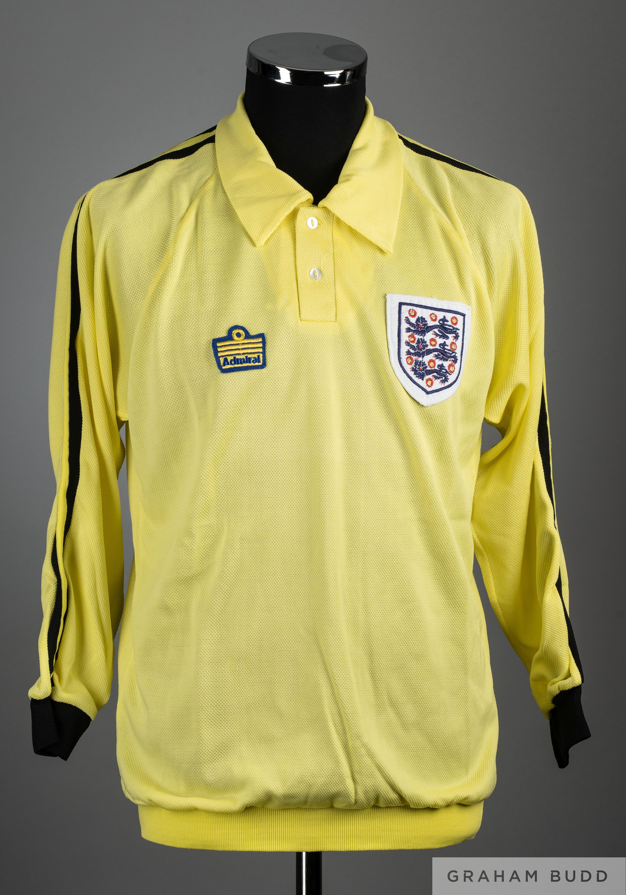Peter Shilton yellow No.13 England International goalkeepers shirt, 1970s, Admiral, L, with button-up collar and embroidered three lion cloth badge PROVENANCE: The Peter Shilton Collection