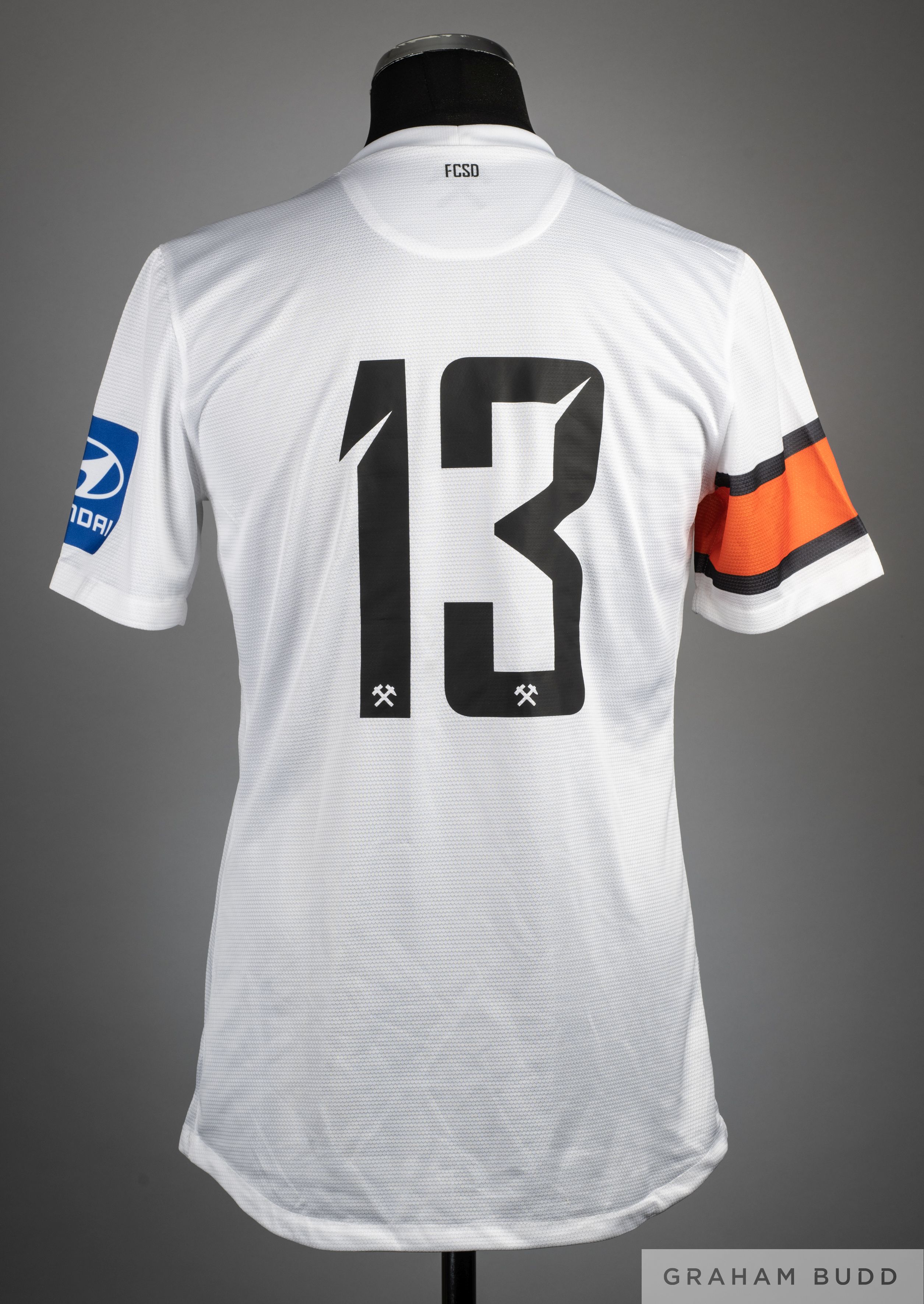 White, orange and black No.13 Shaktar Donetsk short-sleeved shirt, Nike, L, with crew-neck collar and printed badge