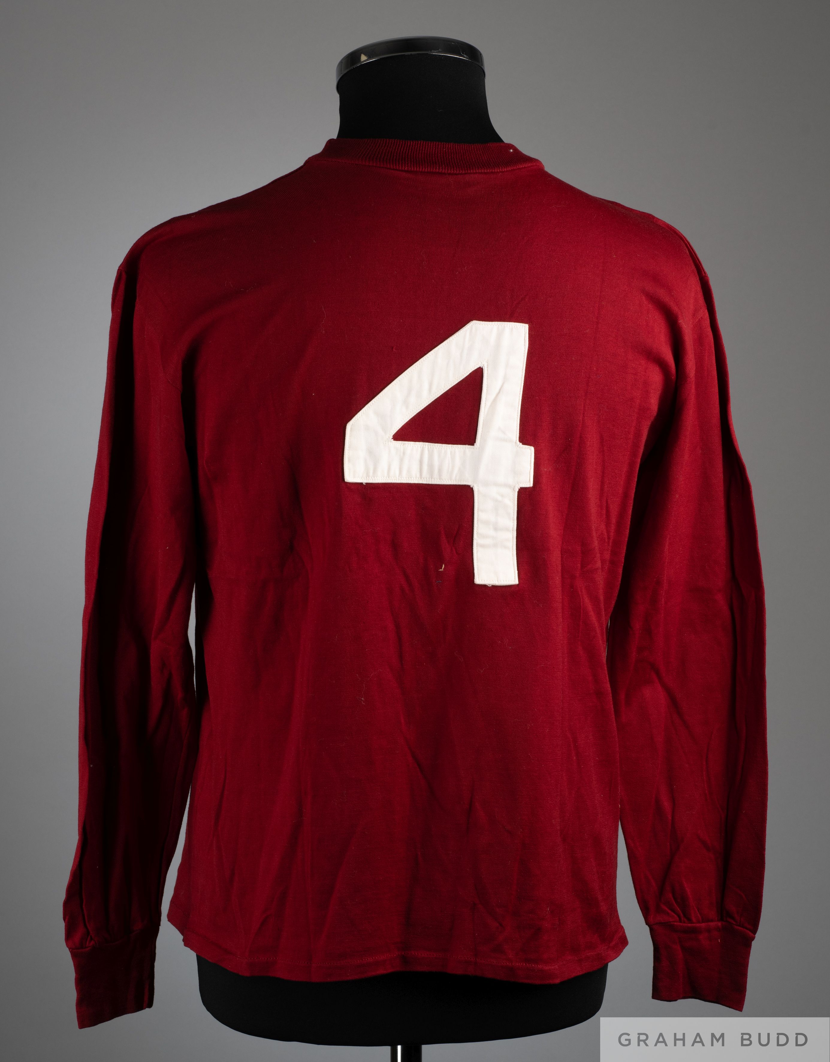 Maroon No.4 Portugal Youth International shirt, 1960s with crew-neck collar and embroidered cloth badge inscribed UEFA The above shirt was worn in a UEFA Youth International Tournament in the 1960s