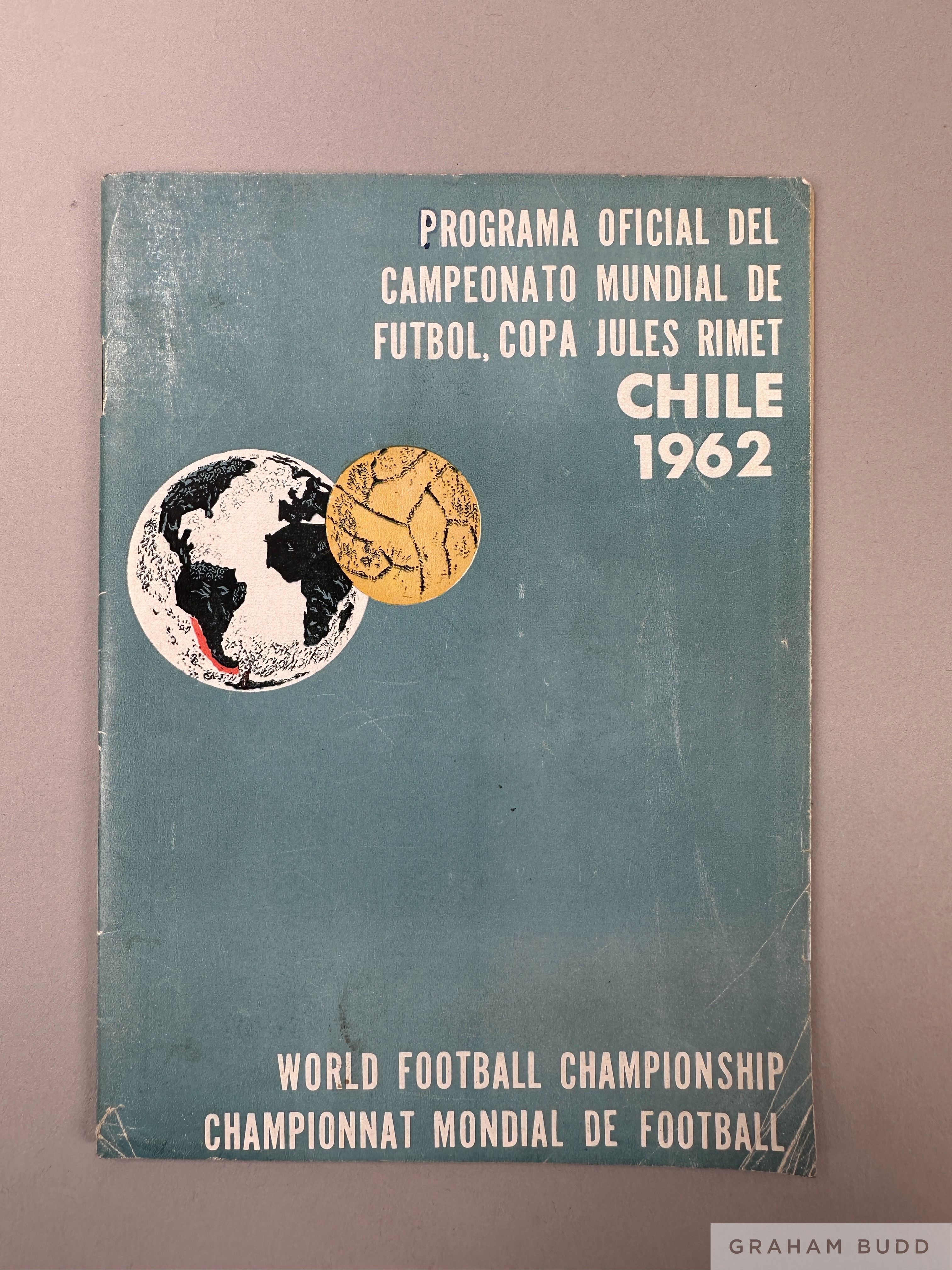 An Official programme for the 1962 World Cup Finals in Chile fair condition, slight creasing to cover bottom right with blue pen annotations on inn