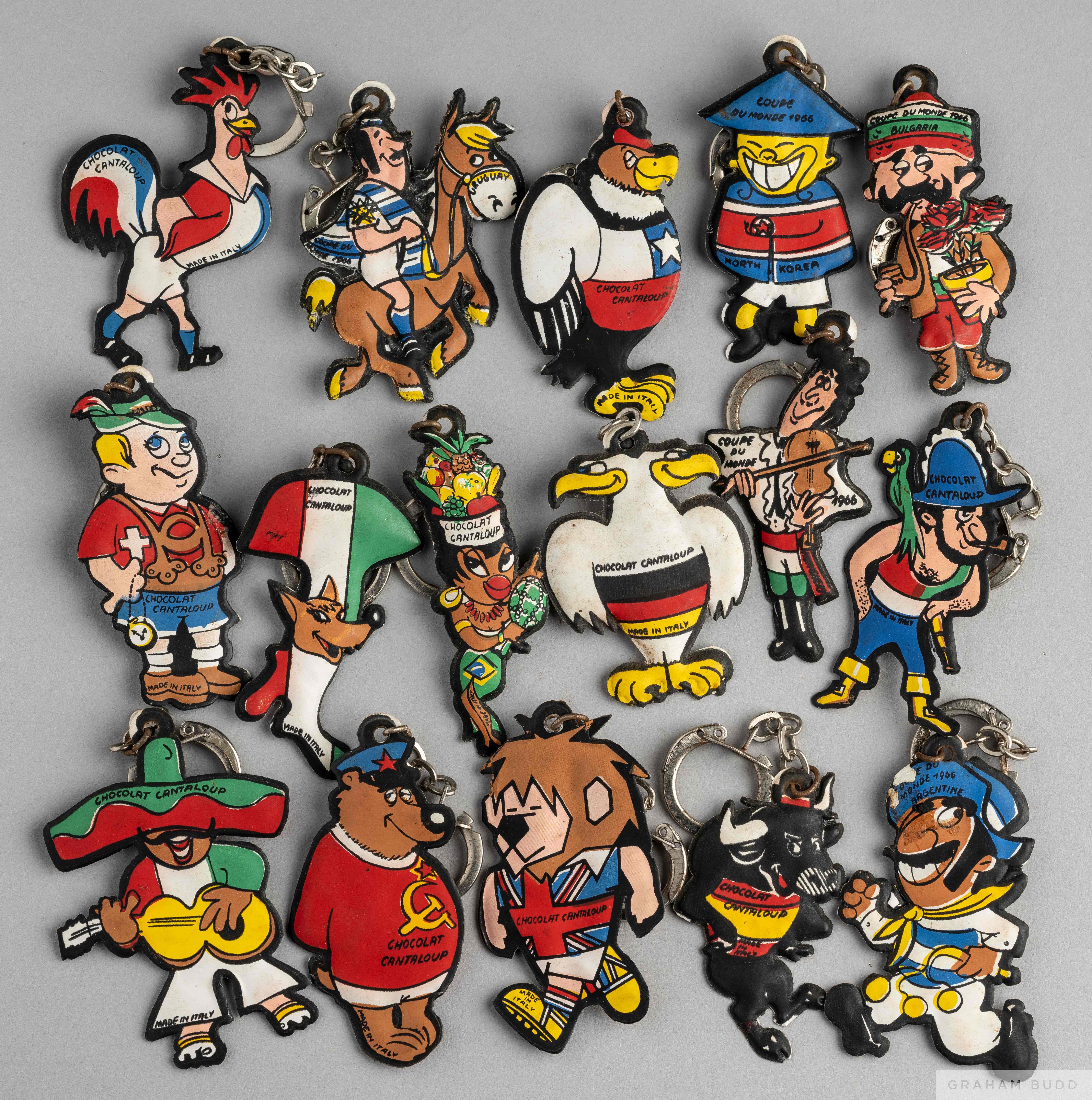 A full set of 16 keyrings featuring the participating countries at the 1966 World Cup all with caricatures featuring national dress or symbolism, (16)