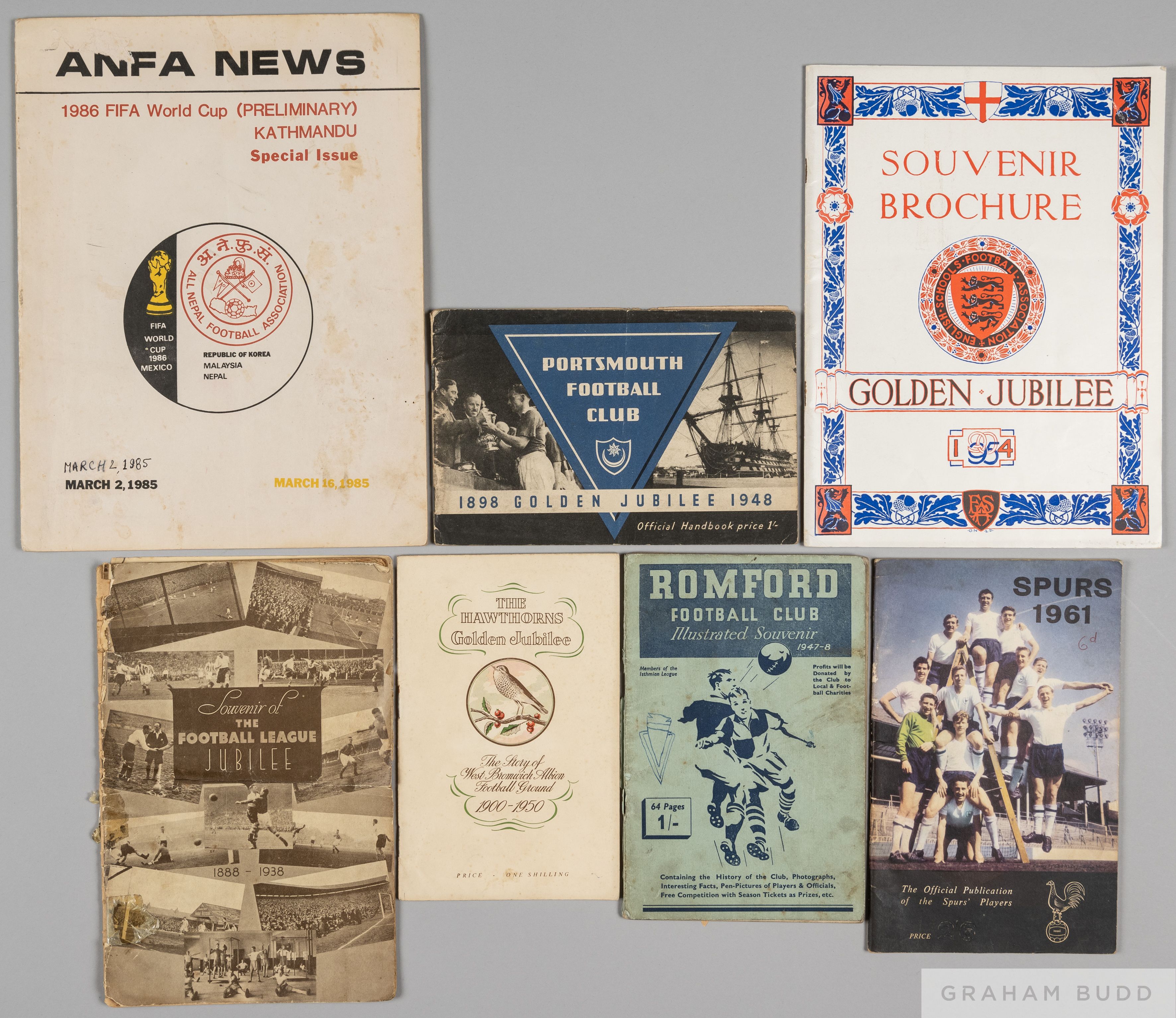 1986 World Cup publication All Nepal Football Association, March 1985, published as programme for the Qualifying group containing Nepal, Korea and Malaysia, Qualifying Tournament held in Kathmandu, 1985 for Mexico 86 World Cup and four various jubilee brochures, Spurs and Romford brochures, (7)