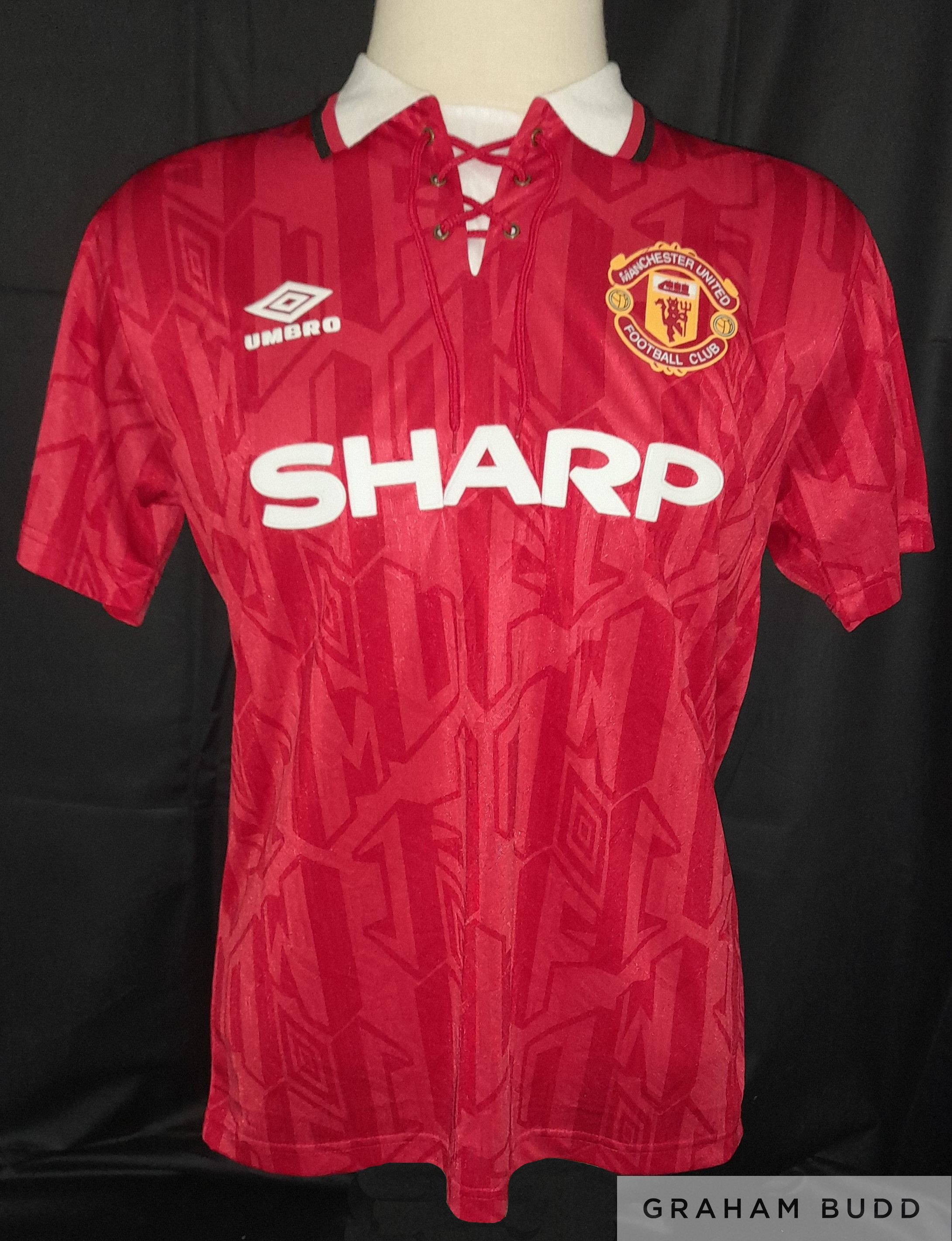 Manchester United Eric Cantona signed shirt 1993 double season Premier League and FA Cup winners, Umbro shirt, size medium. Autographed by Eric to r