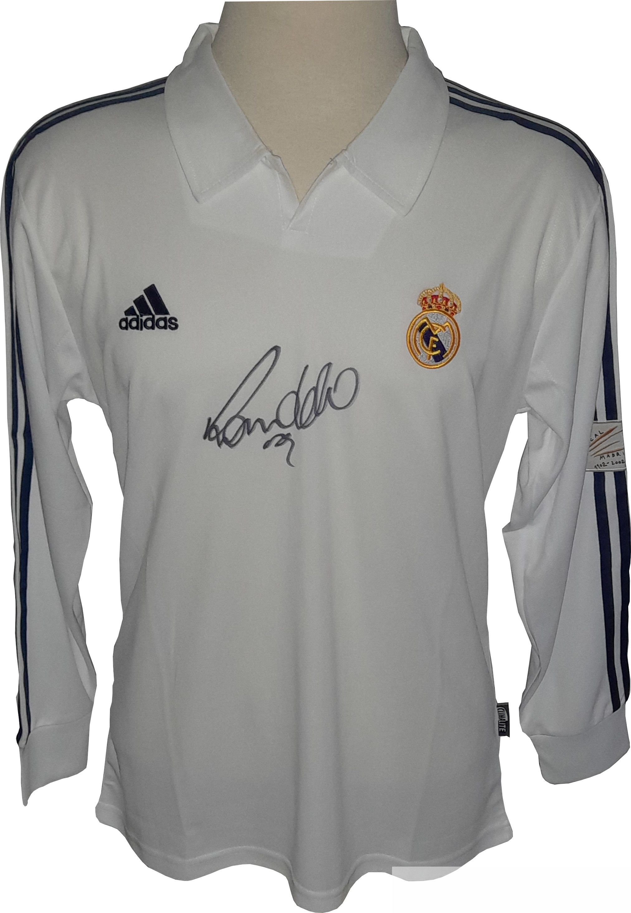 Ronaldo De Lima R9 signed Real Madrid 2001-02 European home replica shirt, autographed by Ronaldo “The Phenomonen” to front in black sharpie, being a size large, Adidas manufactured shirt