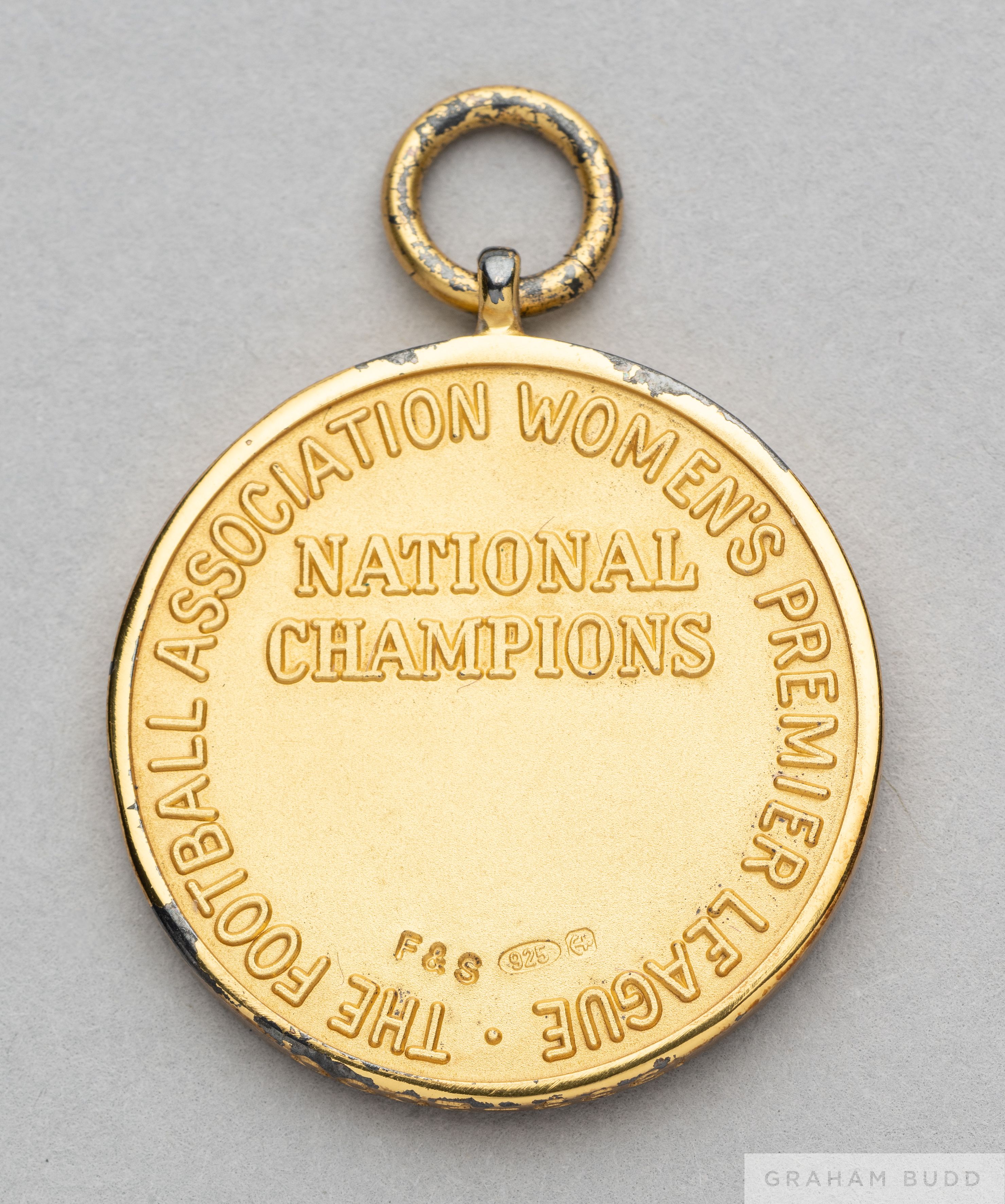 Joanne Broadhurst silver-gilt 1999-2000 F.A. Womens Premier League champions medal the obverse cast with three lion crest and laurel wreath, the reve