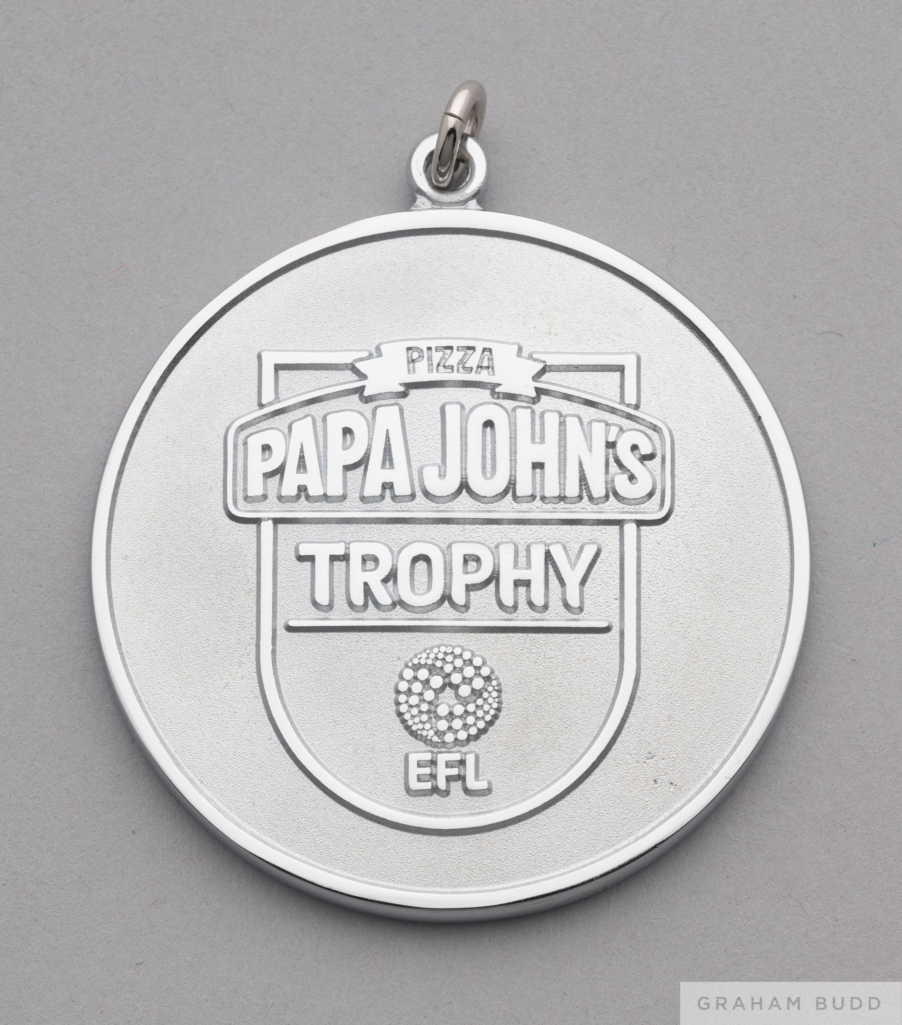 White metal 2019-20 EFL Papa Johns Trophy runners-up medal, the obverse inscribed PIZZA, PAPA JOHNS TROPHY EFL, the reverse inscribed FINALIST 2019-