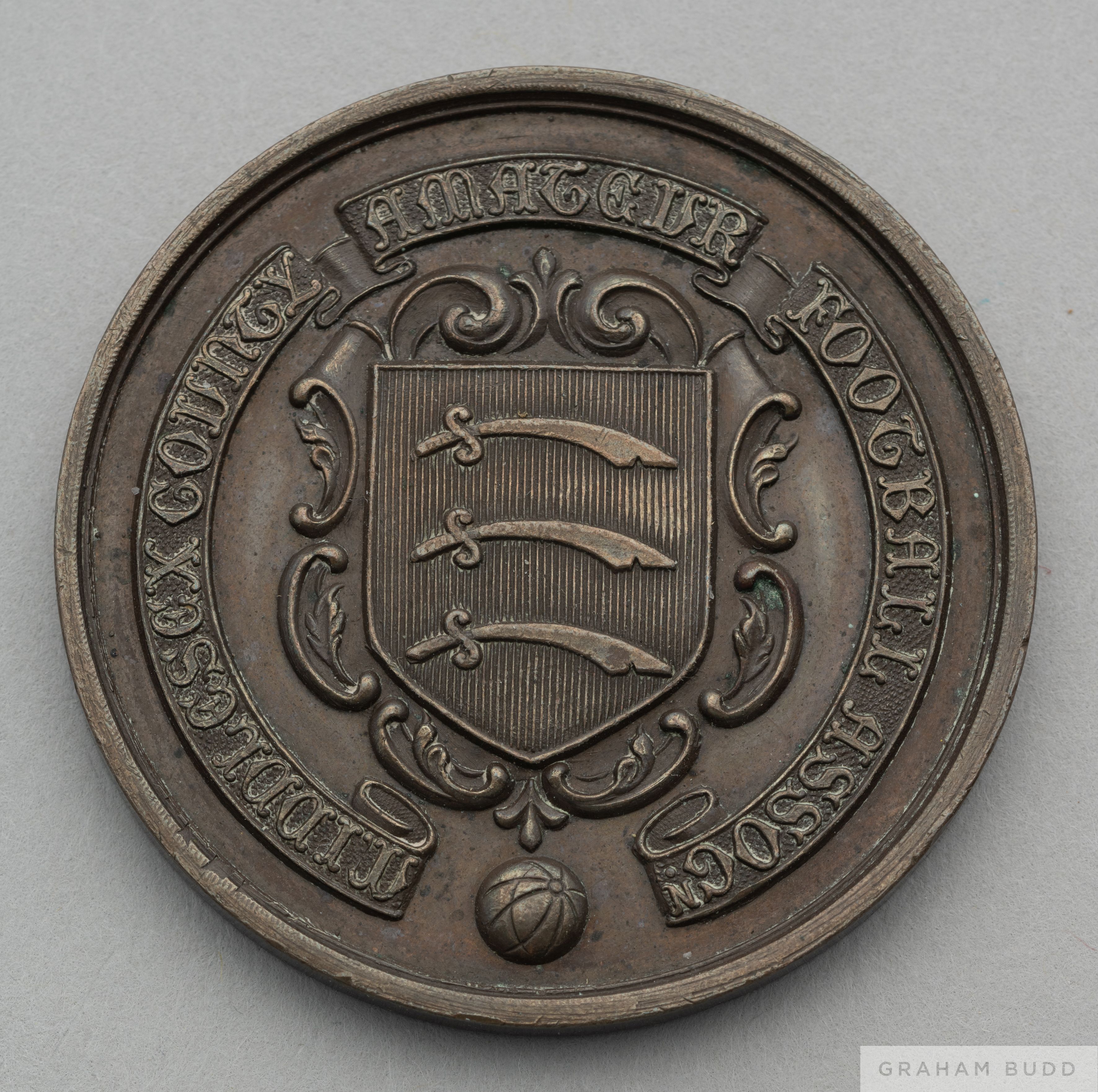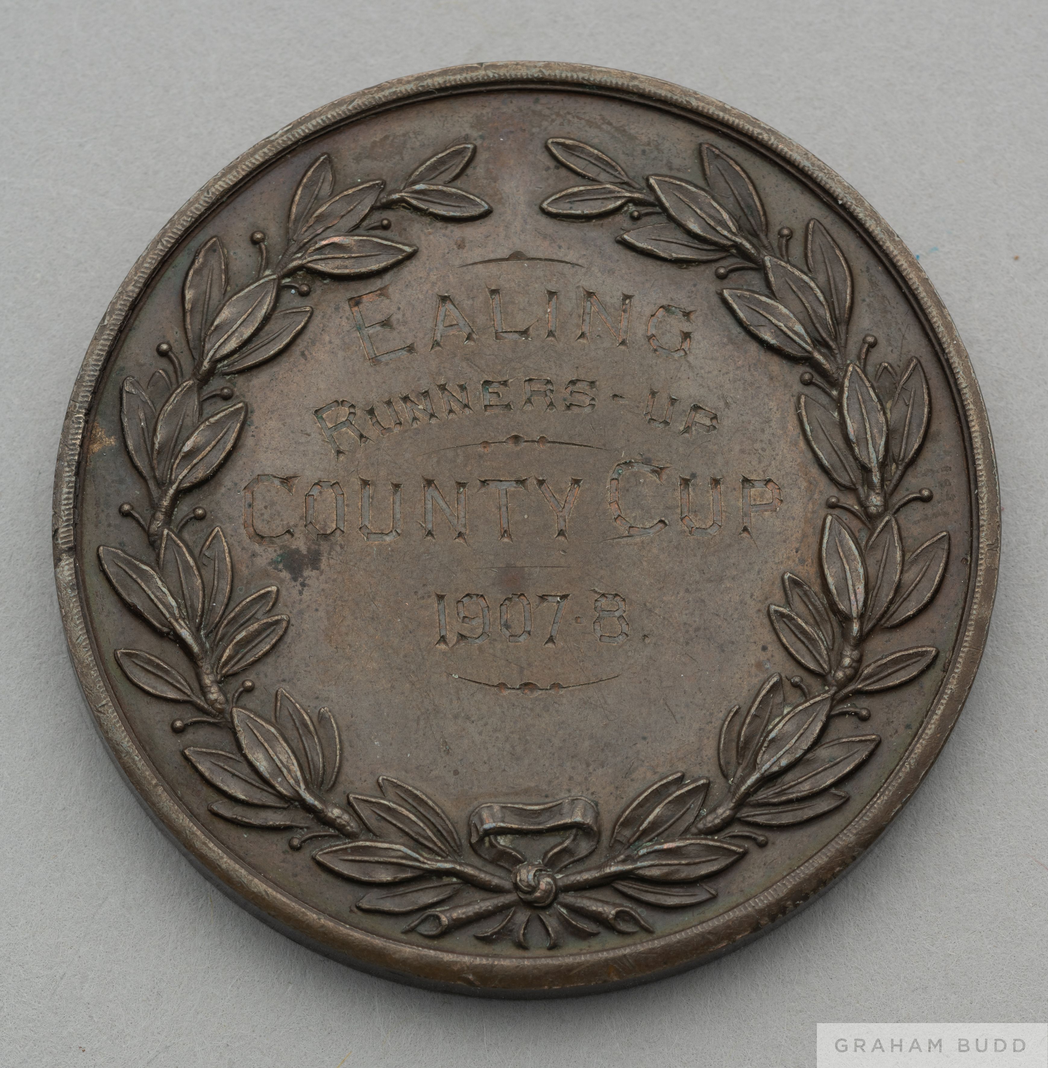 Bronze Middlesex County 1907-08 runners-up medal, the obverse inscribed Middlesex County Amateur Football Assoc, the reverse inscribed EALING Runners-up COUNTY CUP, 1907-08