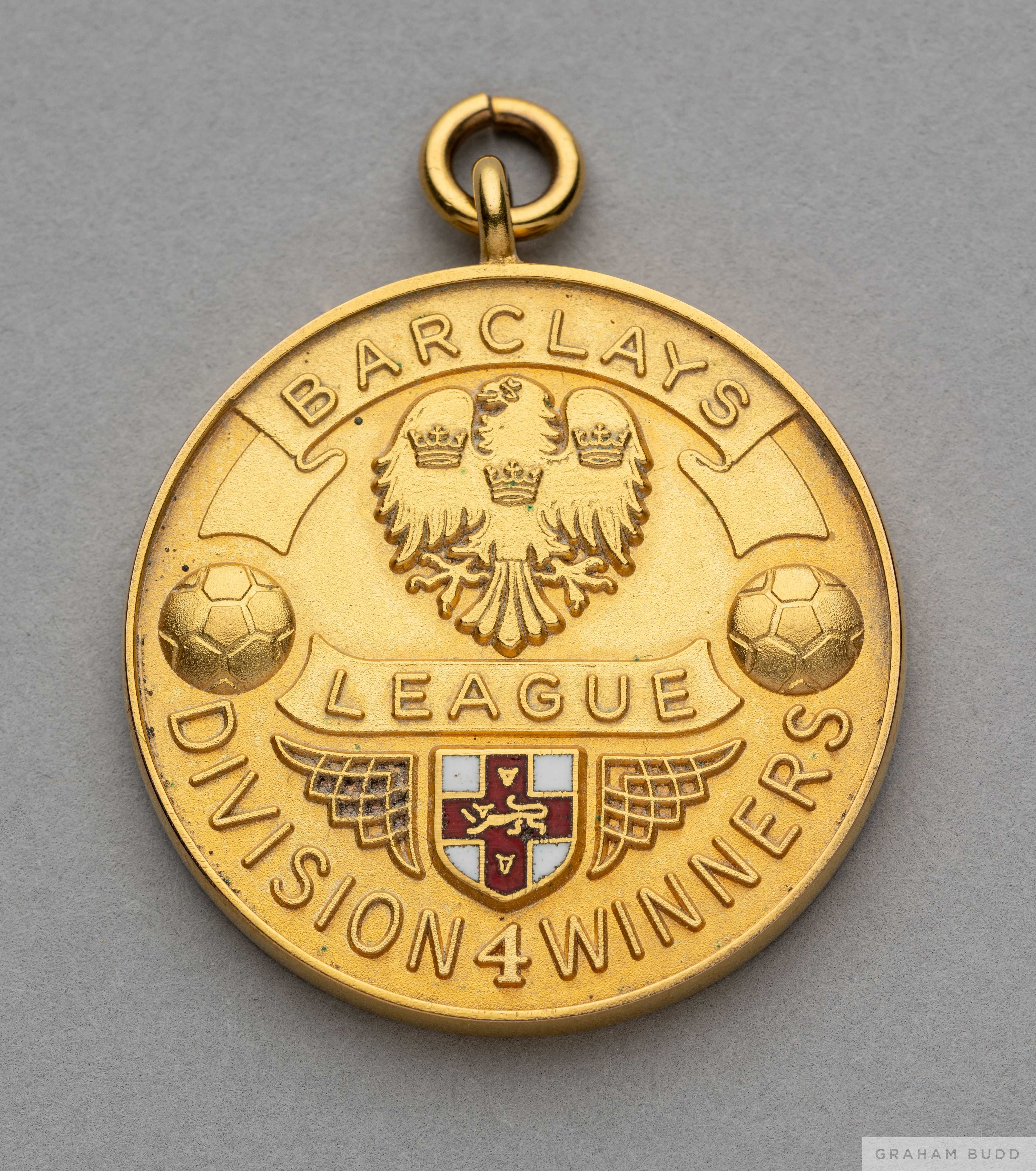 9ct gold and enamel Barclays Division 4 Winners medal, 1988-89 the obverse inscribed BARCLAYS LEAGUE DIVISION 4 WINNERS, the reverse inscribed SEASON