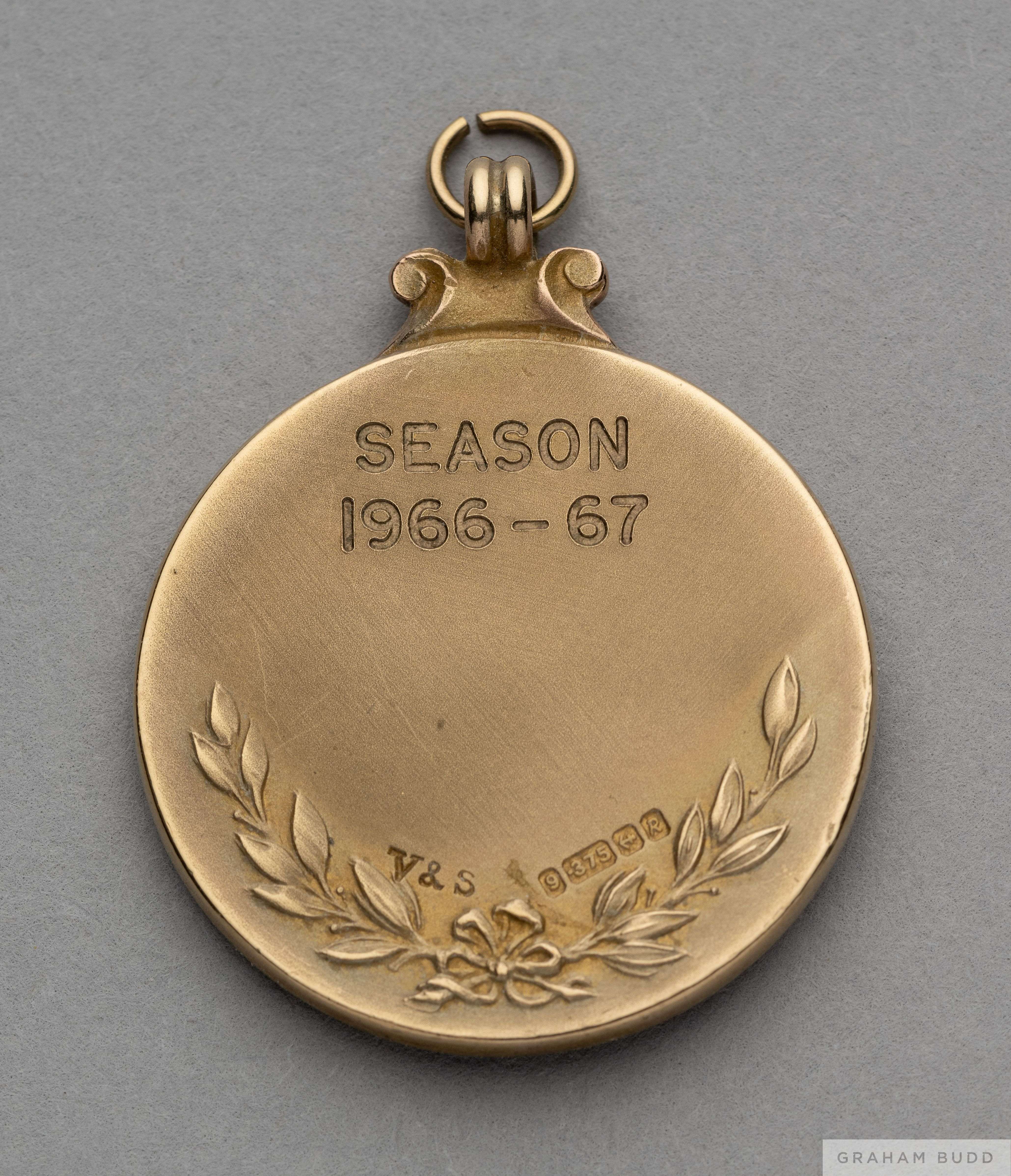 9ct gold 1966-67 Division 2 League Championship Winners medal the obverse inscribed THE FOOTBALL LEAGUE, CHAMPIONS DIVISION 2, the reverse inscribed