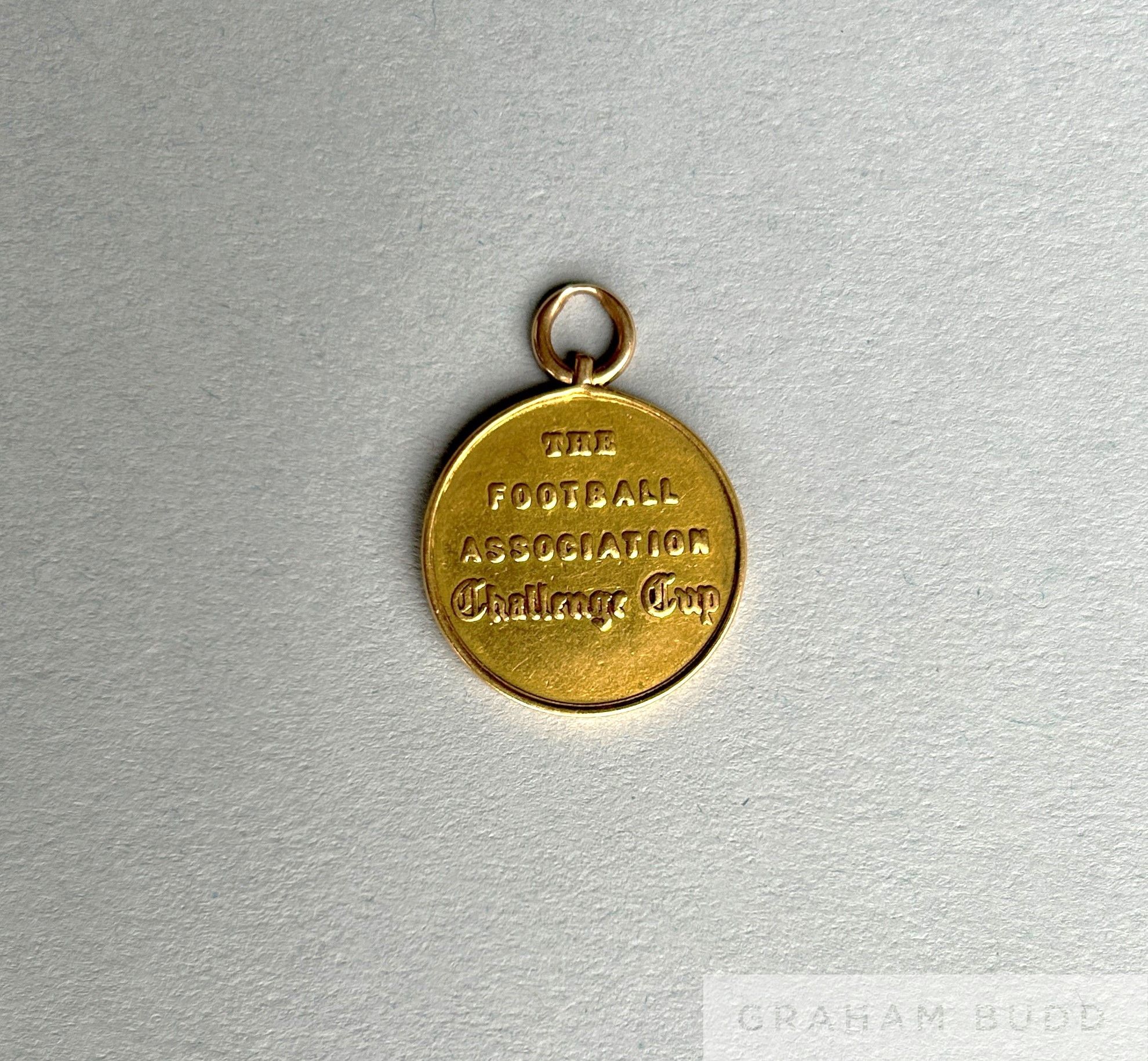 A rare late Victorian gold F.A. Cup winner's medal the obverse designed with a football in raised relief flanked by laurel, the reverse inscribed TH