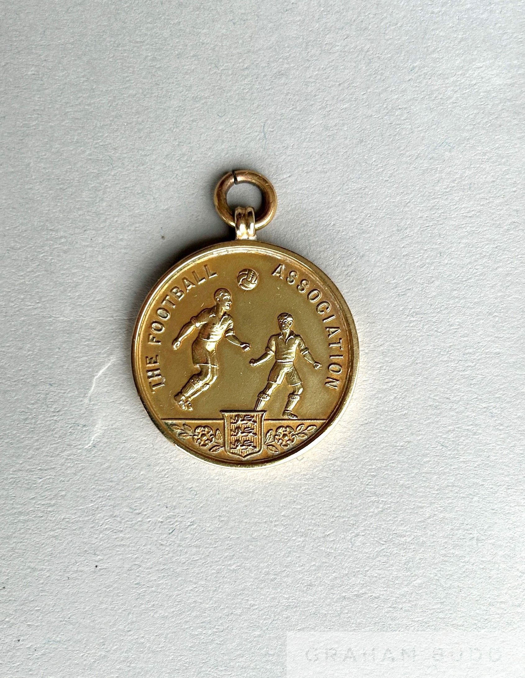 Len Chalmers 9ct gold Leicester City v. Tottenham Hotspur 1961 F.A.Cup Runners-up medal the obverse inscribed THE FOOTBALL ASSOCIATION, the reverse inscribed THE FOOTBALL ASSOCIATION CHALLENGE CUP RUNNERS-UP, LEN CHALMERS, Leicester City, 1961 with ring suspension in original case, 23grms