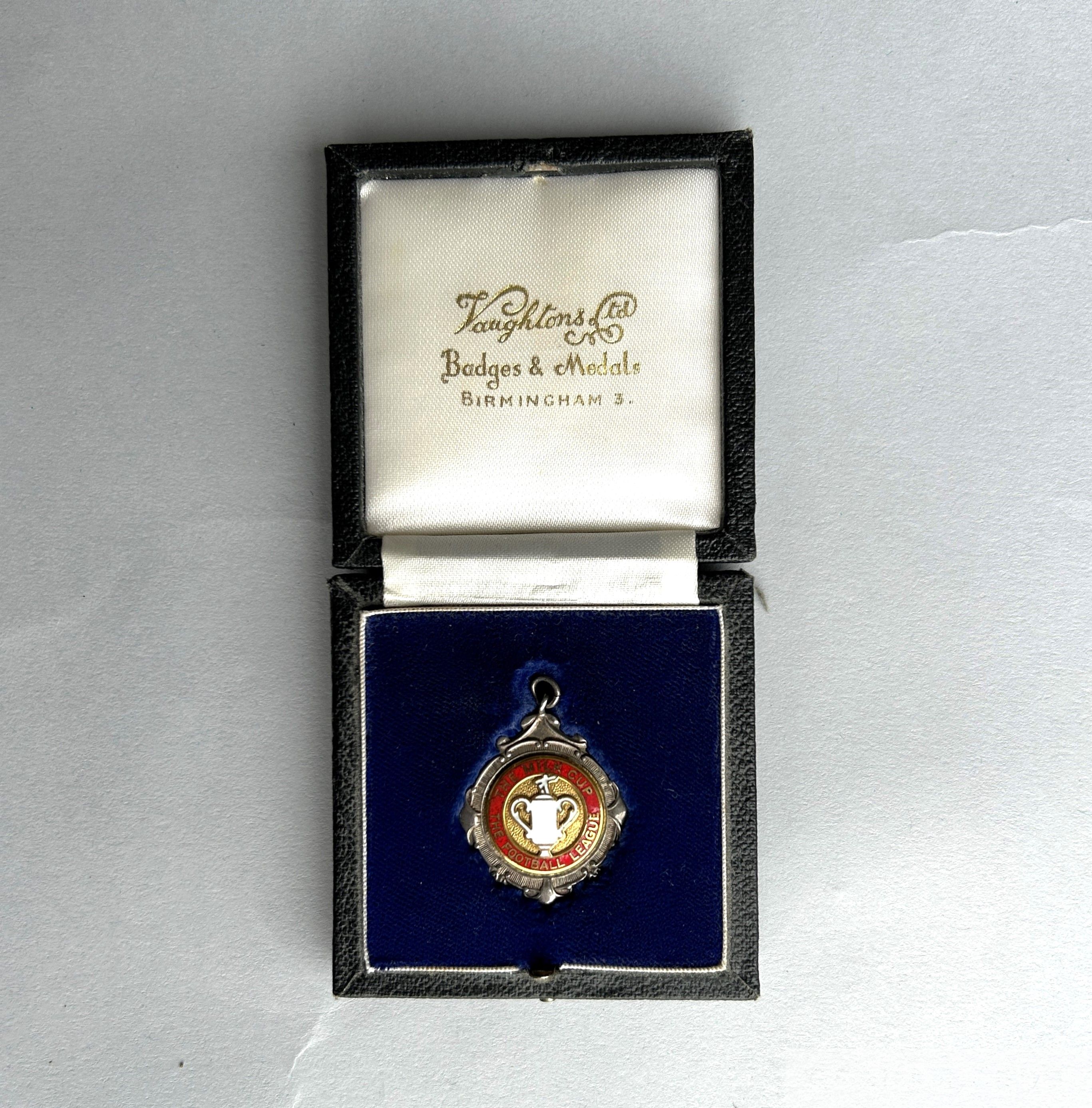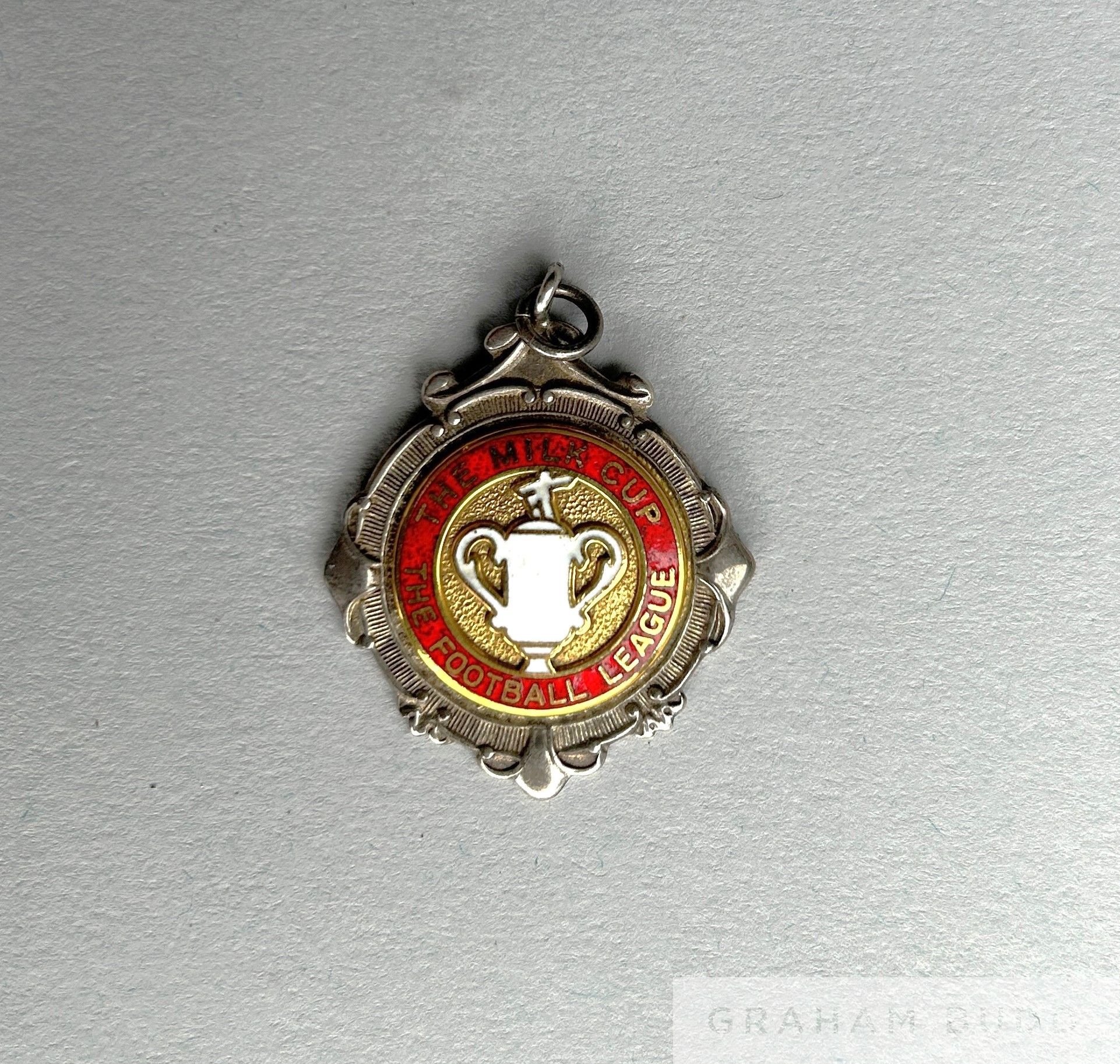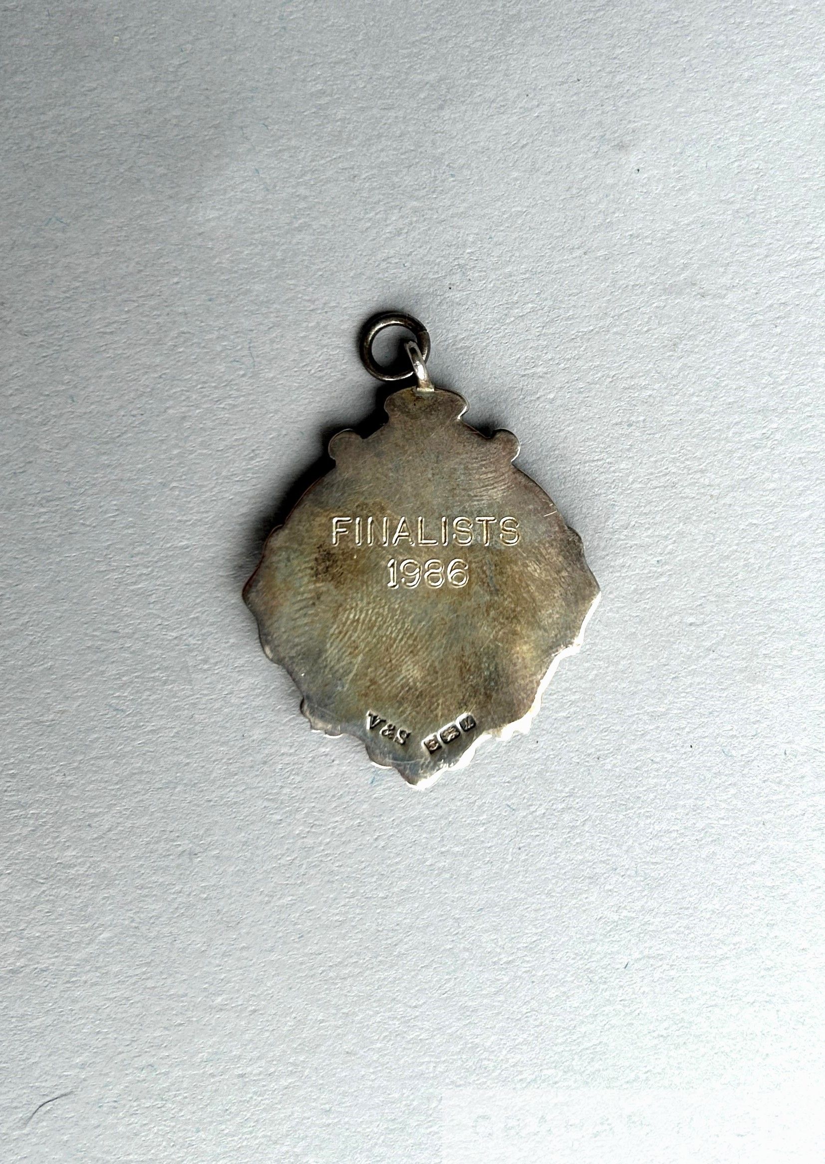 Silver and enamel Milk Cup Finalist medal, 1986 the obverse inscribed THE MILK CUP, THE FOOTBALL LEAGUE, the reverse inscribed FINALIST 1986 with rin