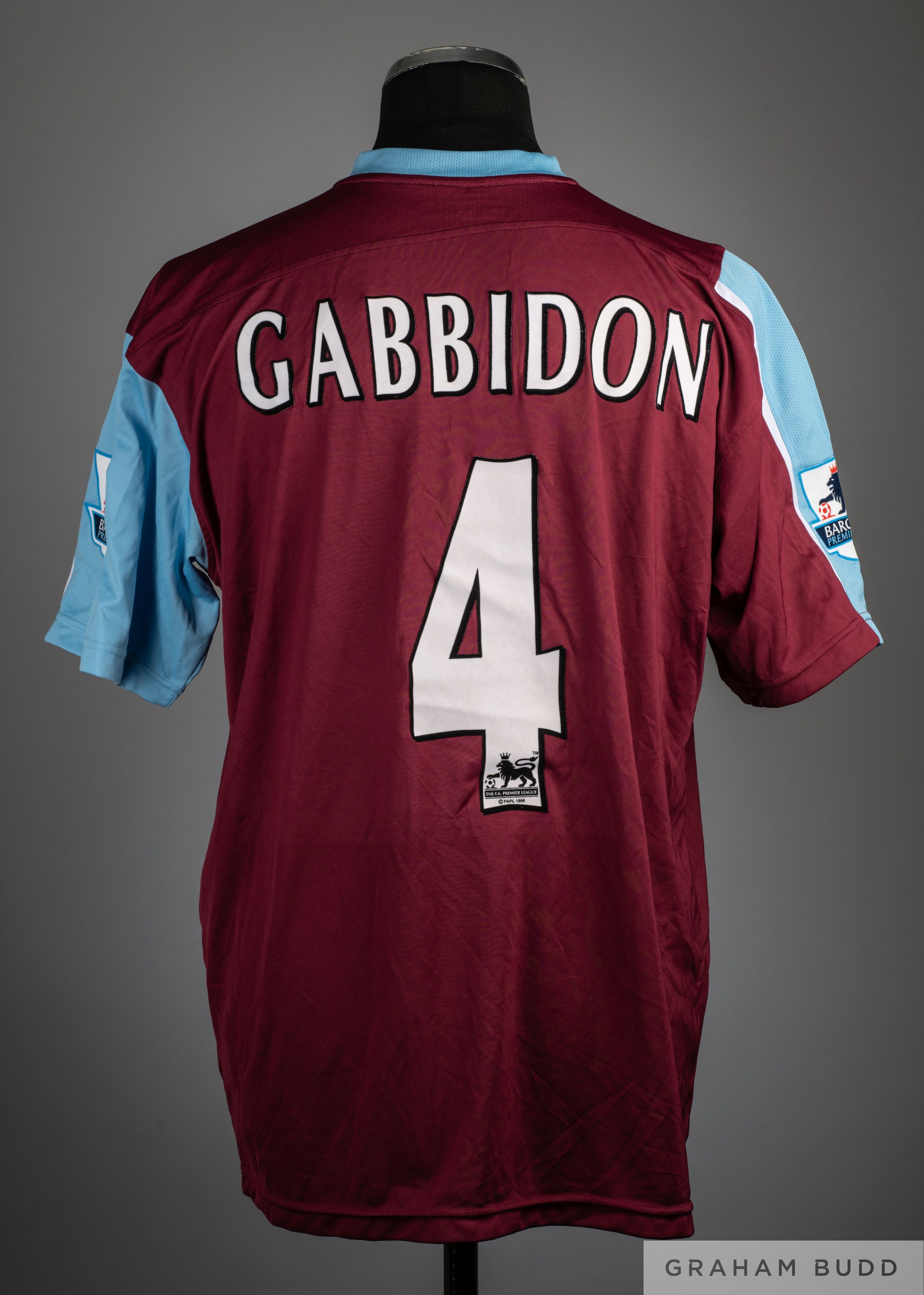 Danny Gabbidon claret and blue No.4 West Ham United short-sleeved shirt, 2005-07, Reebok, L, with crew-neck collar and printed badge, the reverse lettered GABBIDON, the sleeves with Barclays Premiership flashes