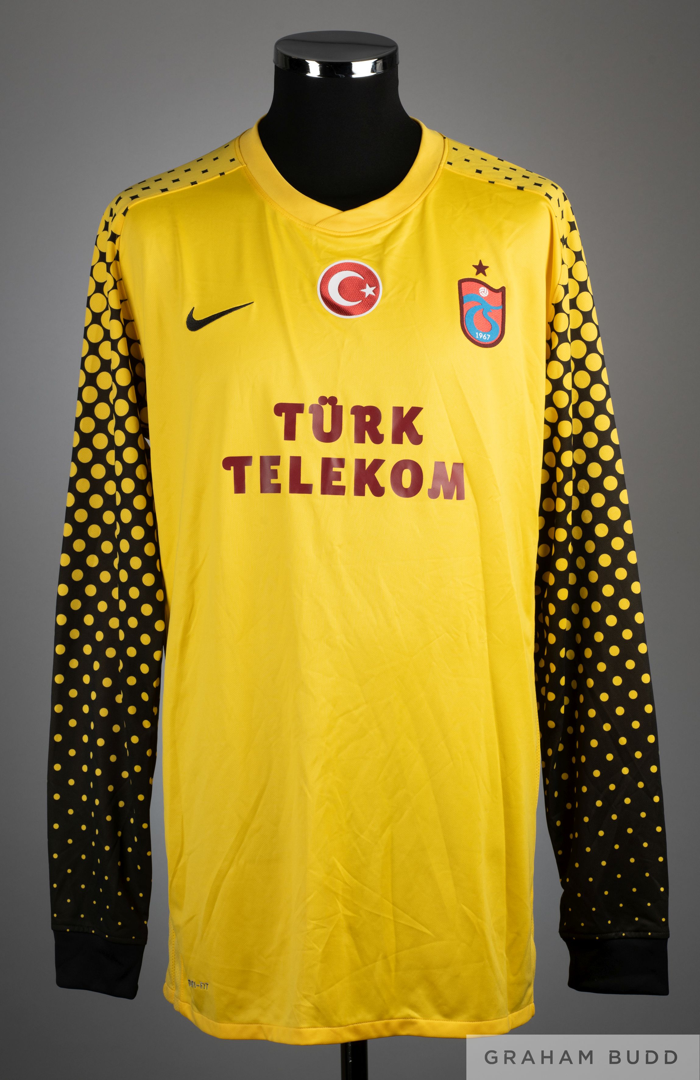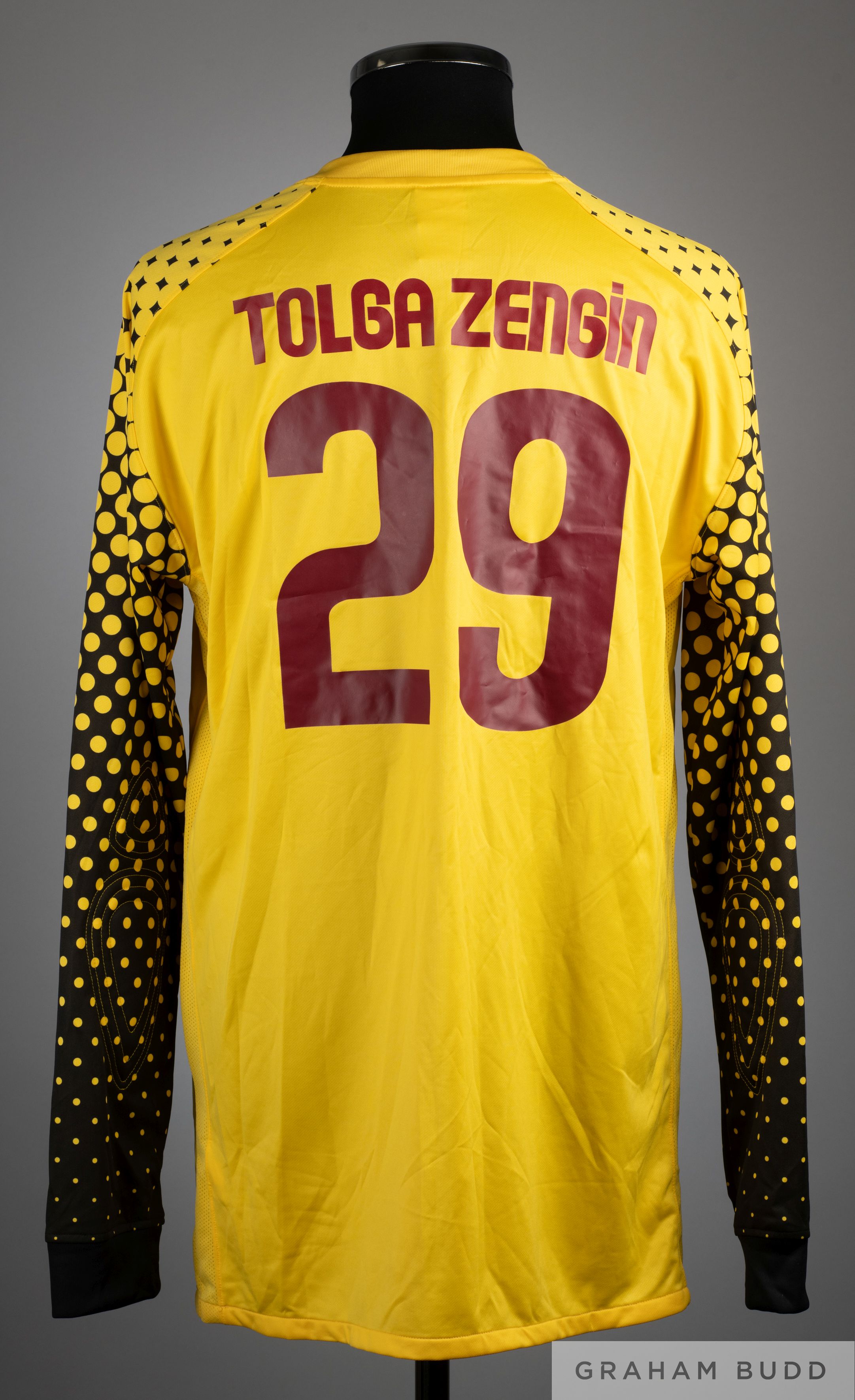 Tolgar Zengin yellow No.29 Turkey long sleeved goalkeeper shirt, 2008-09, Nike size 46/48, crew neck with embroidered cloth badges, reverse lettered TOLGA ZENGIN and no sleeve flashes.