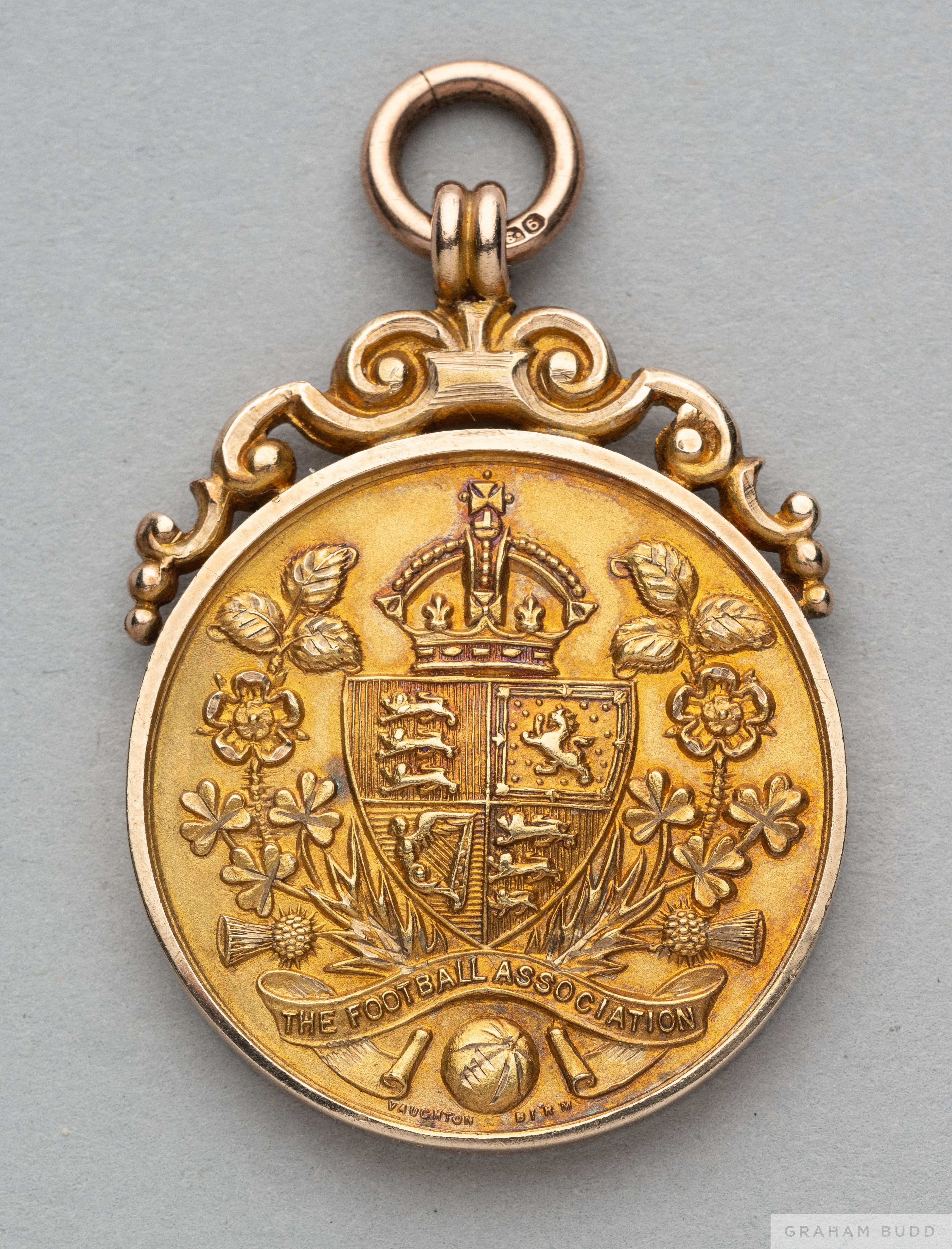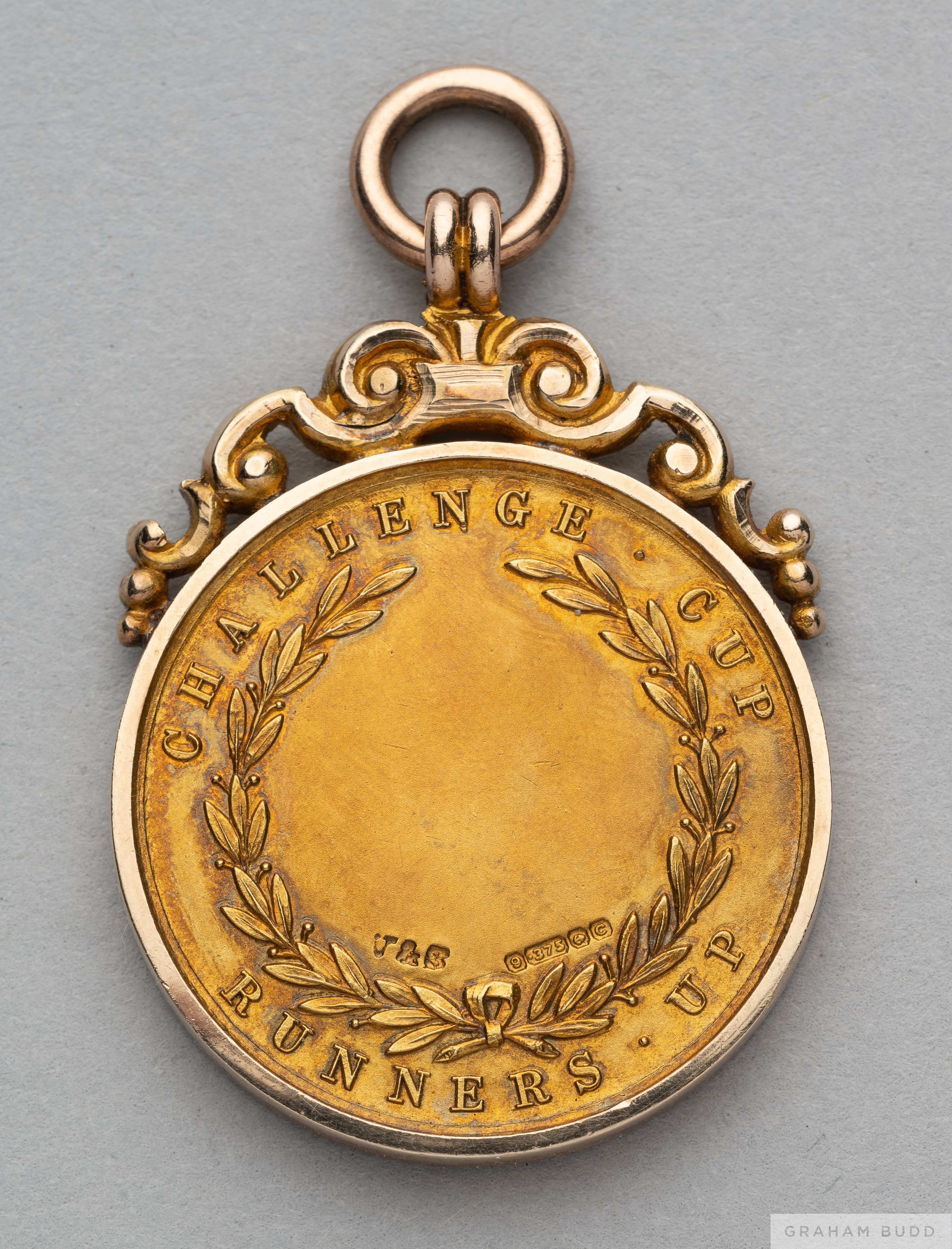 Tom Wilson 9ct gold 1927-28 F.A.Cup Runners-Up medal the obverse inscribed THE FOOTBALL ASSOCIATION, the reverse inscribed CHALLENGE CUP RUNNERS UP, with ring suspension in original case, 22grms In the 1928 F.A. Cup final played on 21st April at Wembley, Blackburn Rovers defeated Huddersfield Town 3-1. The following lots 902 to 943 relate to the career of Huddersfield Town Legend and England International Tom Wilson. See player bio at foot of description for Lot 902 PROVENANCE: Tom Wilson thence by family descent