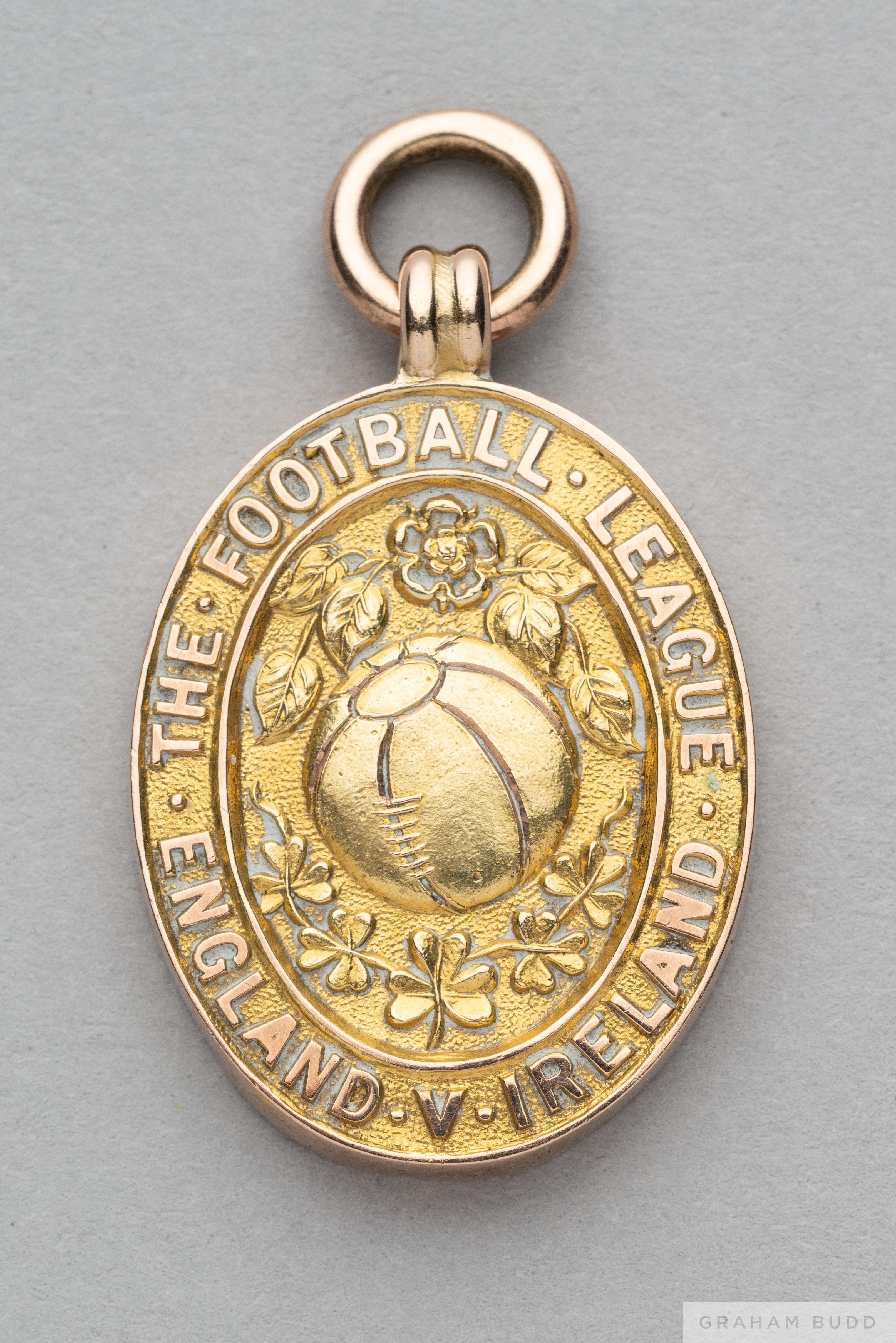 Tom Wilson 9ct gold 1924 Football League Representative Medal the obverse inscribed THE FOOTBALL LEAGUE ENGLAND V IRELAND, the reverse inscribed BELF