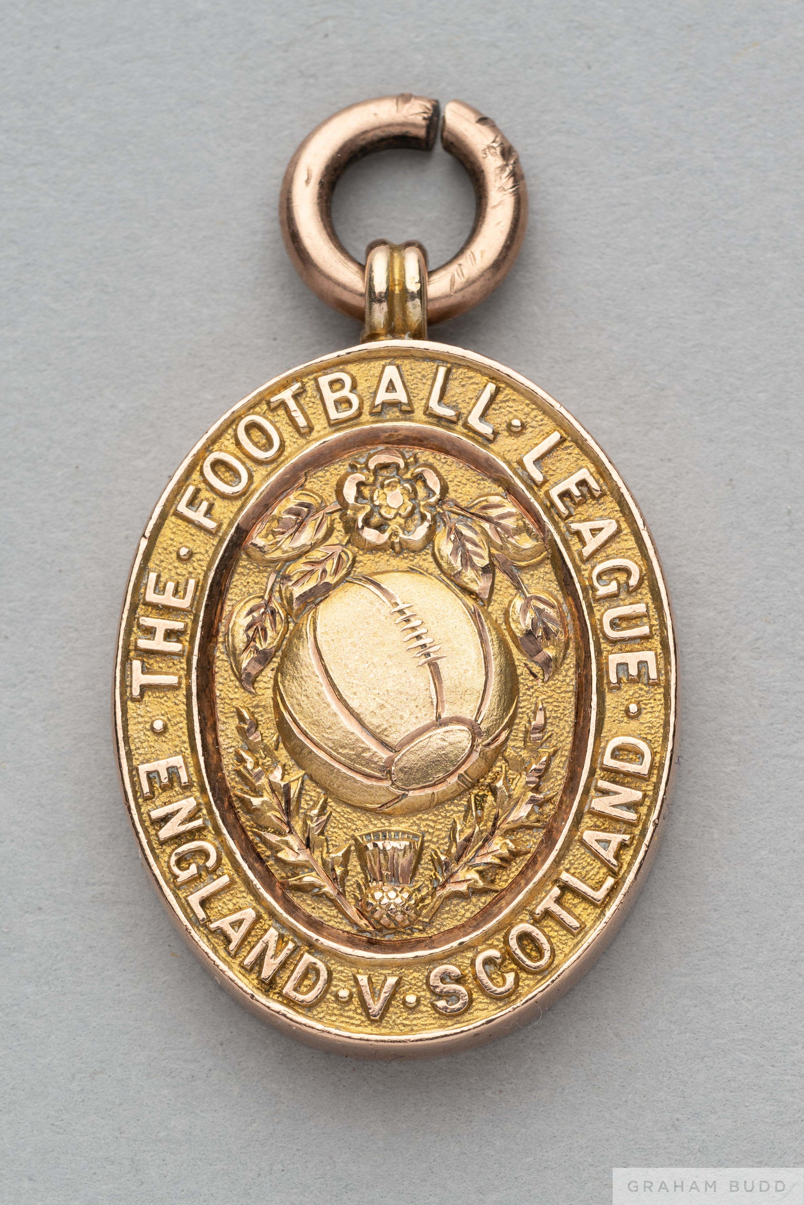 Tom Wilson 9ct gold 1925 Football League Representative Medal the obverse inscribed THE FOOTBALL LEAGUE ENGLAND V SCOTLAND, the reverse inscribed GOO