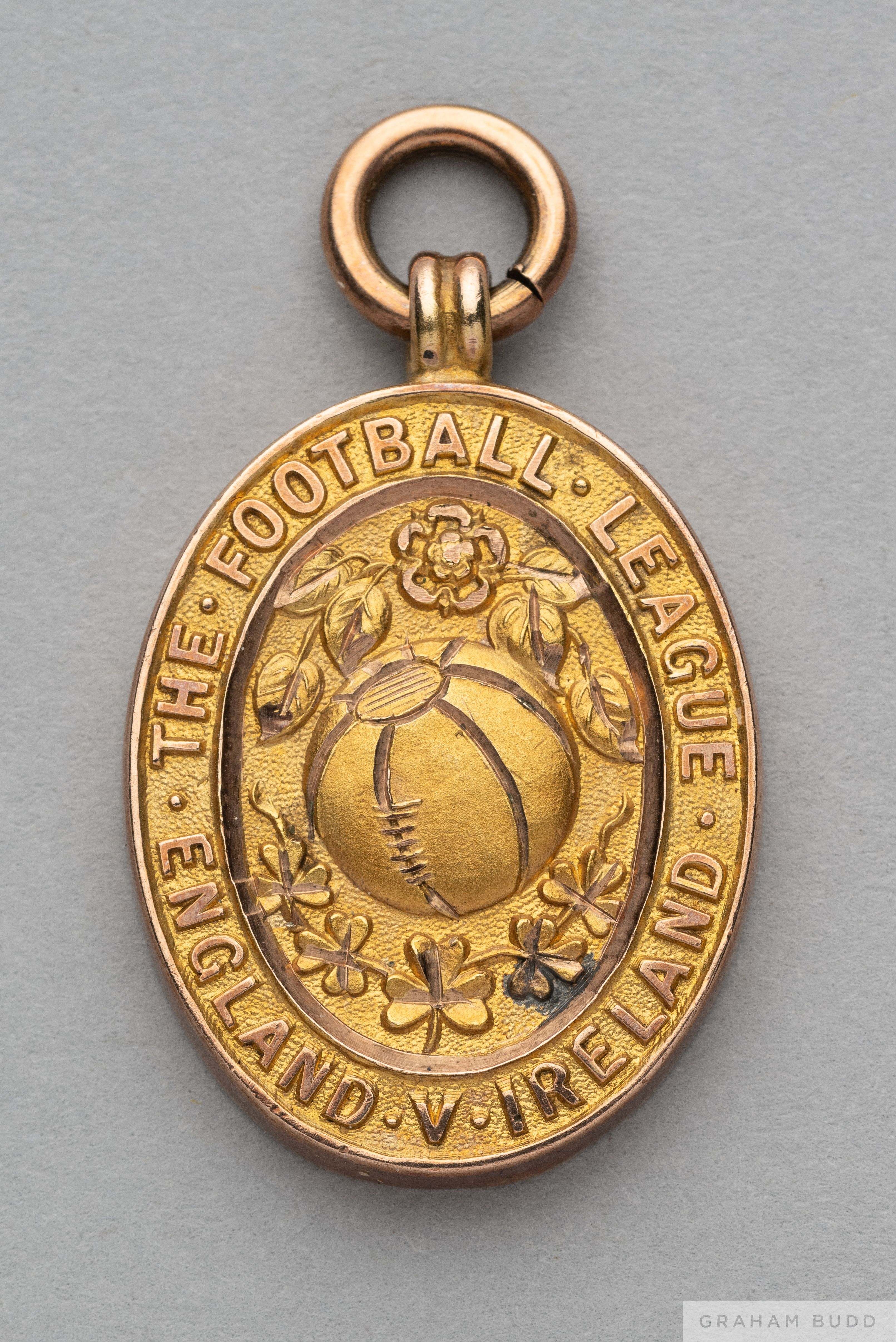 Tom Wilson 9ct gold 1925 Football League Representative Medal the obverse inscribed THE FOOTBALL LEAGUE ENGLAND V IRELAND, the reverse inscribed ANFI
