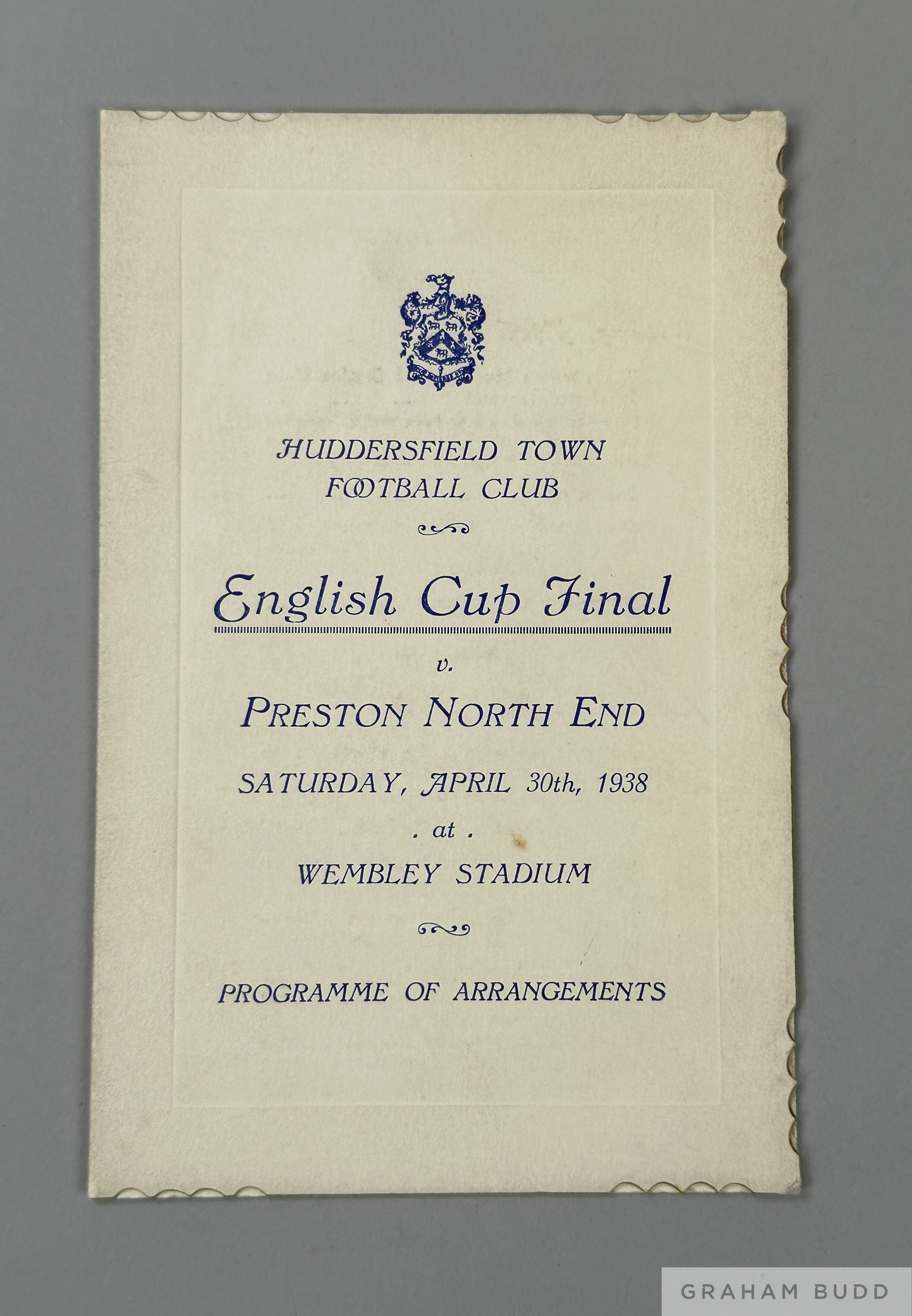 Tom Wilson 1938 Huddersfield Town v. Preston North End F.A.Cup final itinerary 30th April 1938 The following lots 902 to 943 relate to the career of Huddersfield Town Legend and England International Tom Wilson. See player bio at foot of description for Lot 902 PROVENANCE: Tom Wilson thence by family descent