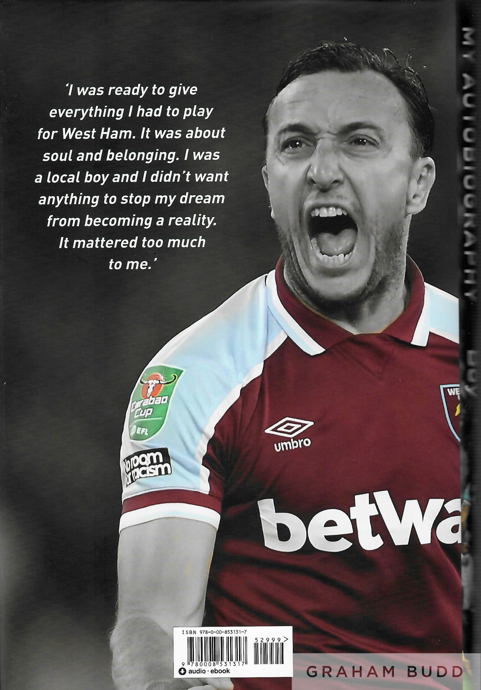 West Ham United: Mark Noble signed collection, includes signed West Ham United 2020/21 shirt, large autograph on front, signed with black sharpie. Size XL. Brand new with tags; also included is 2022 book – Mark Noble – Bolyen Boy – My Autobiography. Signed by Mark Noble on the front /title page. Comes with Certificate of Authenticity and photo proof of signing, (3)