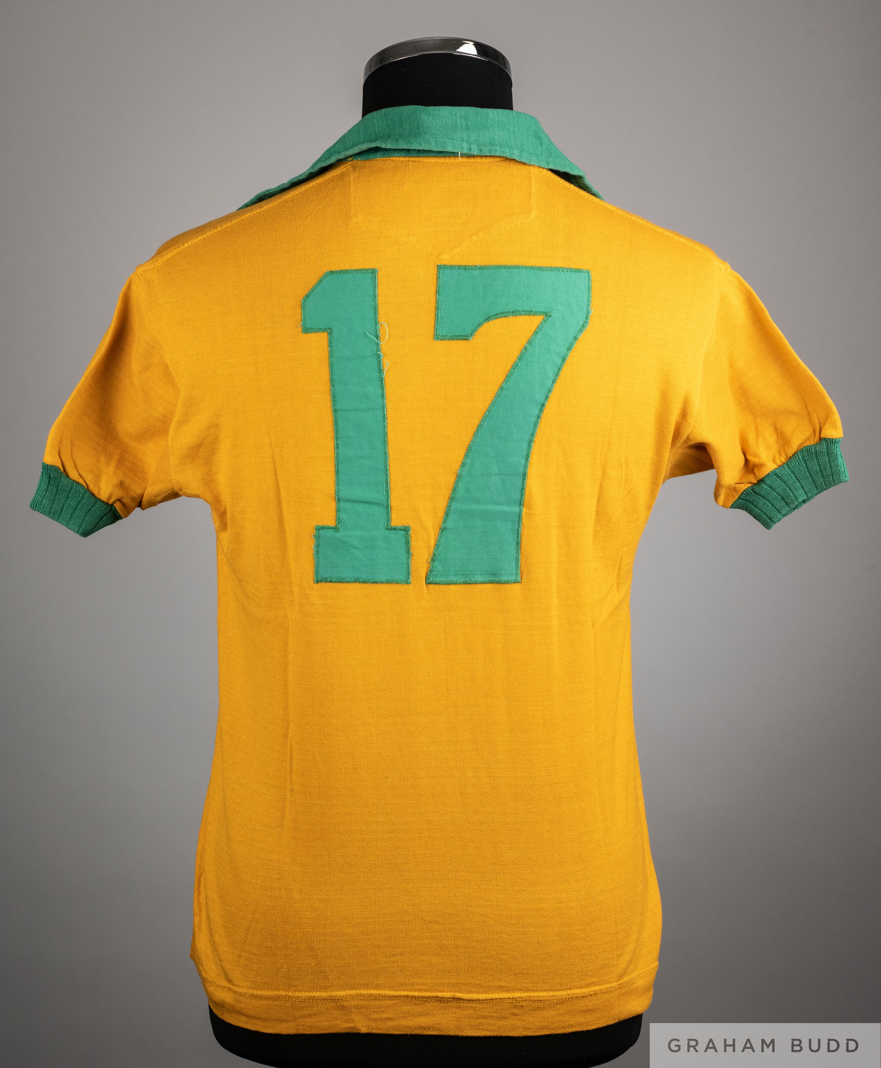Jairzinho yellow and green No.17 Brazil v. Argentina match worn short-sleeved shirt with v-neck collar and embroidered cloth badge inscribed CBD The