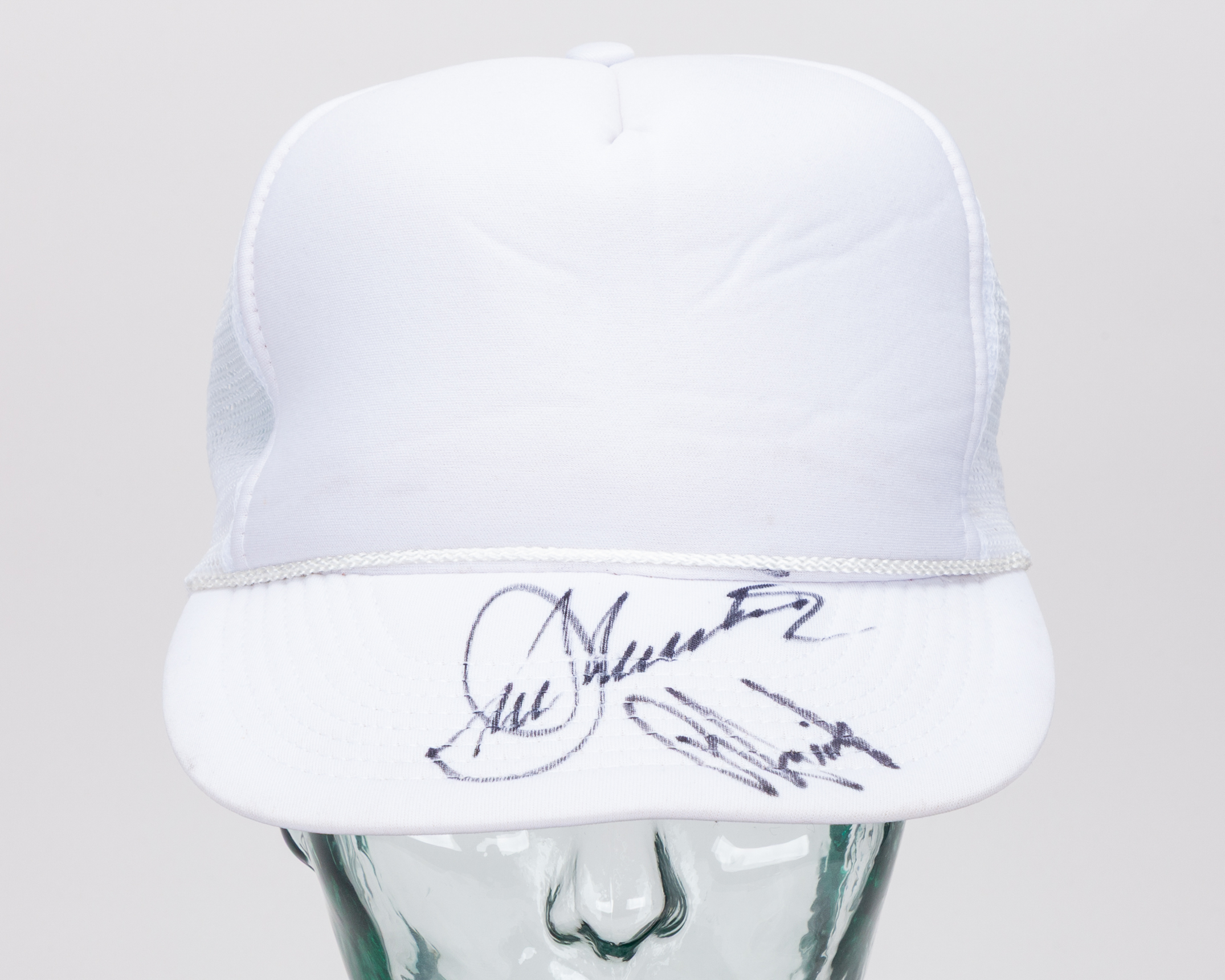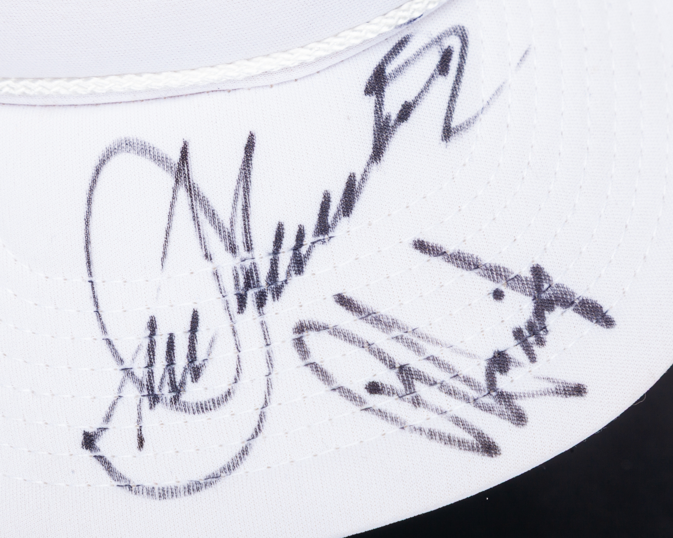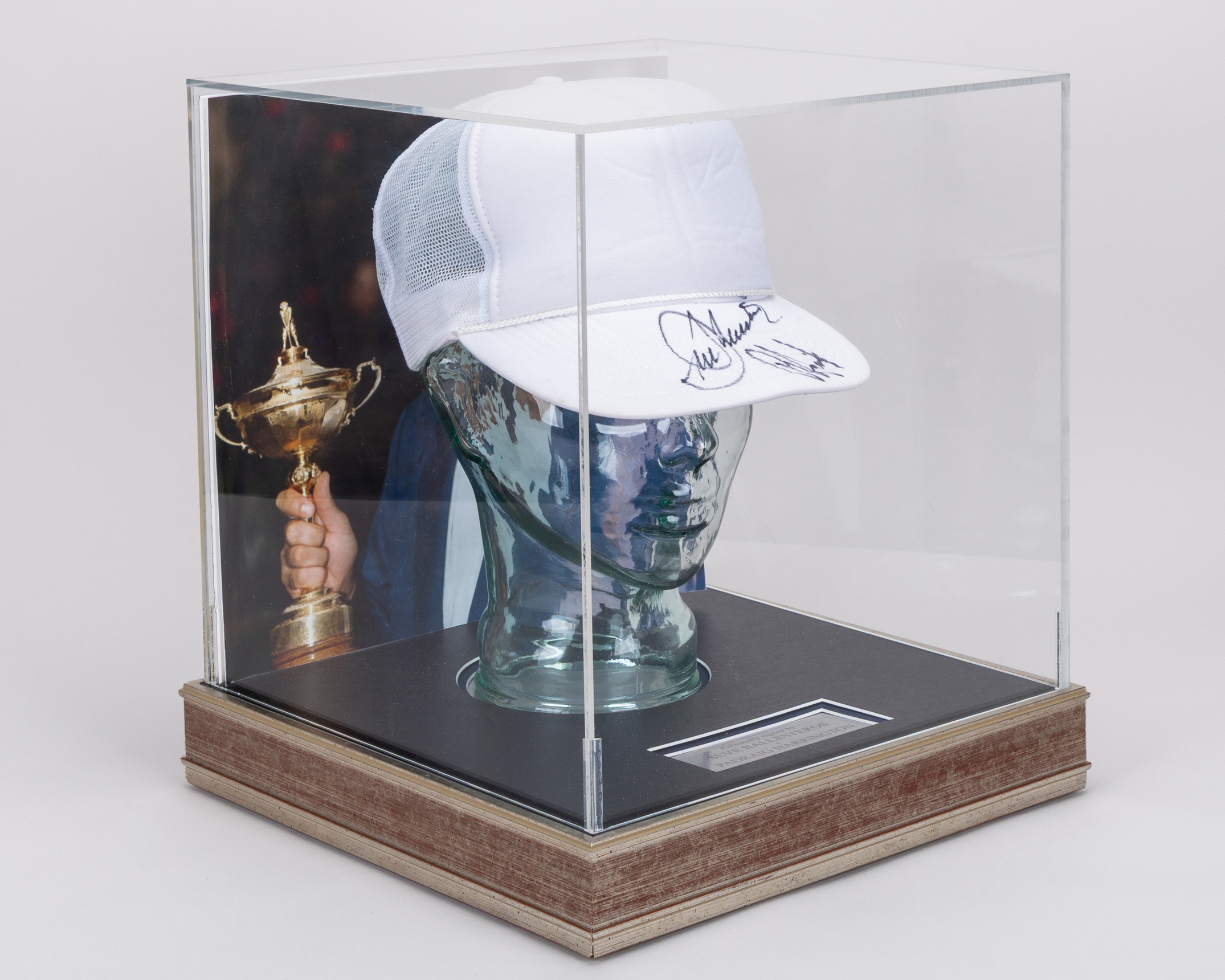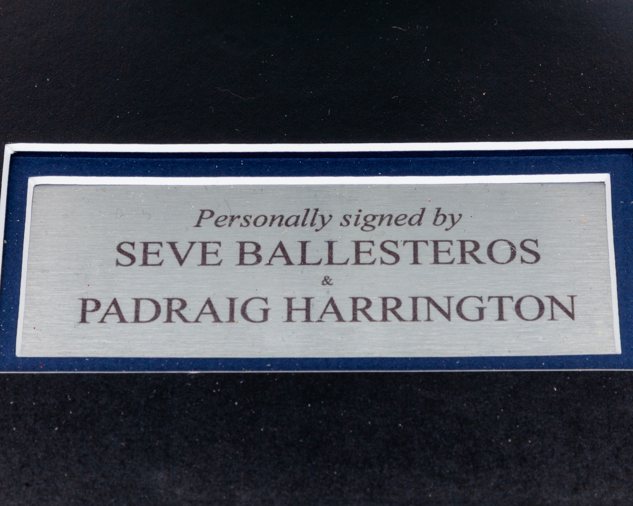 Seve Ballesteros and Padraig Harrington autographed white cap display