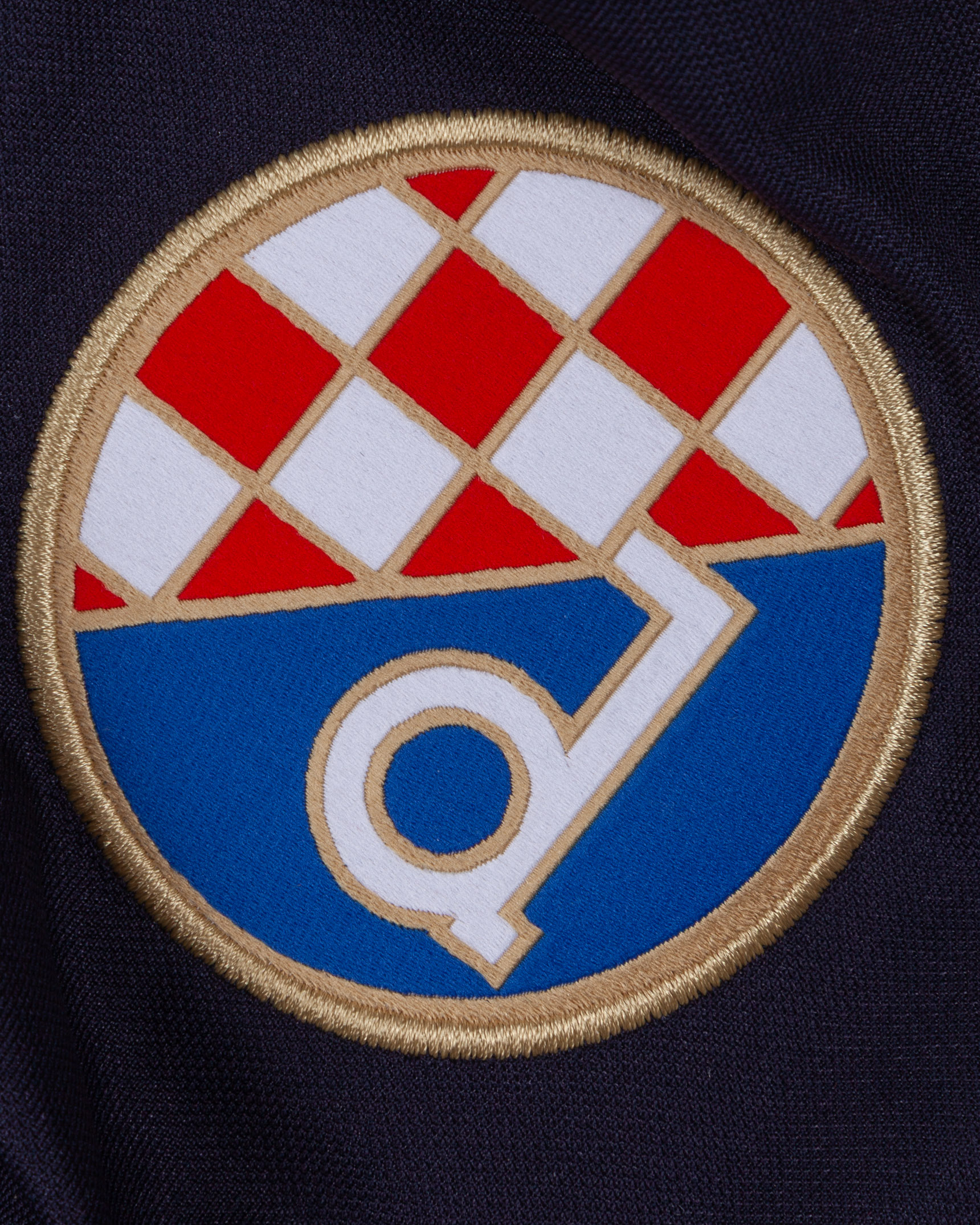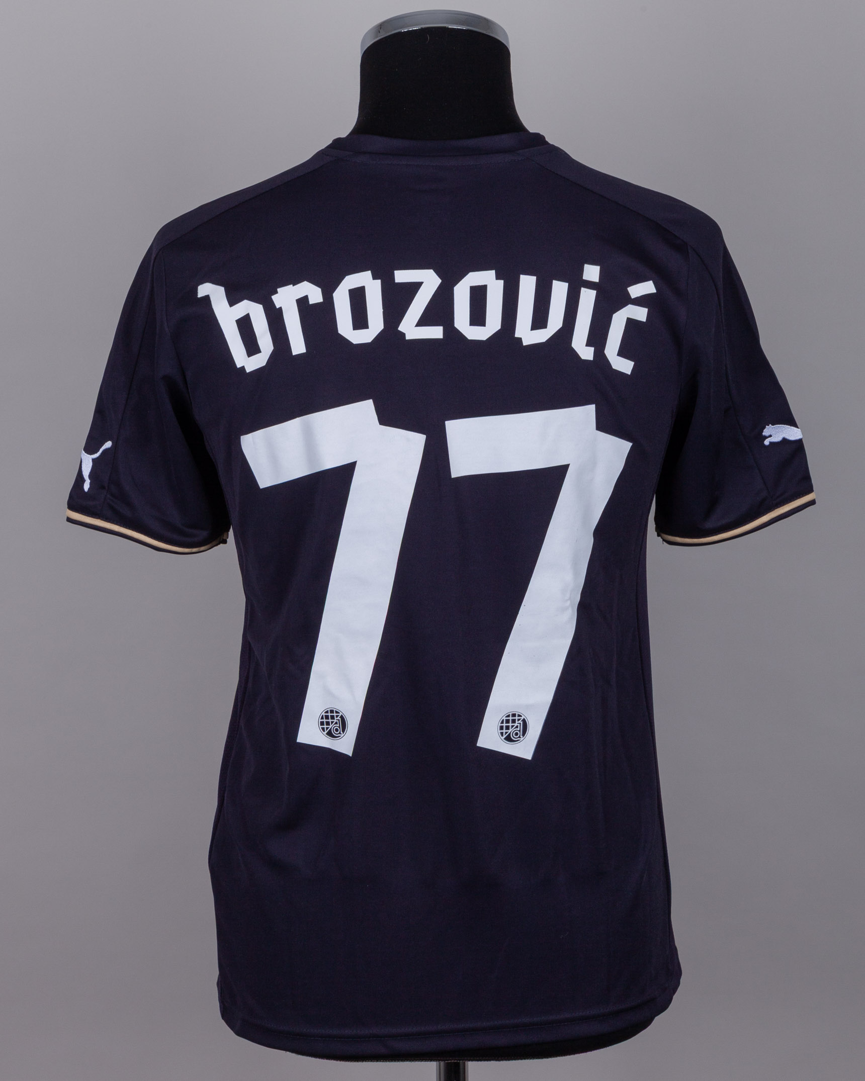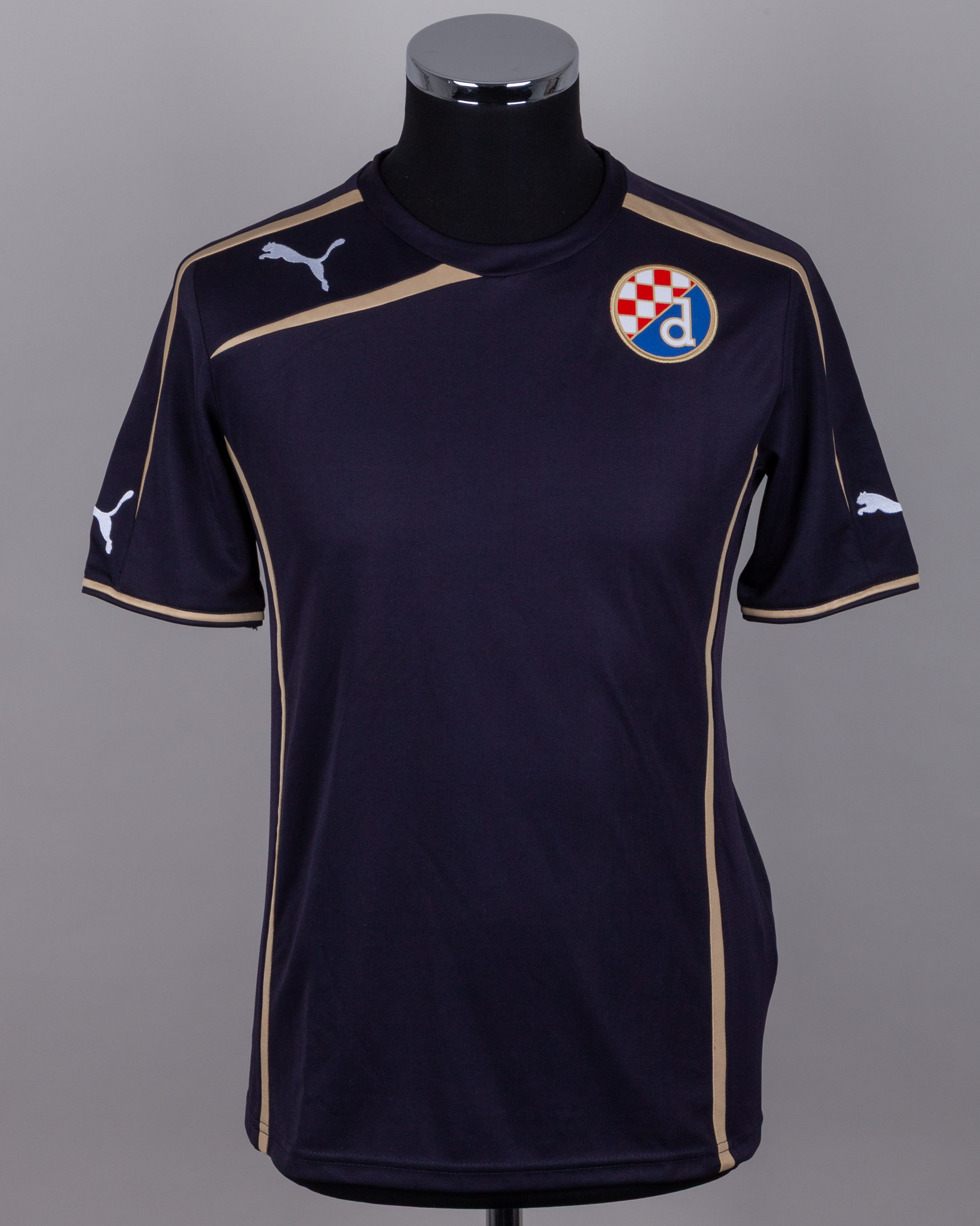 Marcelo Brozovic dark blue No.77 Dinamo Zagreb short-sleeved shirt, 2014-15, Puma, M, with v-neck style collar and embroidered cloth badge, the reverse lettered brozovic