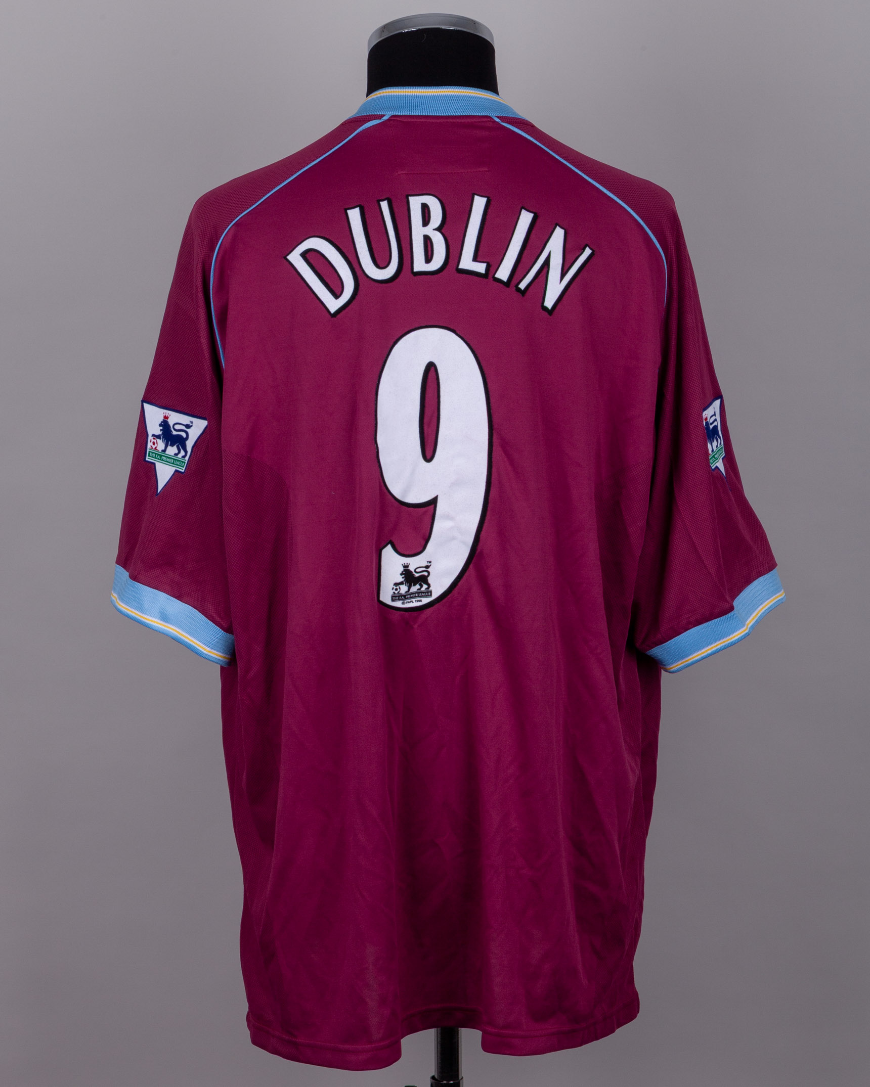 Dion Dublin claret No.9 Aston Villa short-sleeved shirt, 2001-02