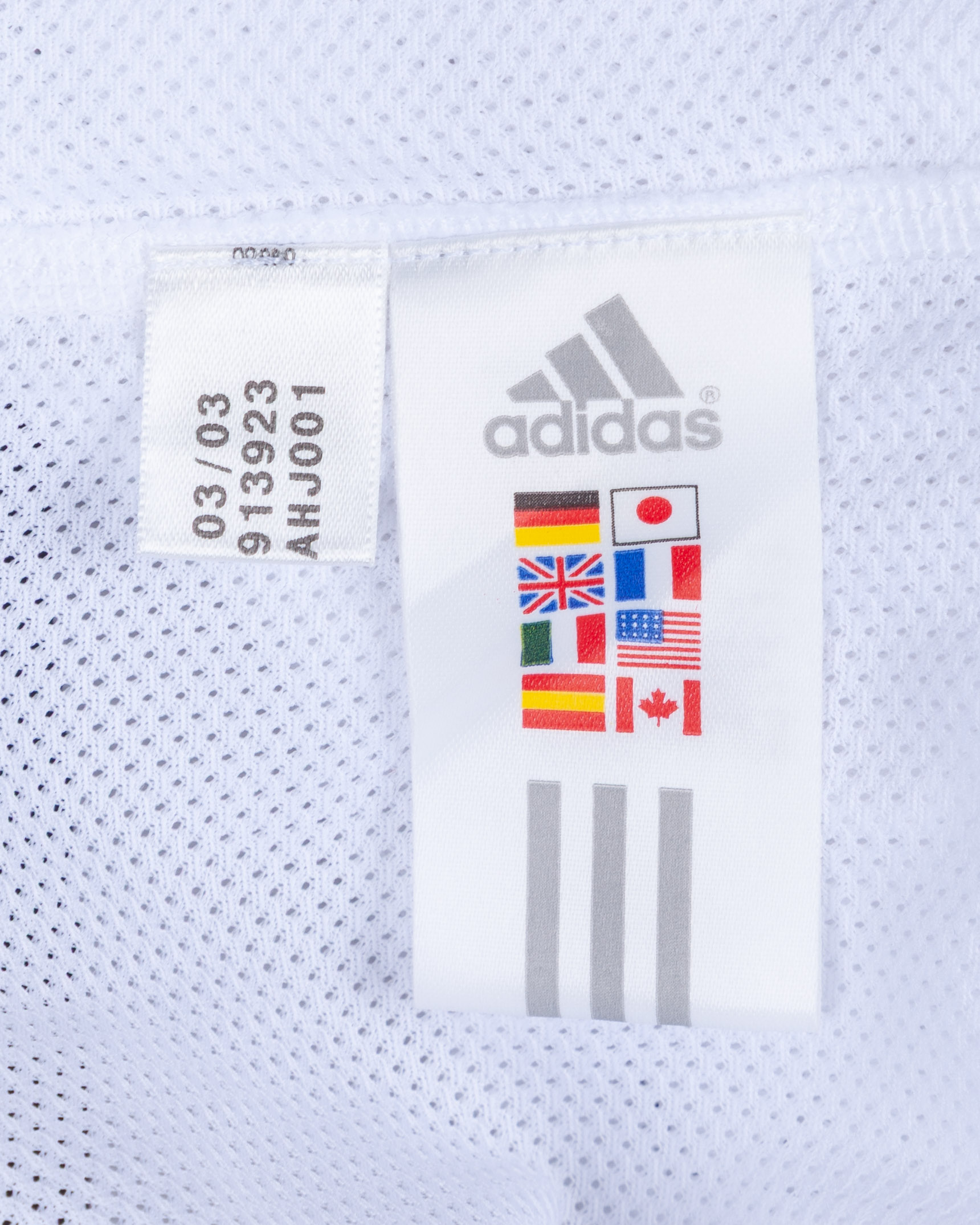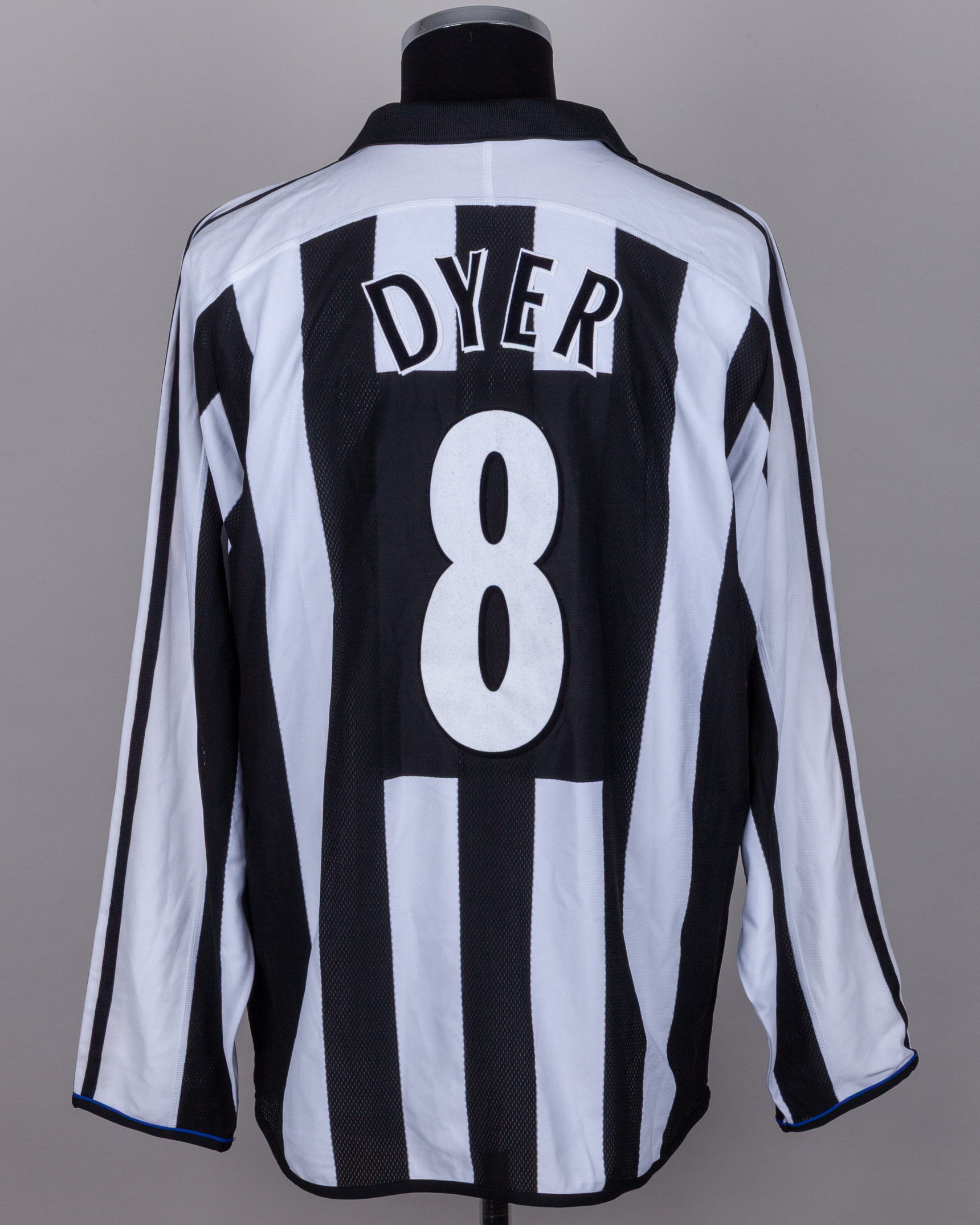 Kieron Dyer black and white No.8 Newcastle United v. Valerenga long-sleeved shirt, 2004, Adidas, XL, with v-neck collar and printed badge, the reverse lettered DYER