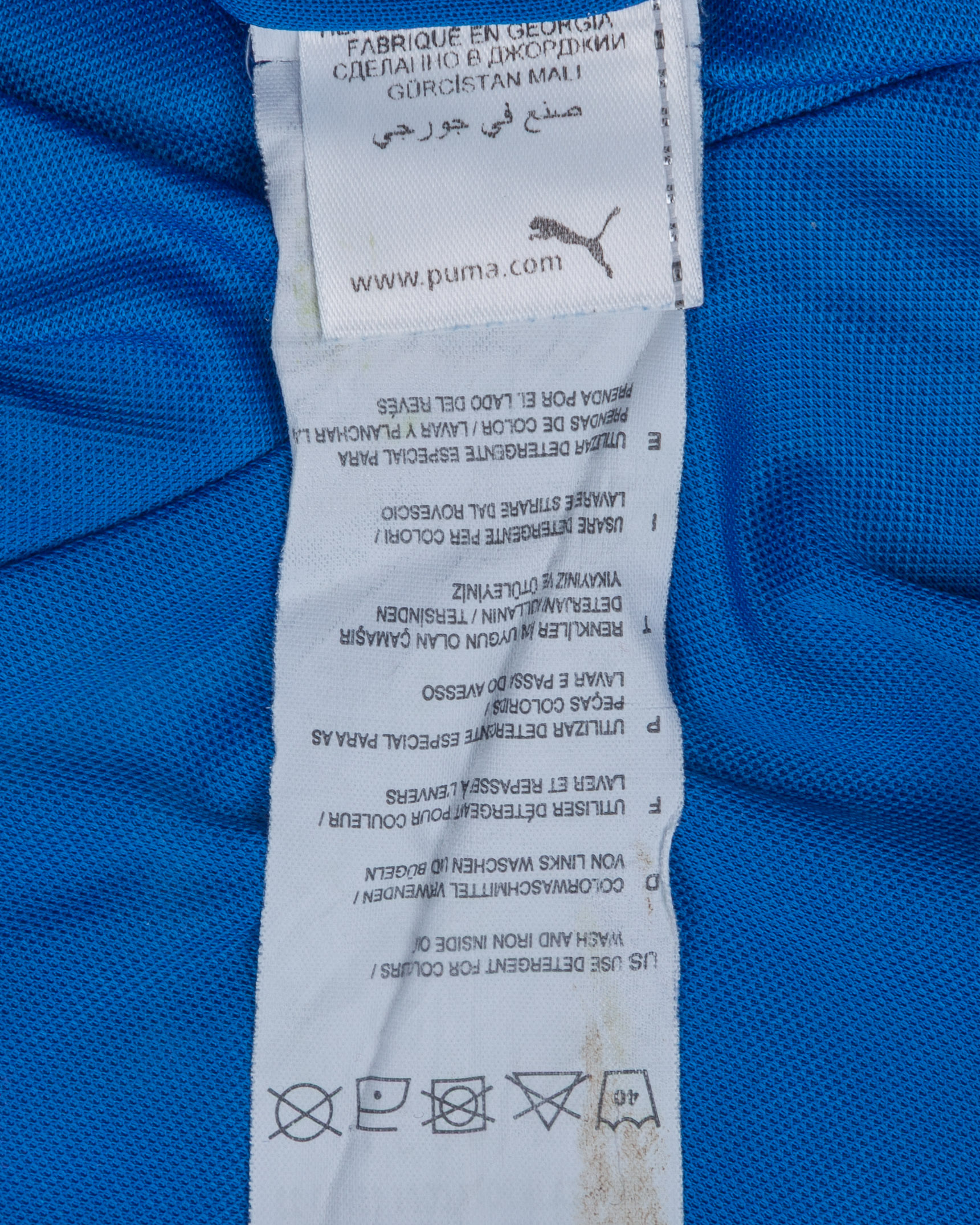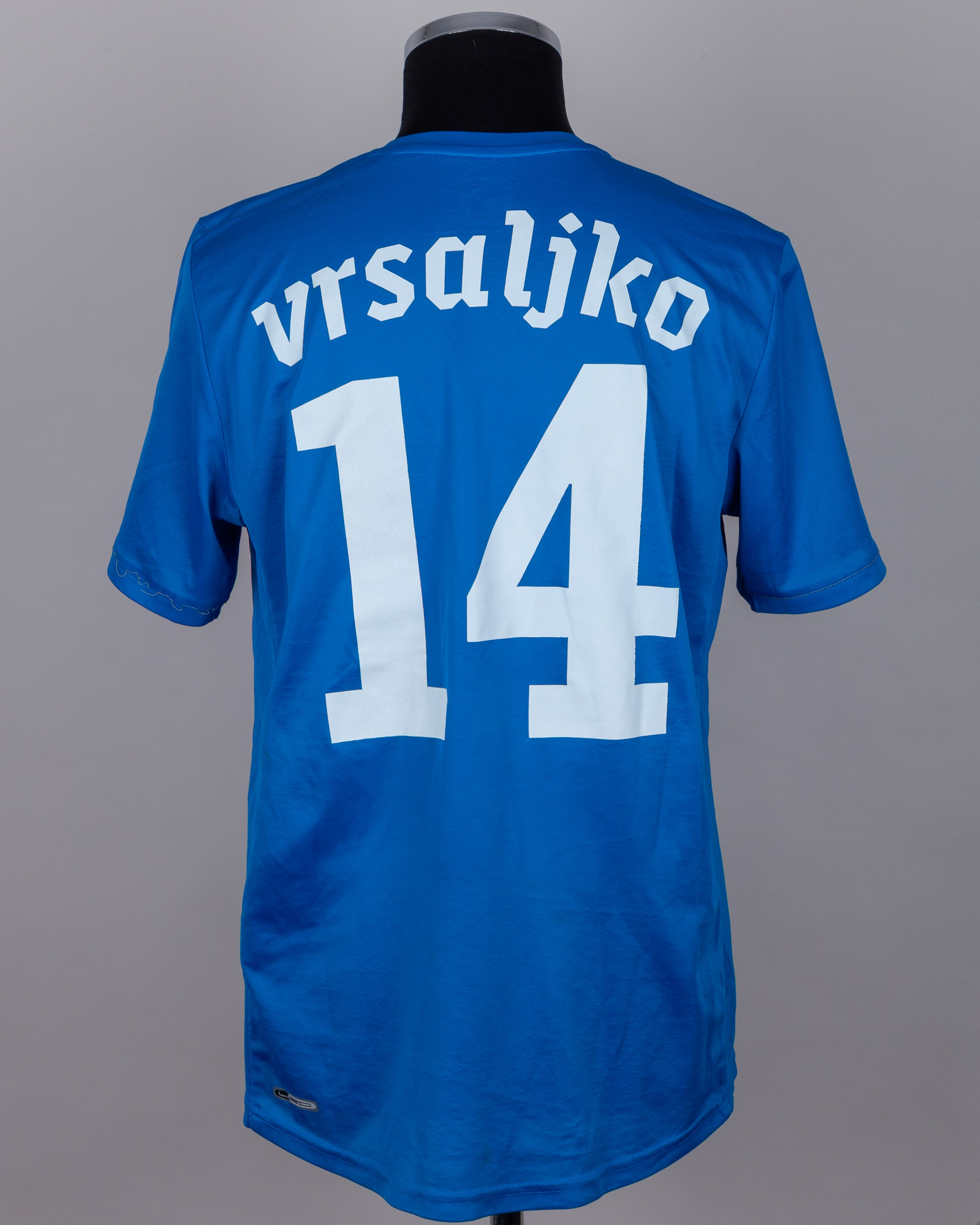 Sime Vrsaljko blue No.14 Dinamo Zagreb short-sleeved shirt, 2011-13, Puma, L, with crew-neck collar and embroidered cloth badge, the reverse lettered vrsaljko