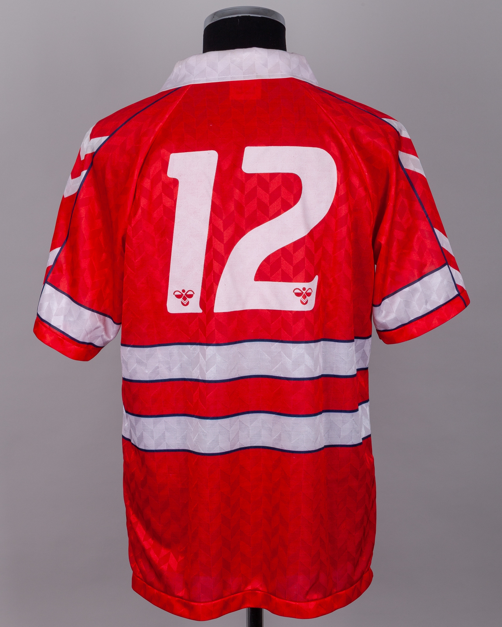 Red and white No.12 Denmark short-sleeved shirt, 1988
