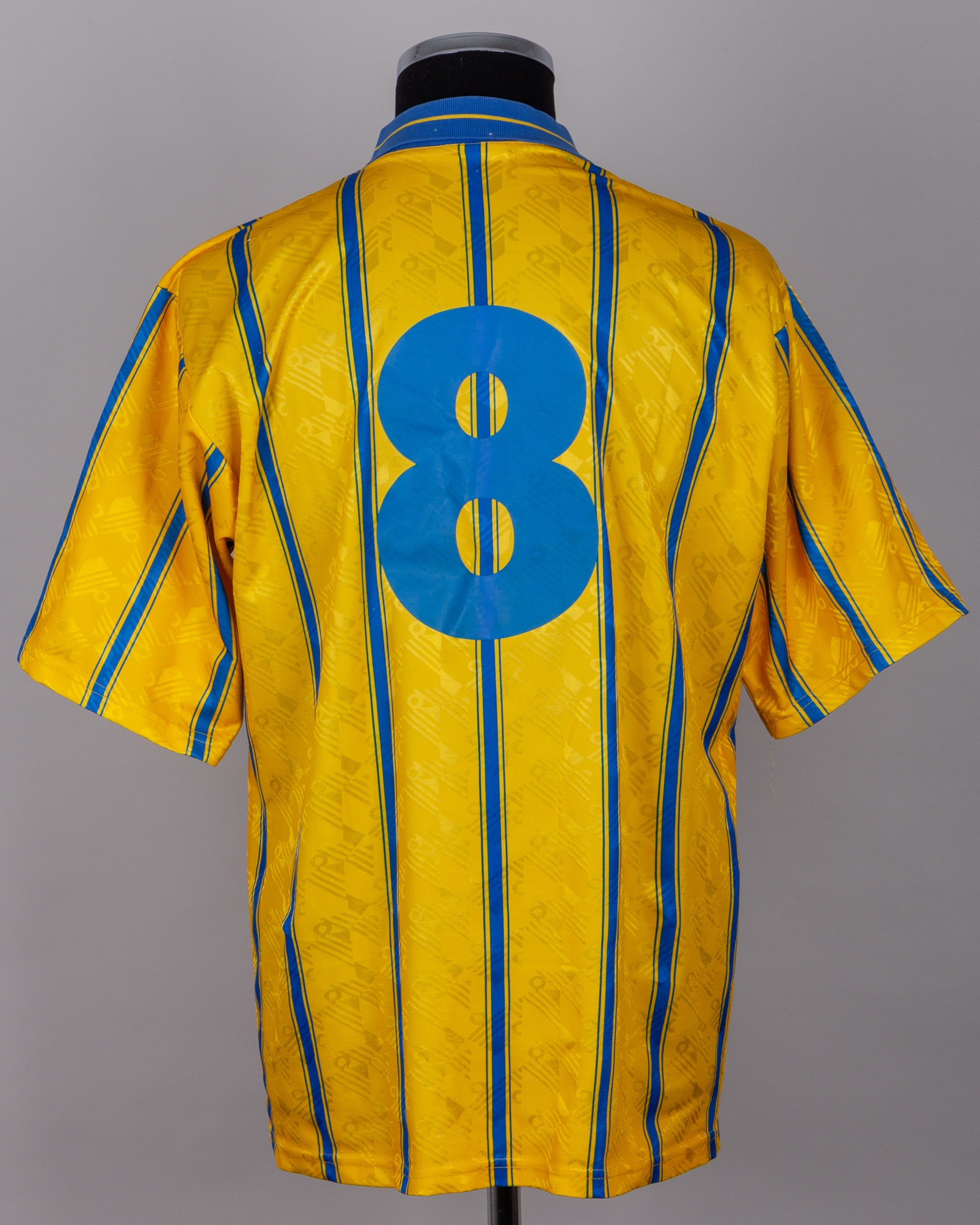 Yellow and blue No.8 Birmingham City short-sleeved shirt, 1993-94