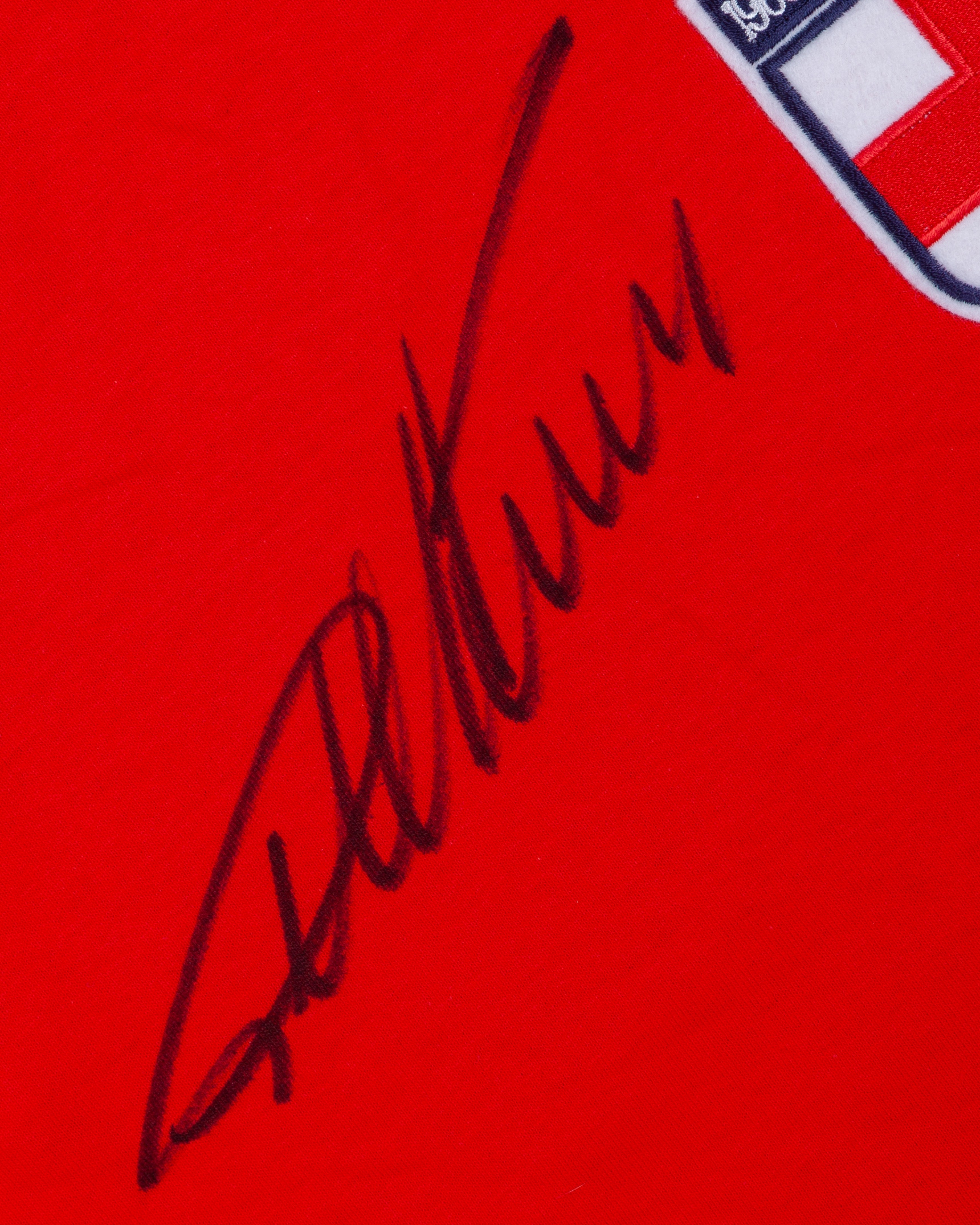 A red Geoff Hurst autographed replica 1966 World Cup Winners long-sleeved shirt