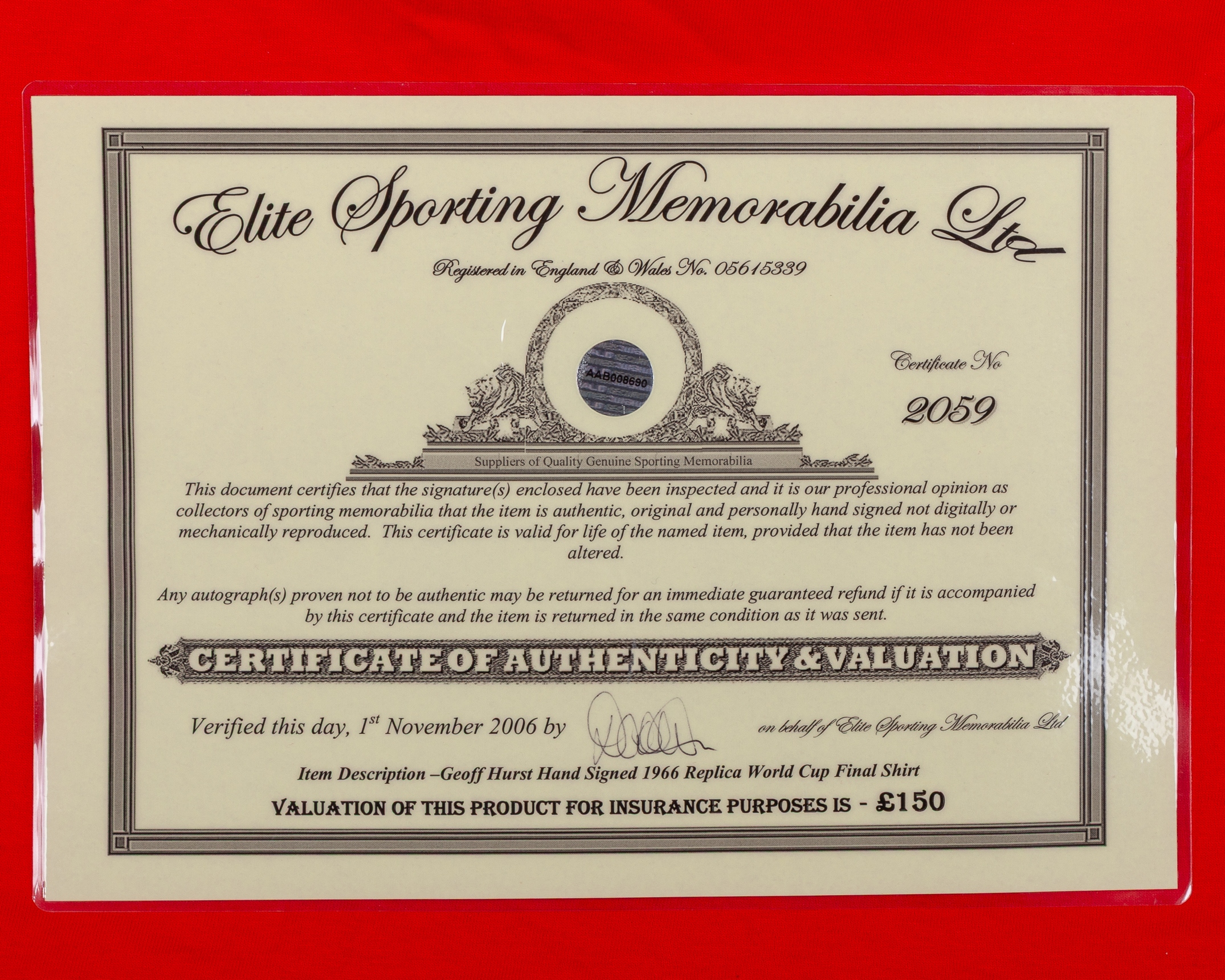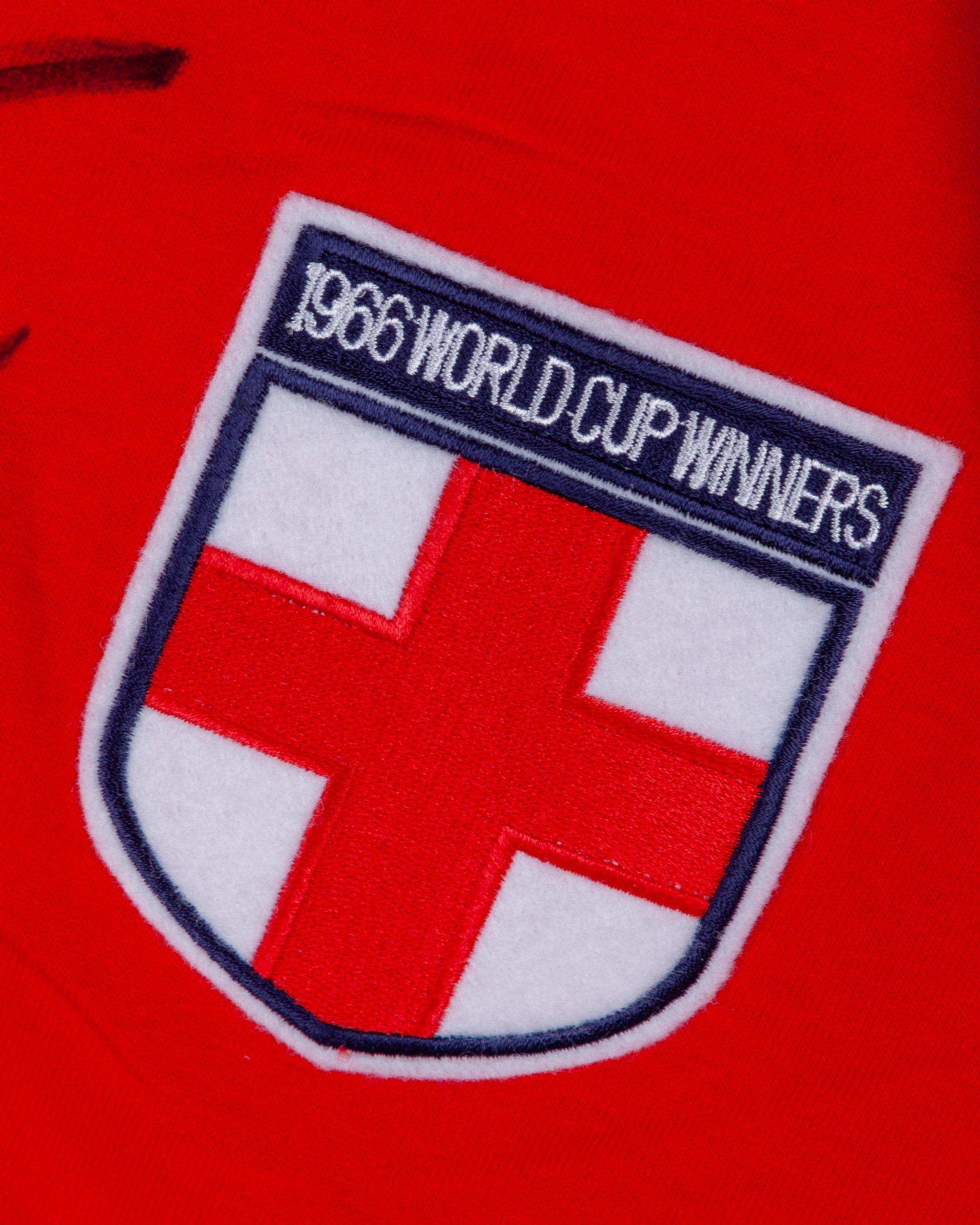 A red Geoff Hurst autographed replica 1966 World Cup Winners long-sleeved shirt, with COA, unwashed